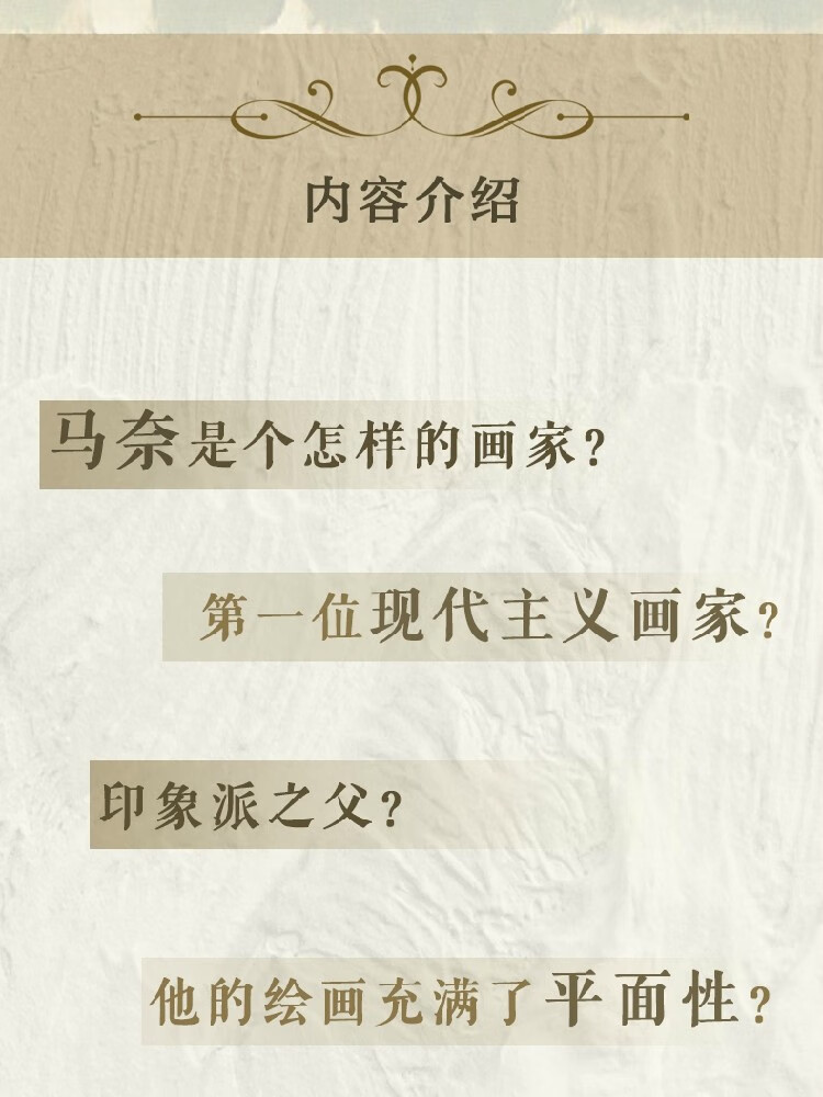 书中配有精美的彩图百余幅,不仅有助于读者理解文中内容,也可以帮助读者愉快地欣赏马奈的作品,犹如置身于美术馆之中。