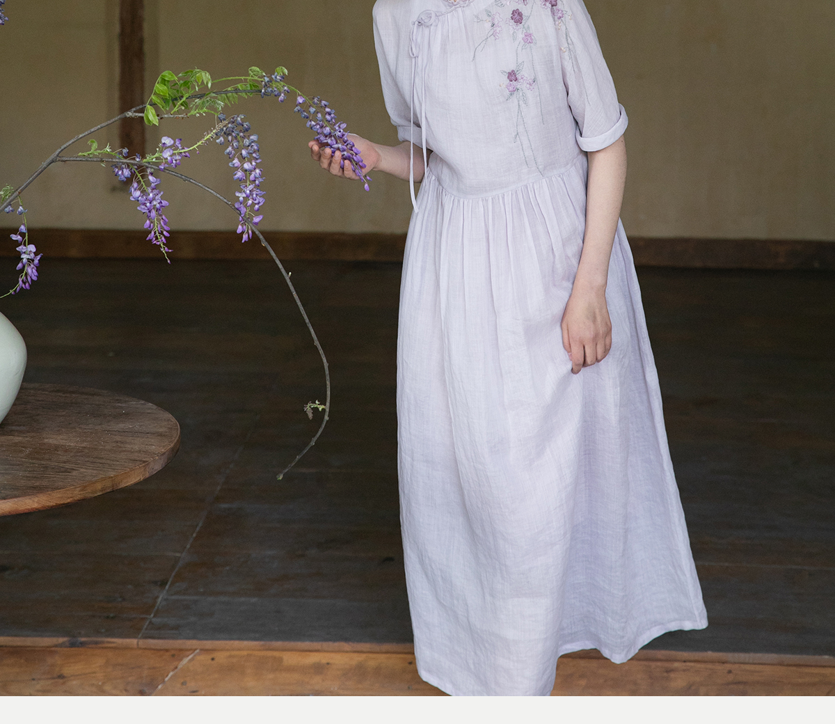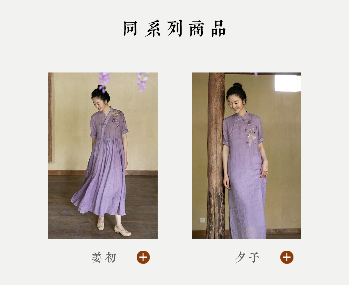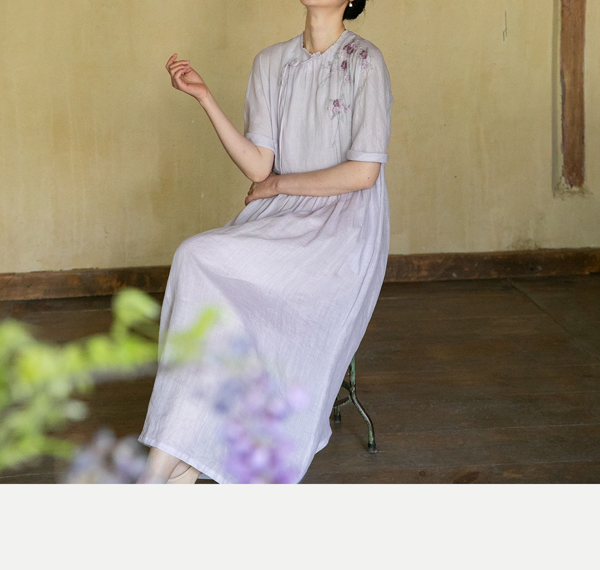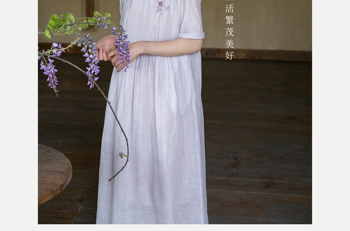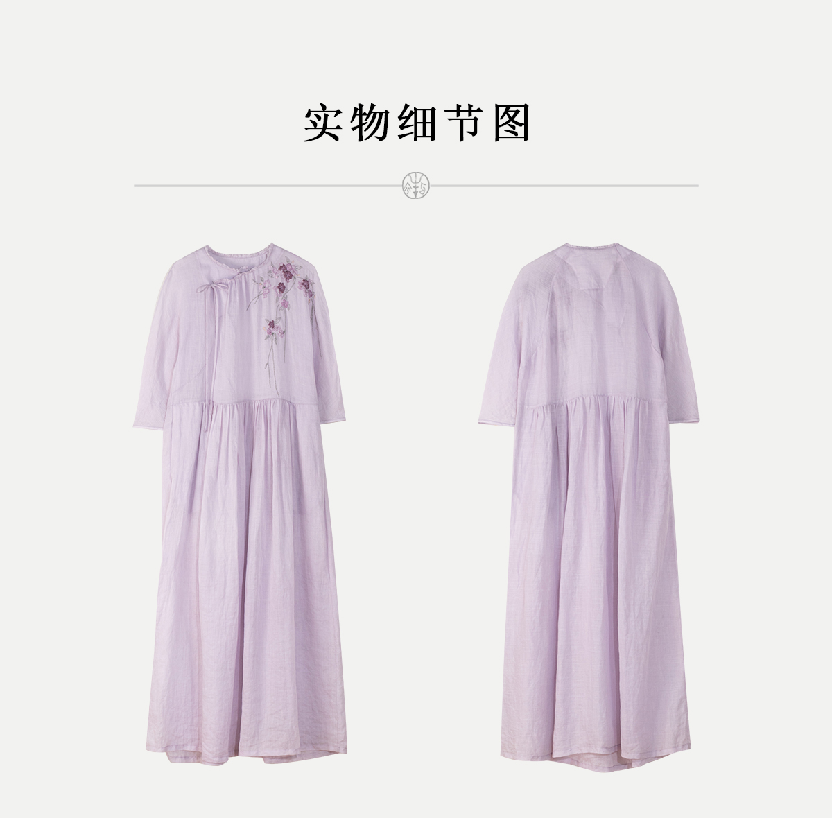牧衣游原创手工刺绣苎麻连衣裙女新款轻薄紫色新中式长裙 江风梦