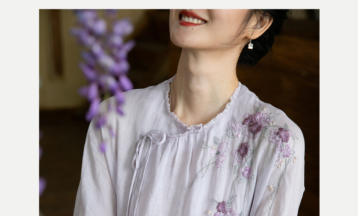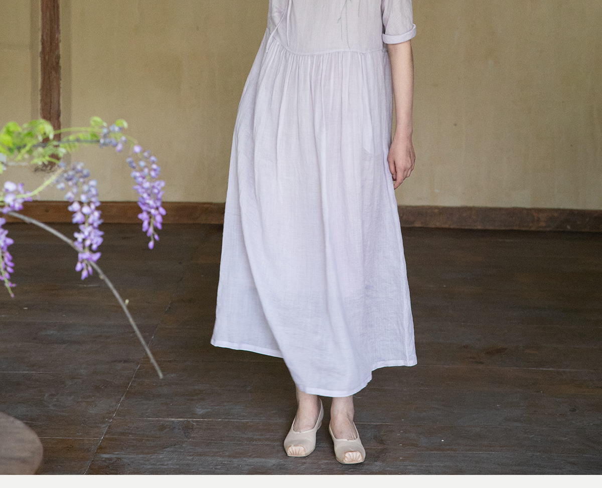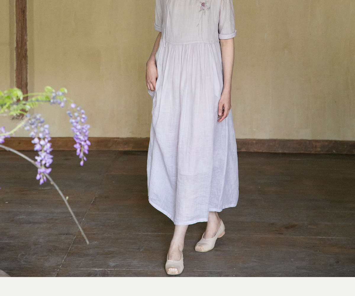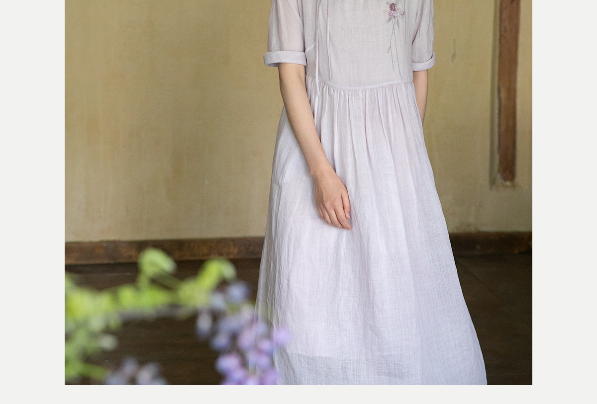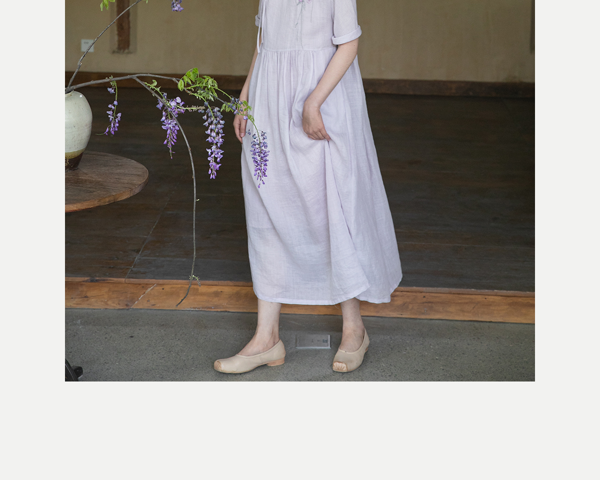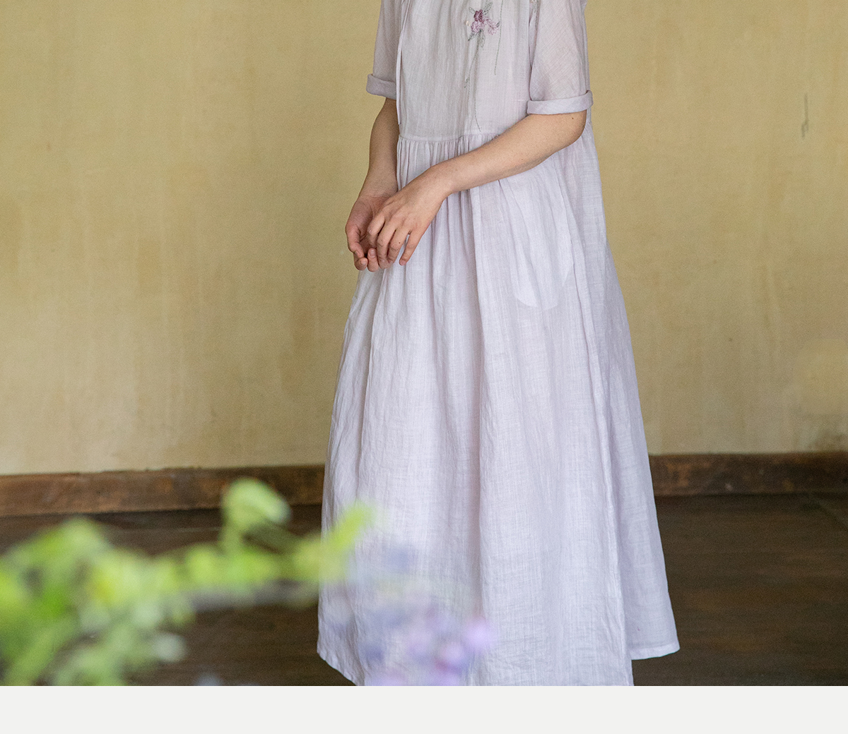 牧衣游原创手工刺绣苎麻连衣裙女新款轻薄紫色新中式长裙 江风梦