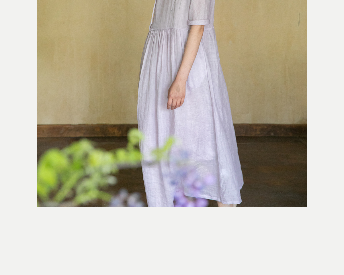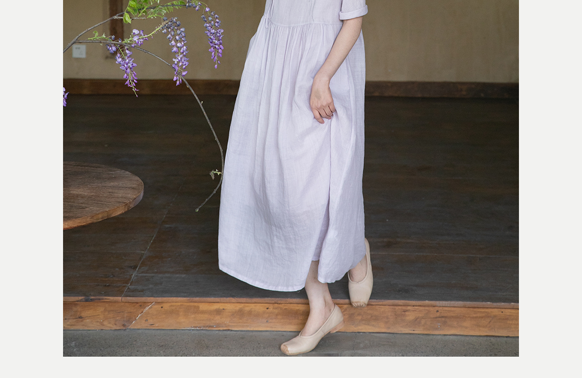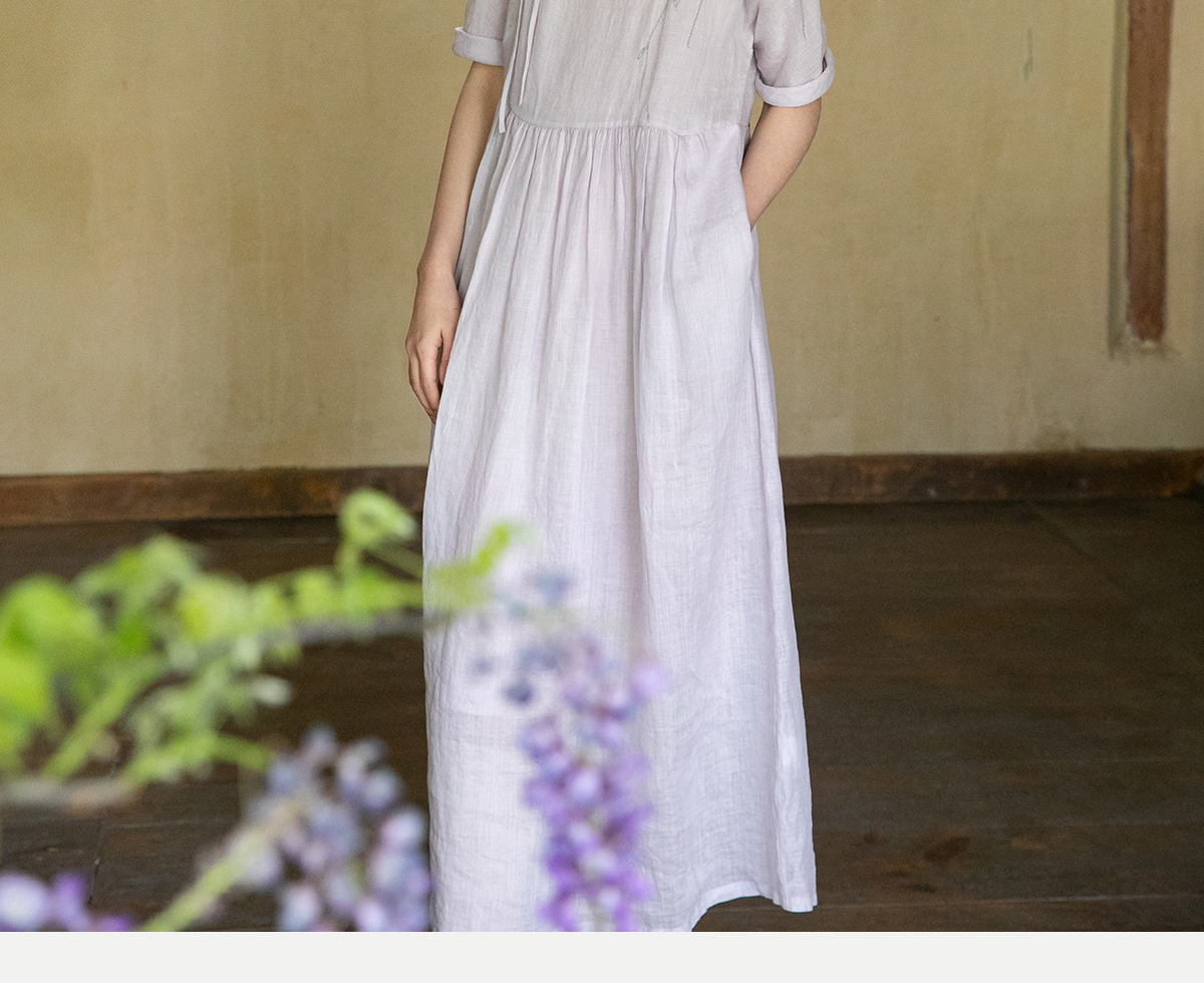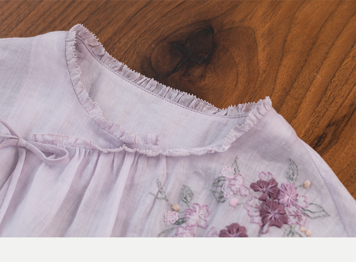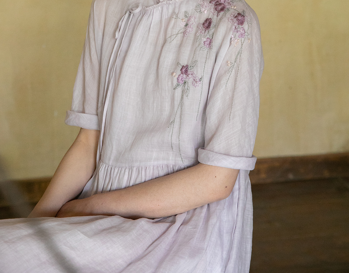 牧衣游原创手工刺绣苎麻连衣裙女新款轻薄紫色新中式长裙 江风梦