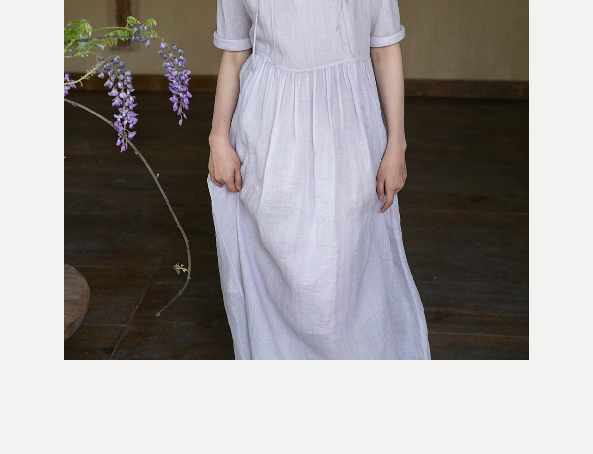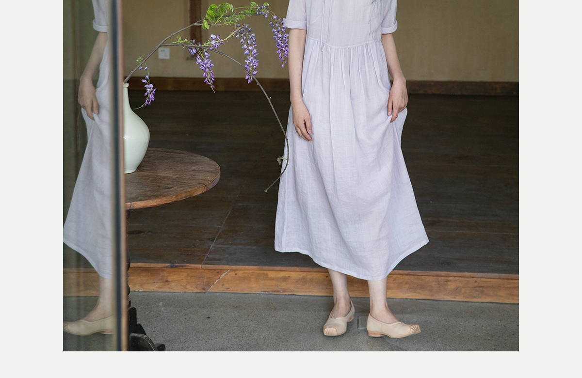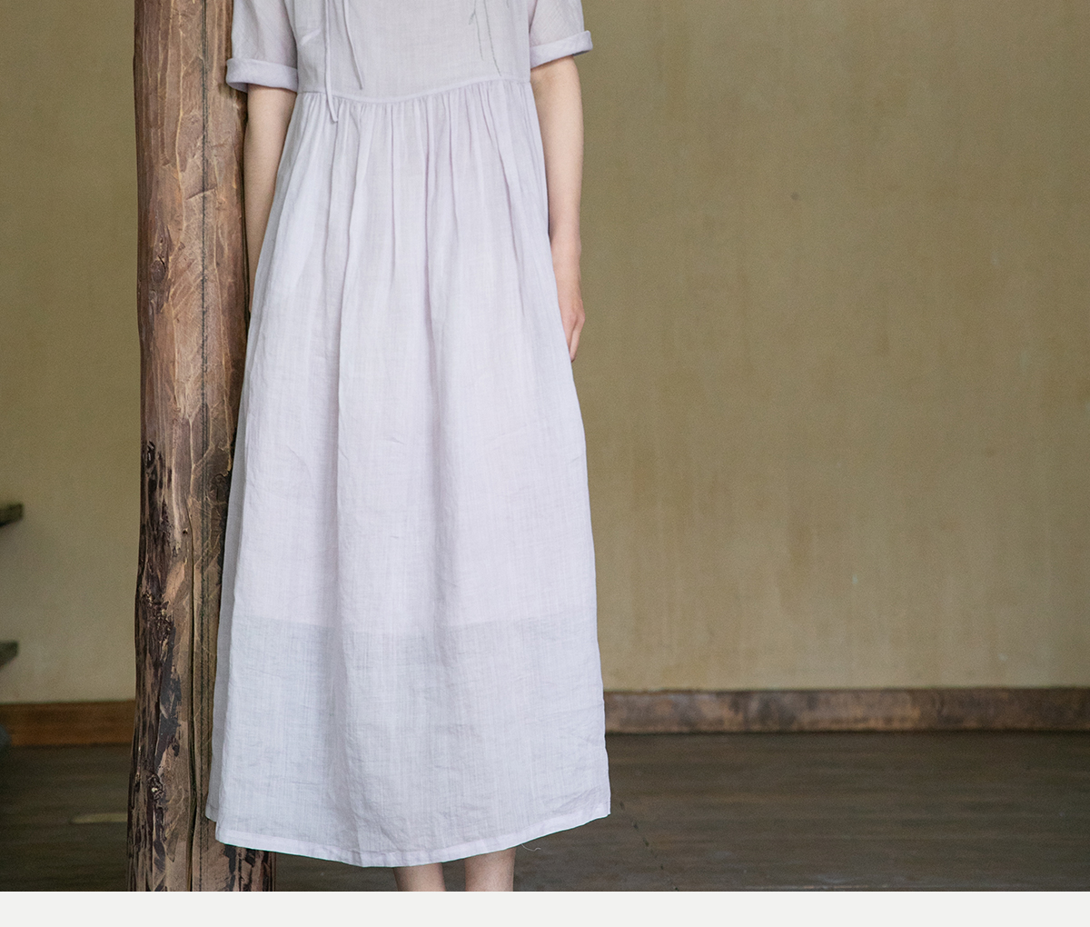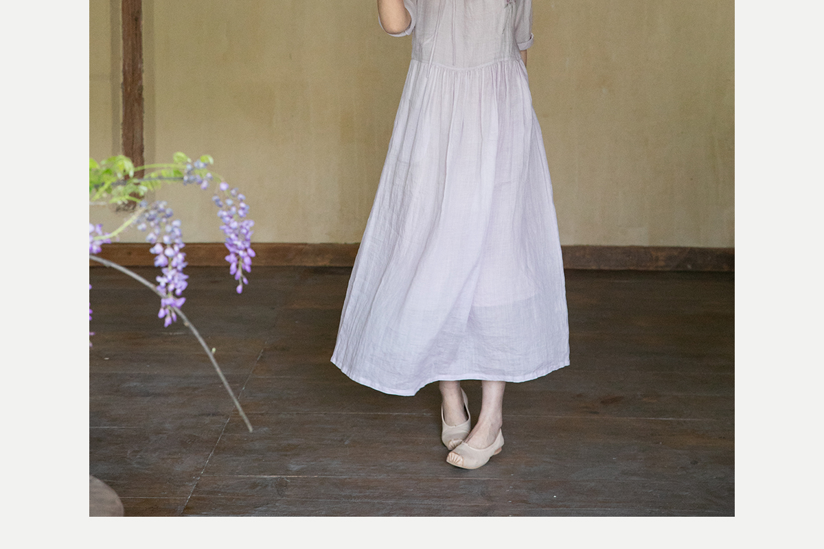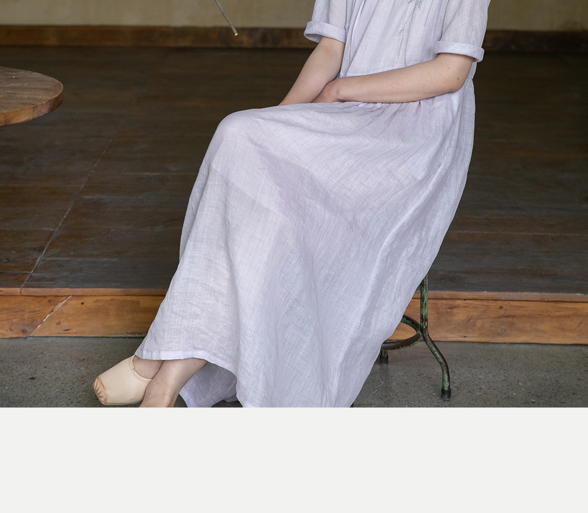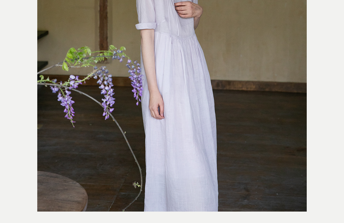 牧衣游原创手工刺绣苎麻连衣裙女新款轻薄紫色新中式长裙 江风梦