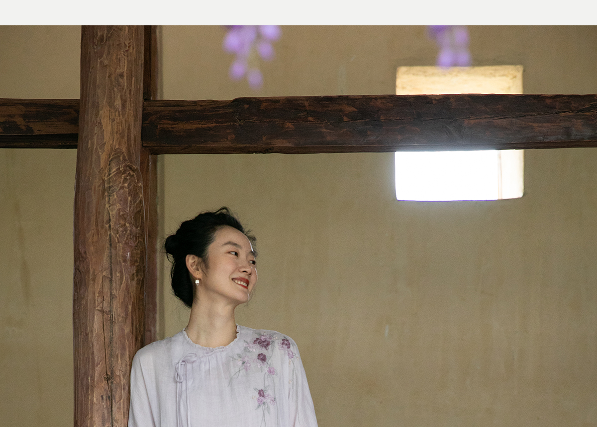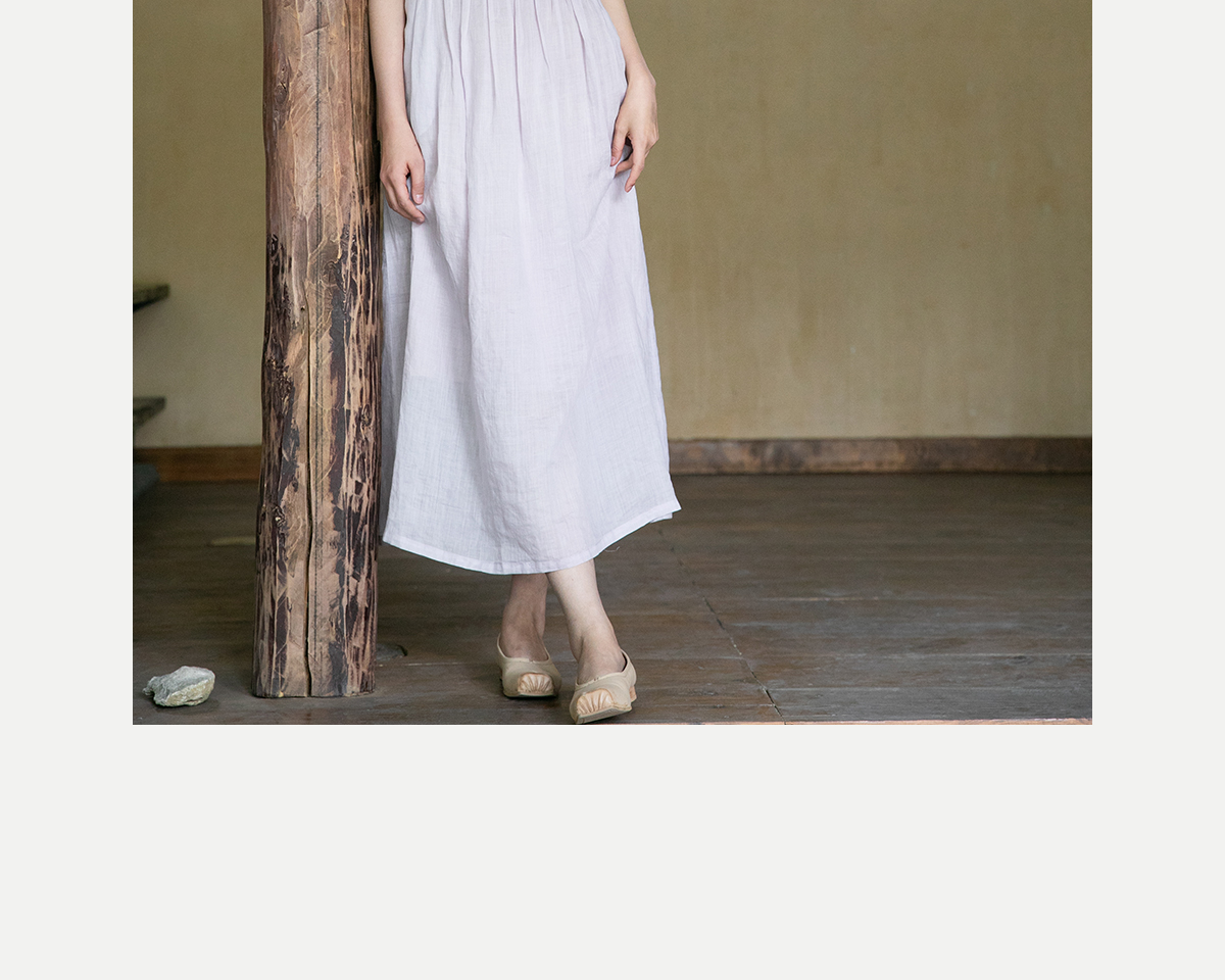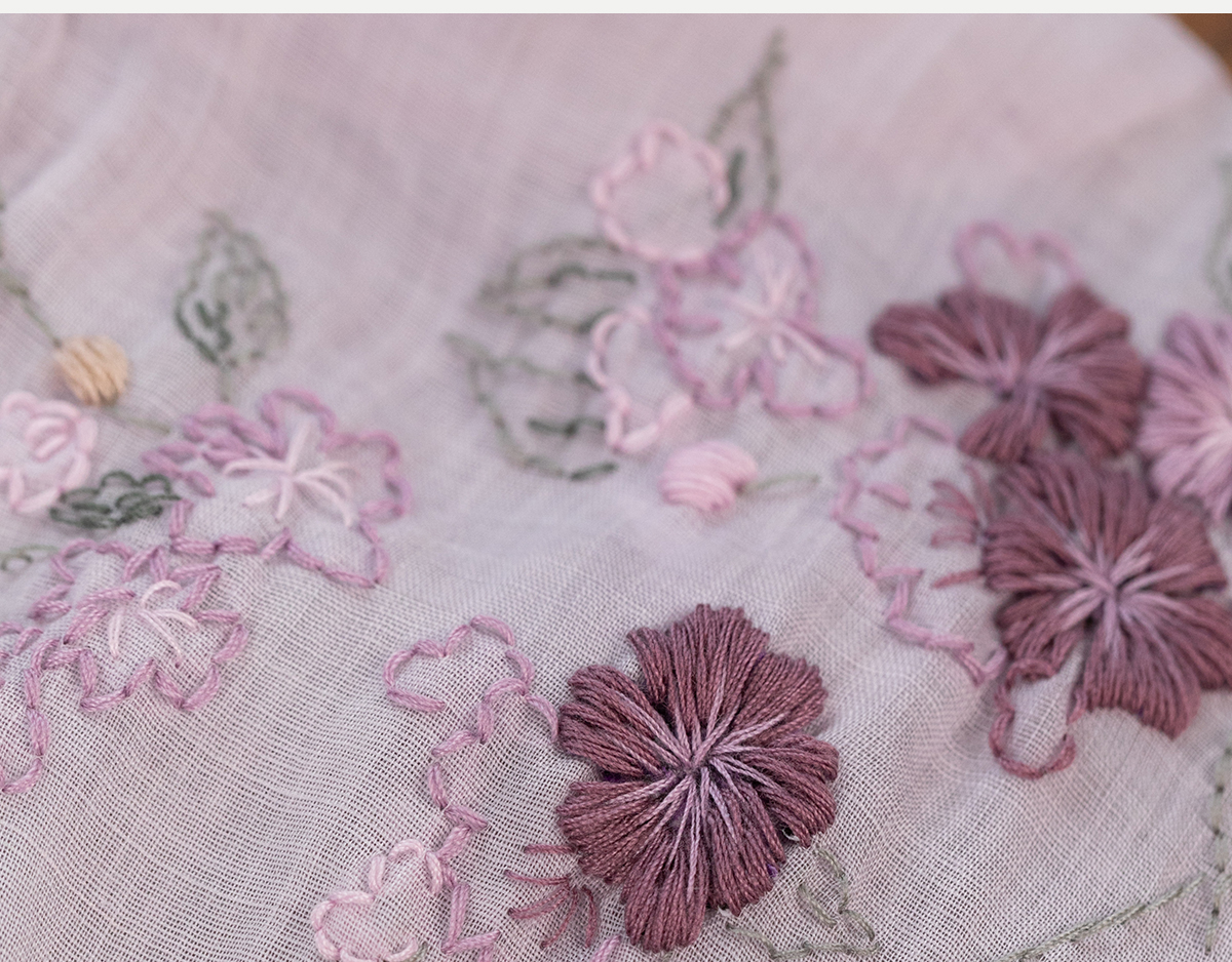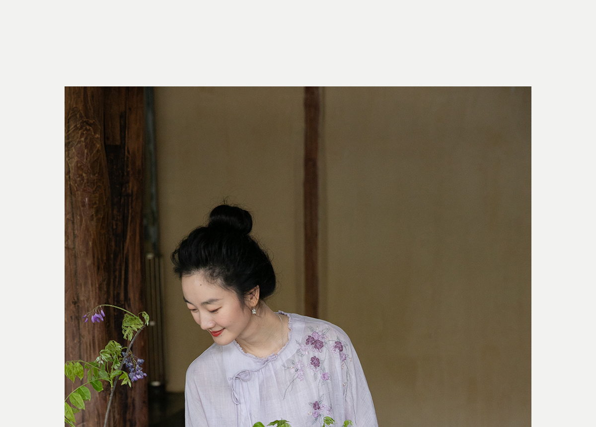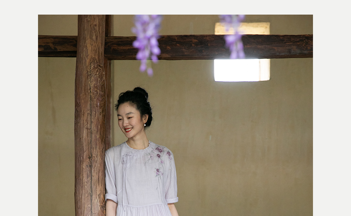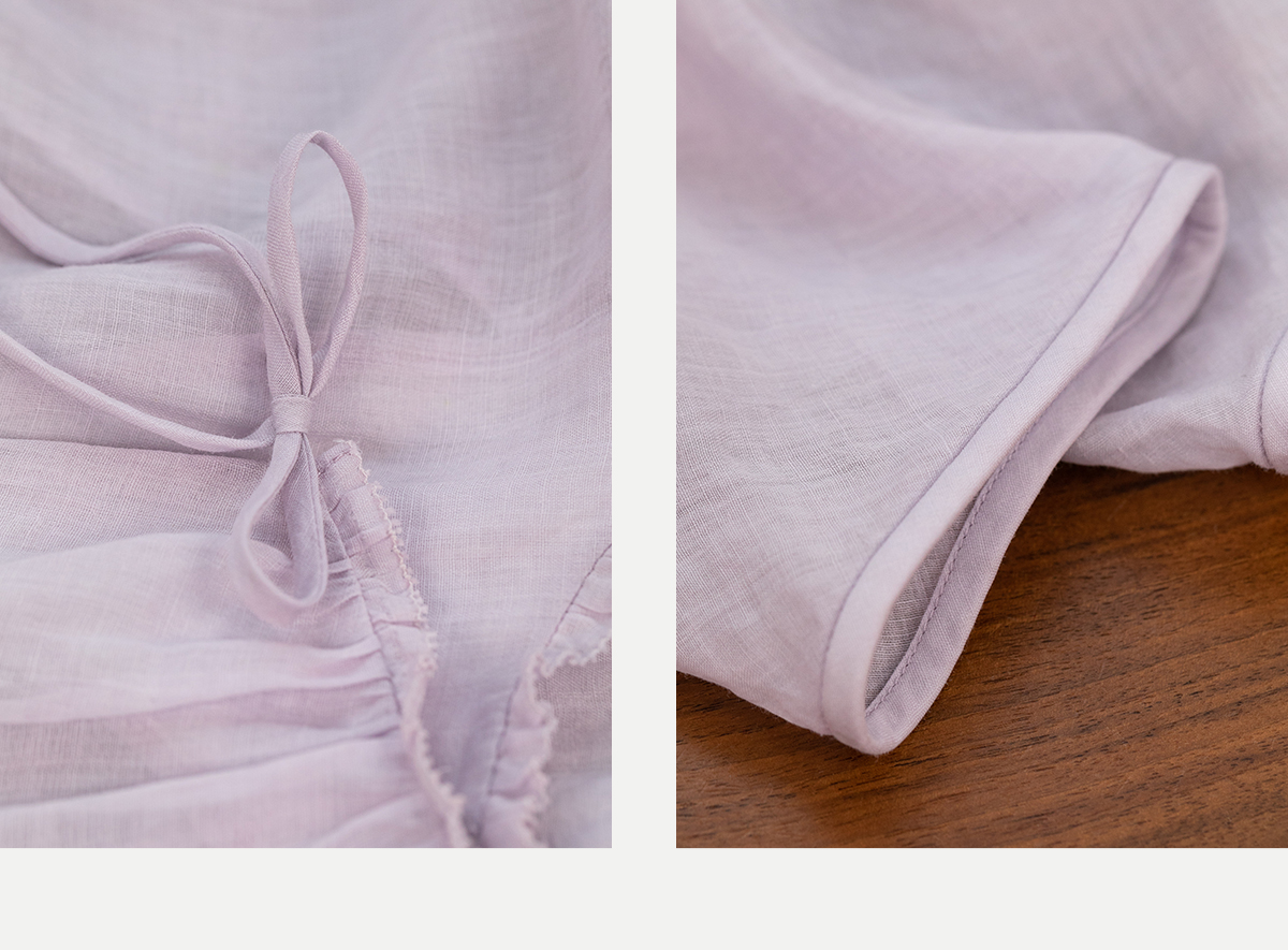 牧衣游原创手工刺绣苎麻连衣裙女新款轻薄紫色新中式长裙 江风梦