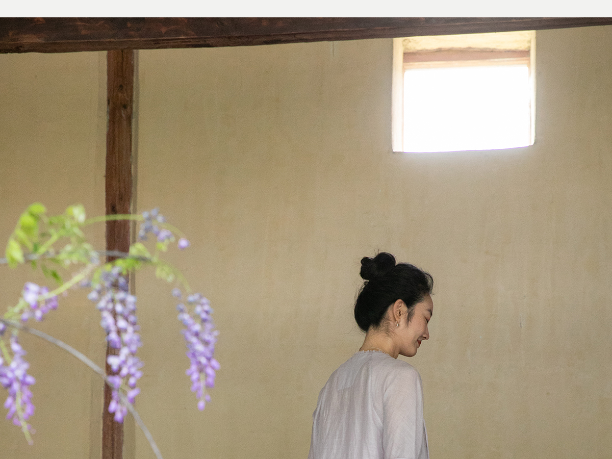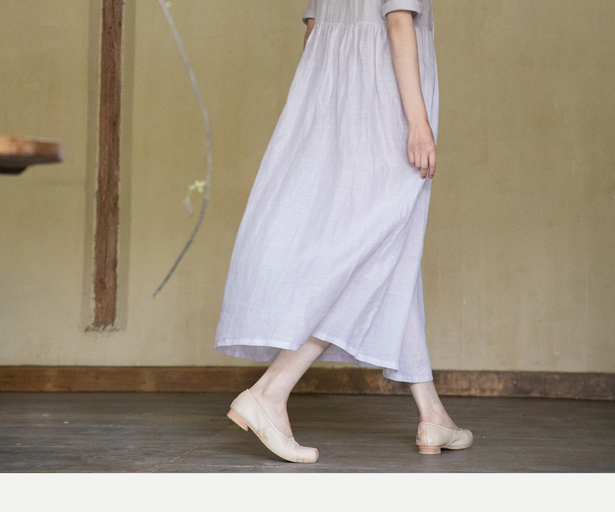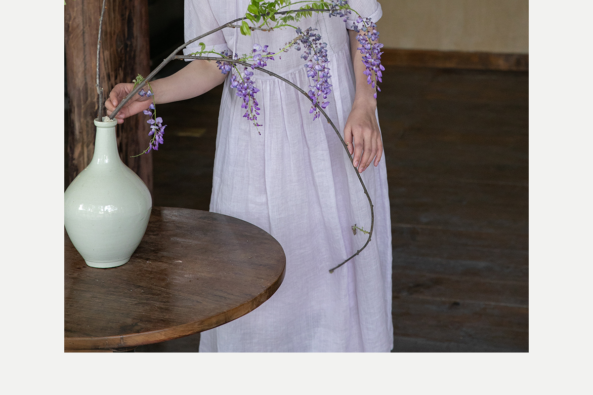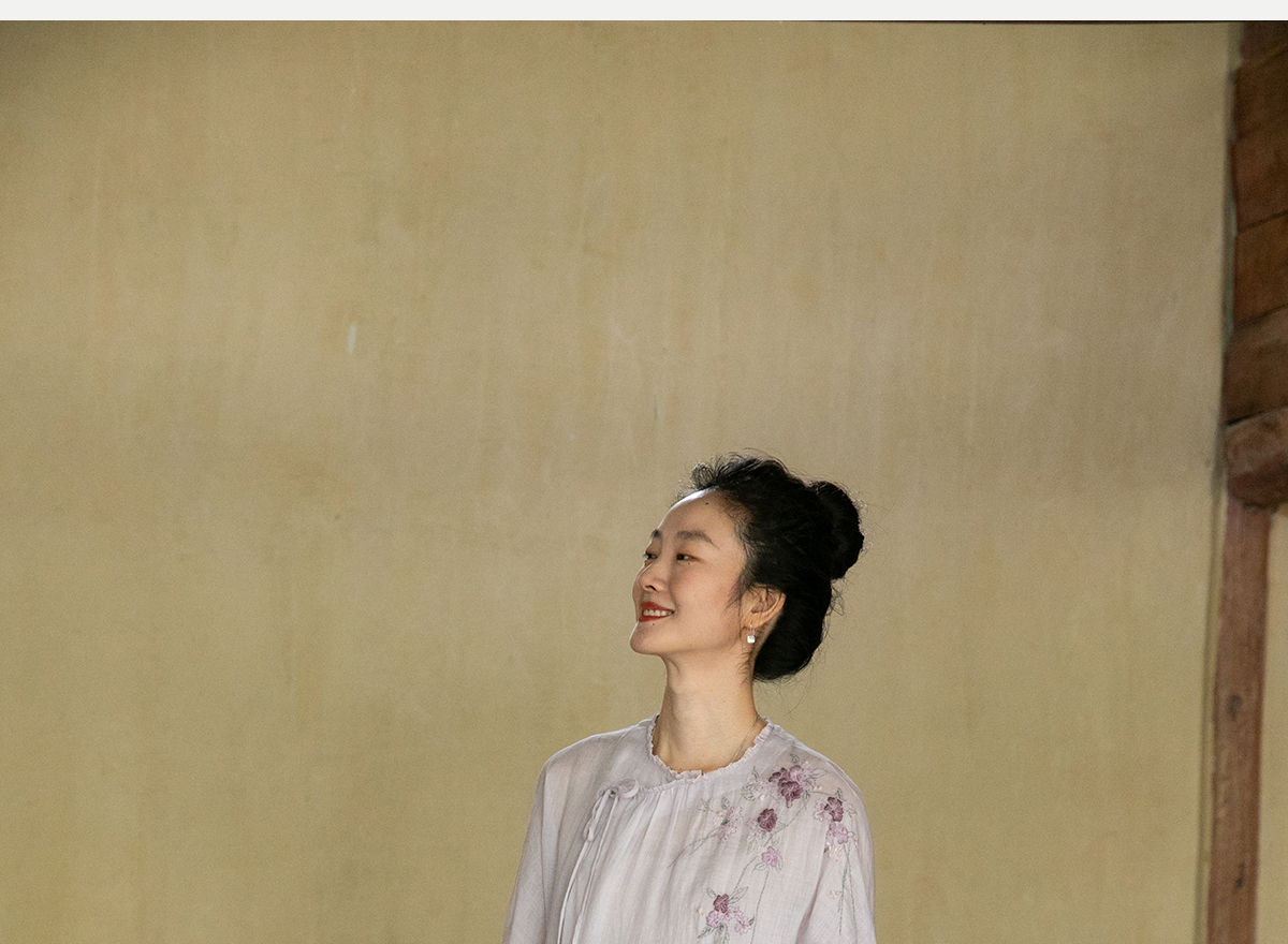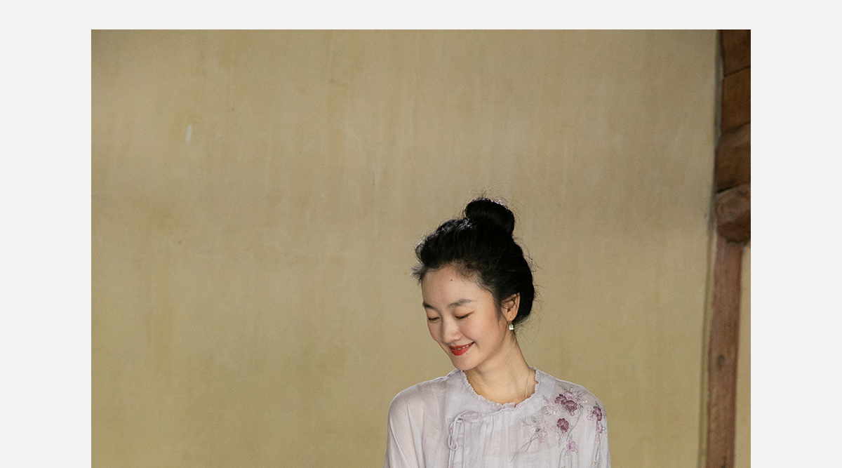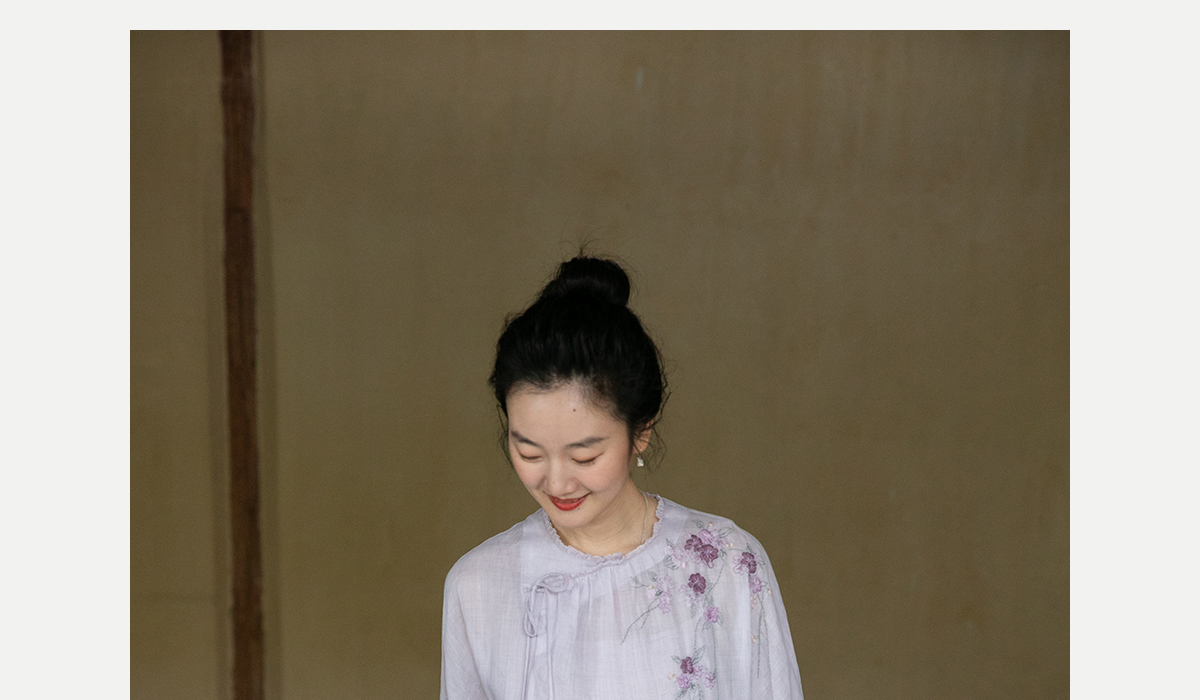 牧衣游原创手工刺绣苎麻连衣裙女新款轻薄紫色新中式长裙 江风梦