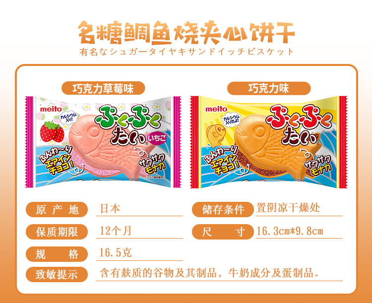 名糖 巧克力味/草莓味 鲷鱼烧威化奶油夹心鱼形烧糕点