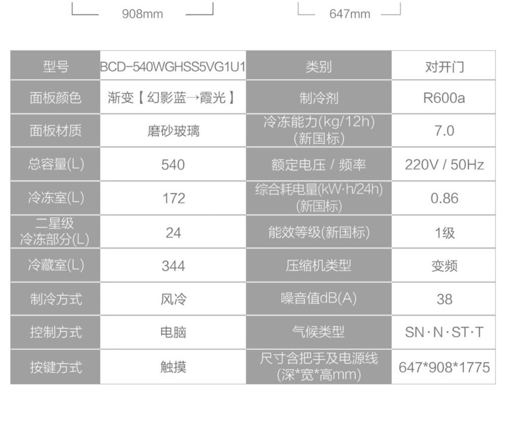 海尔对开门冰箱BCD-540WGHSS5VG1U1