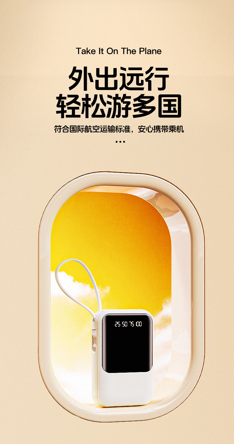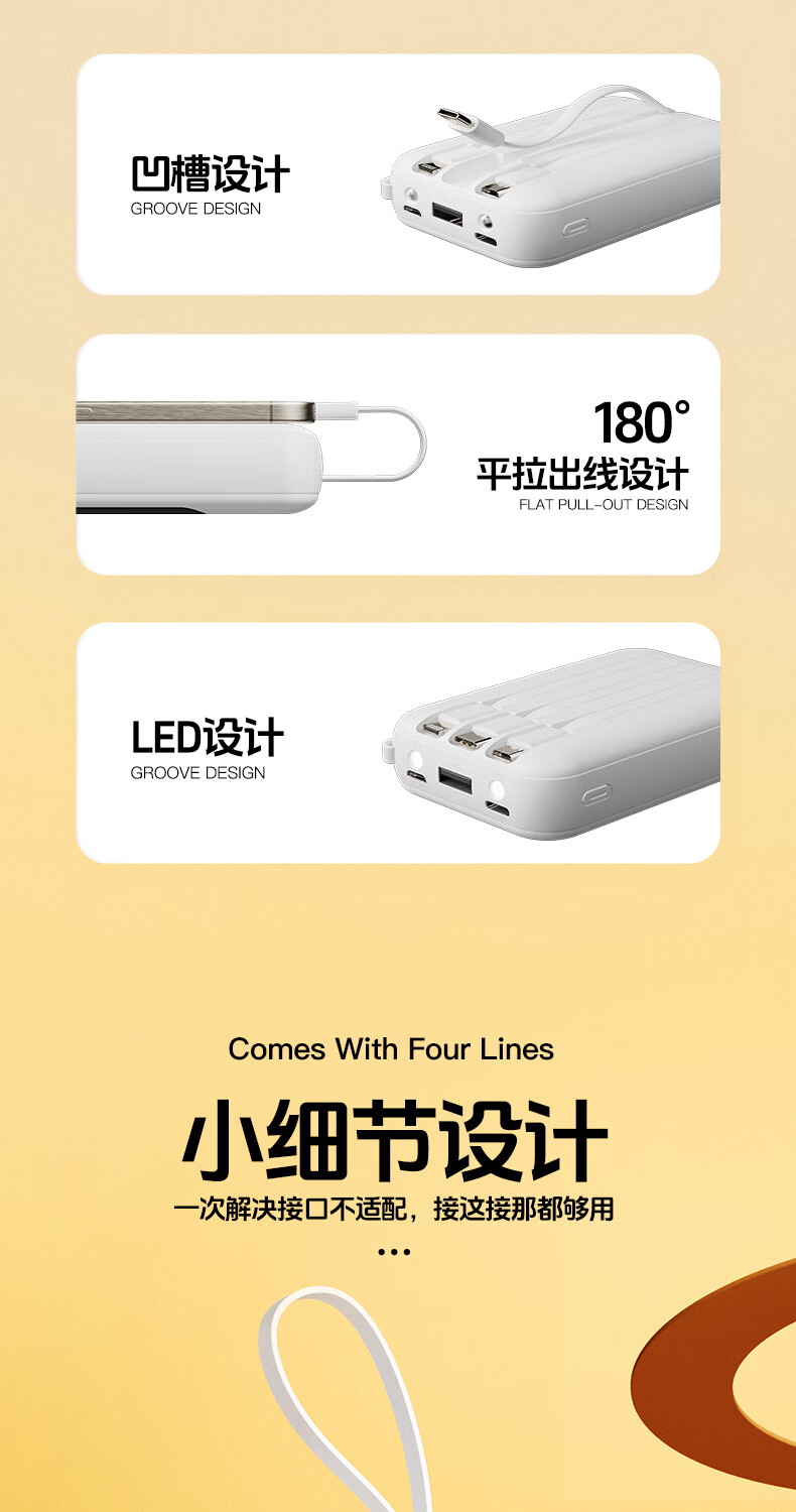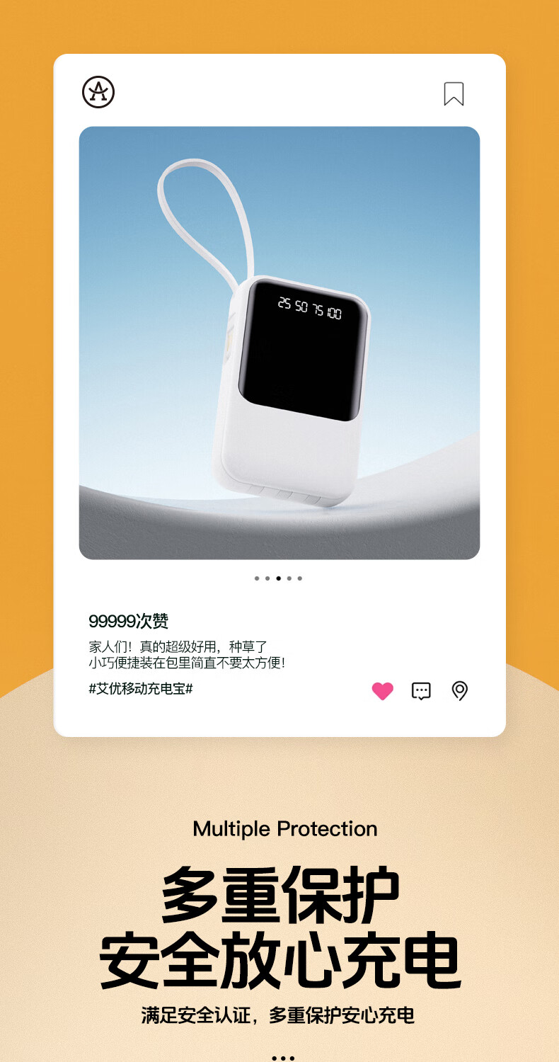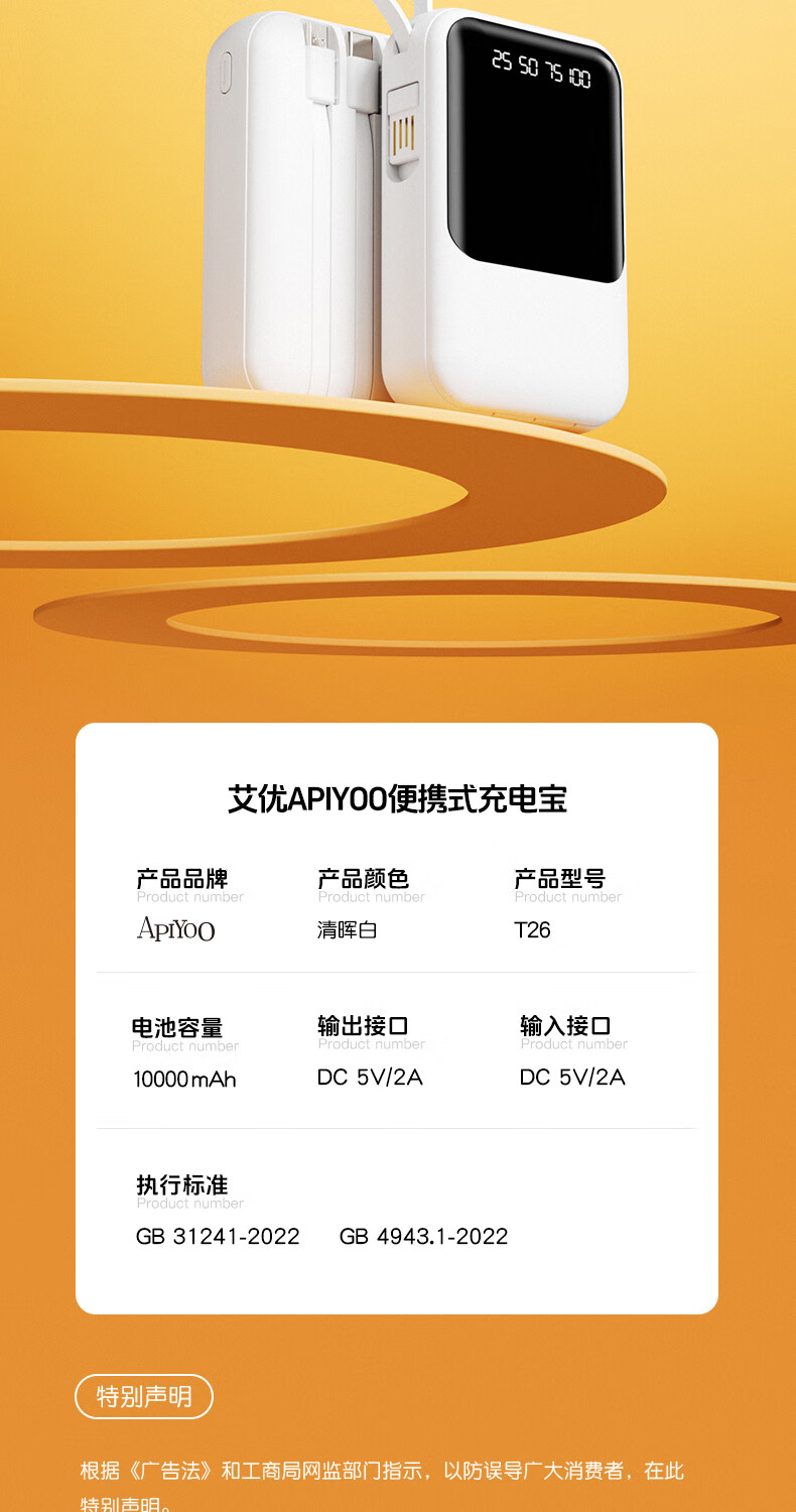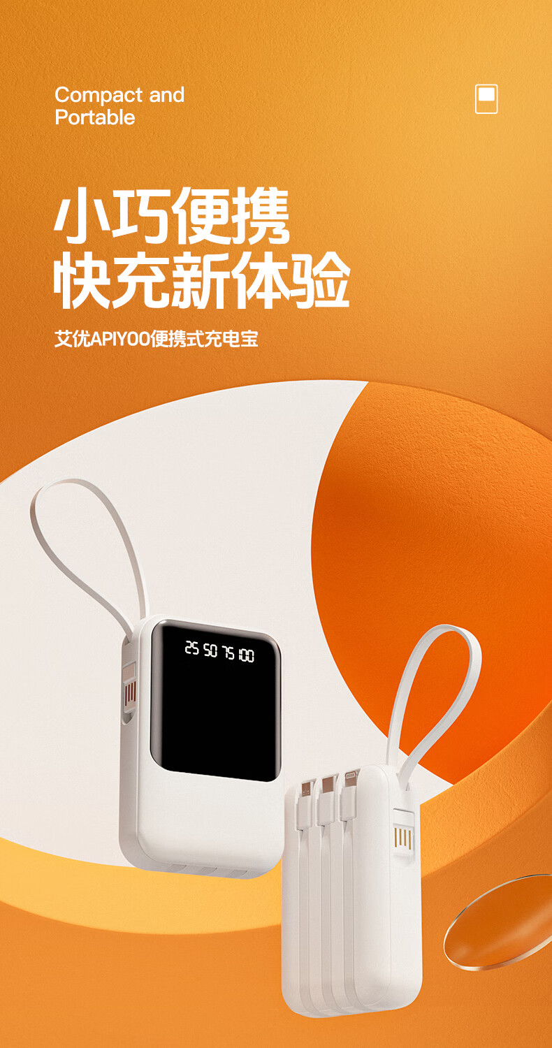 艾优便携式充电宝 T26 轻便小巧 自带四线