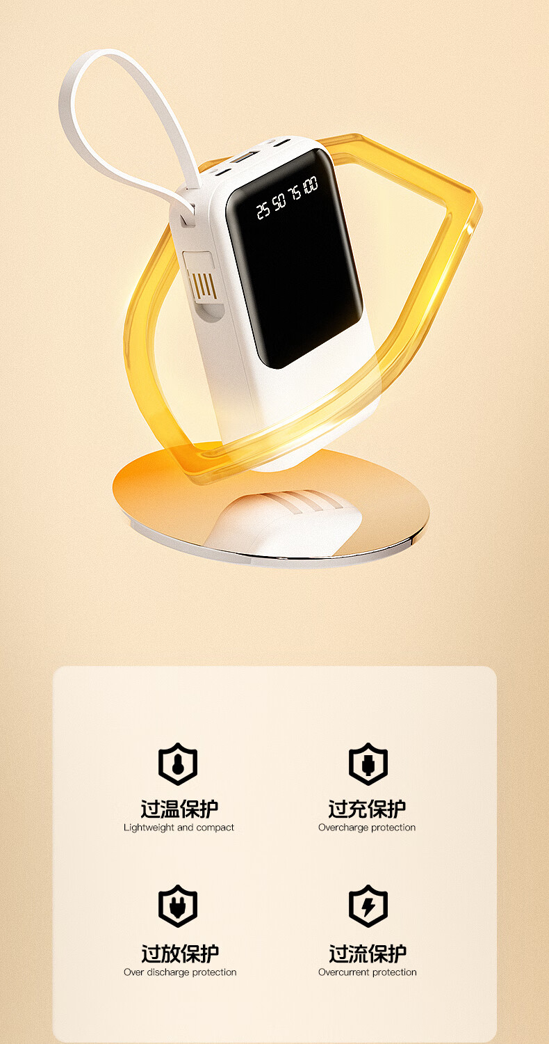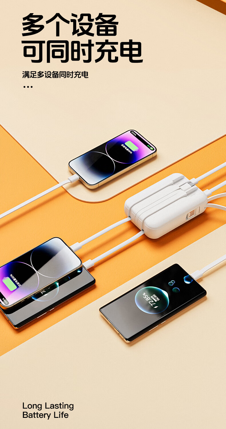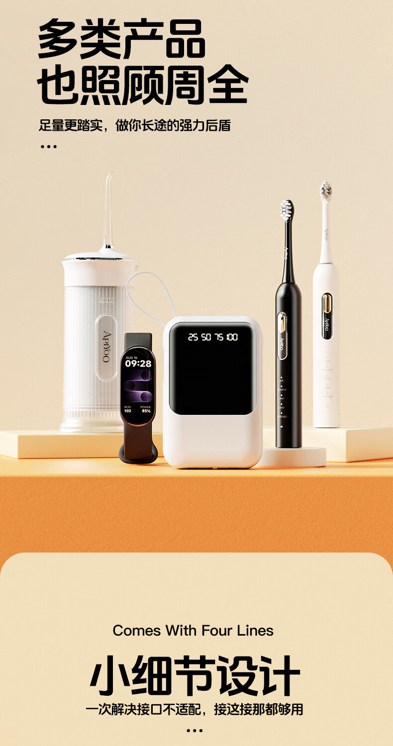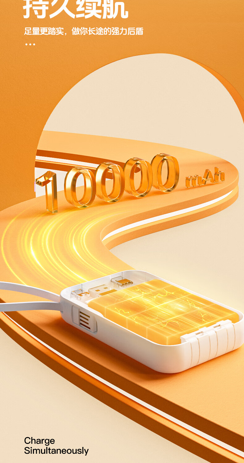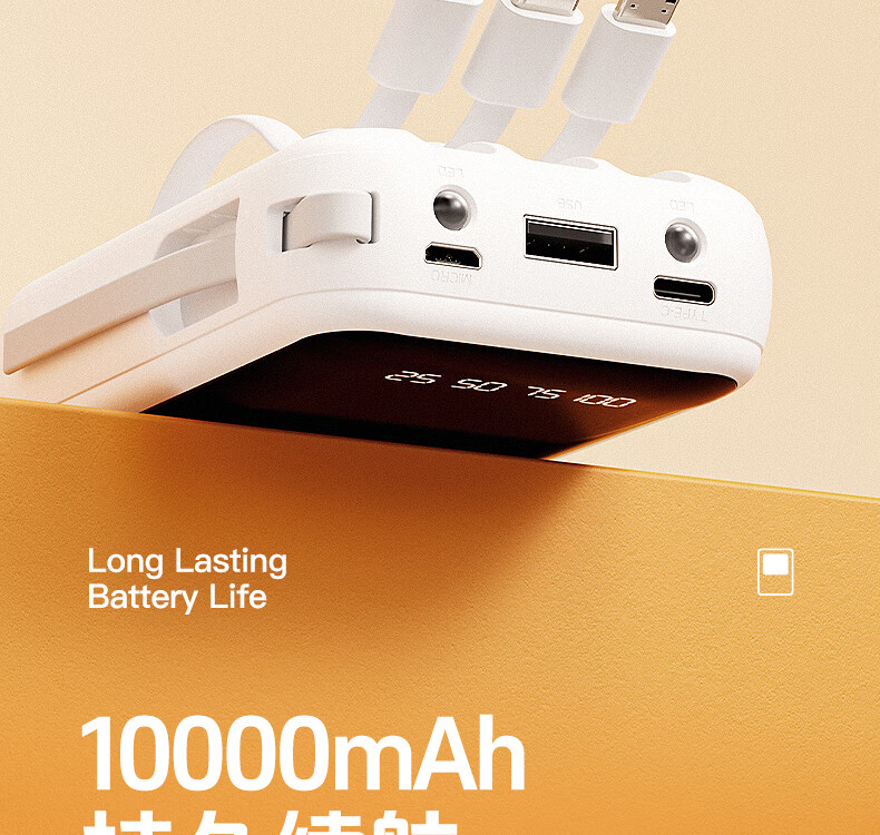 艾优便携式充电宝 T26 轻便小巧 自带四线