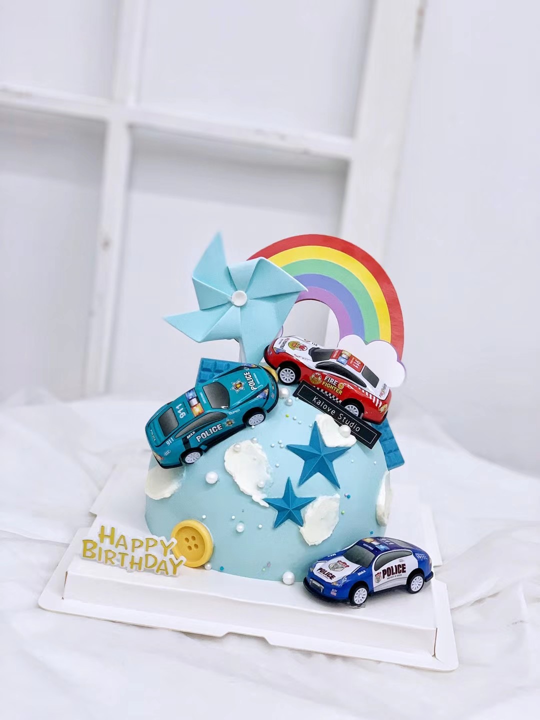 男孩最爱小汽车蓝色周岁蛋糕(汽车随机)