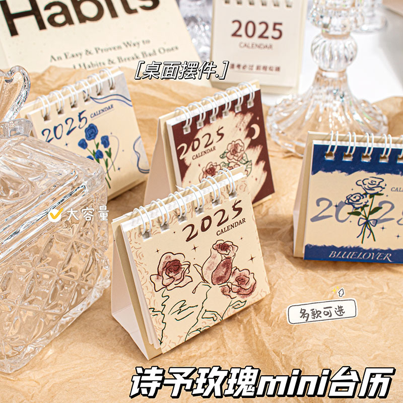 「9.9到手4本!数套可选」2025年创意卡通桌面ins迷你小台历小清新学生便携记事日历本摆件