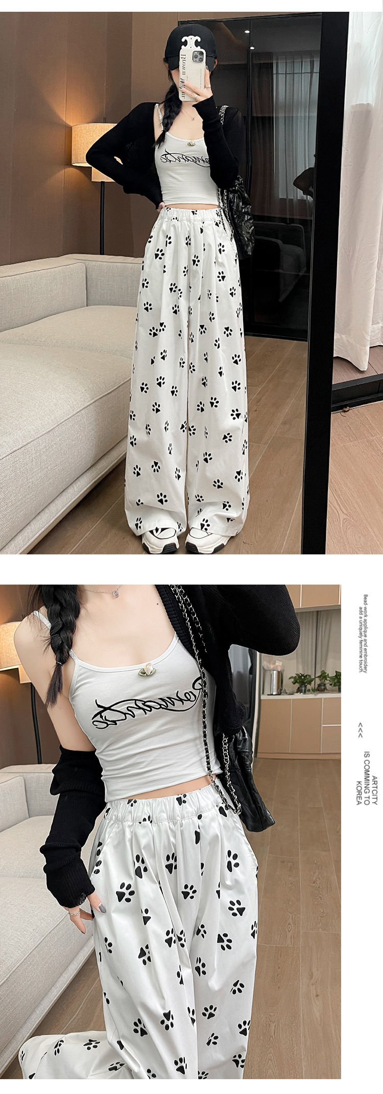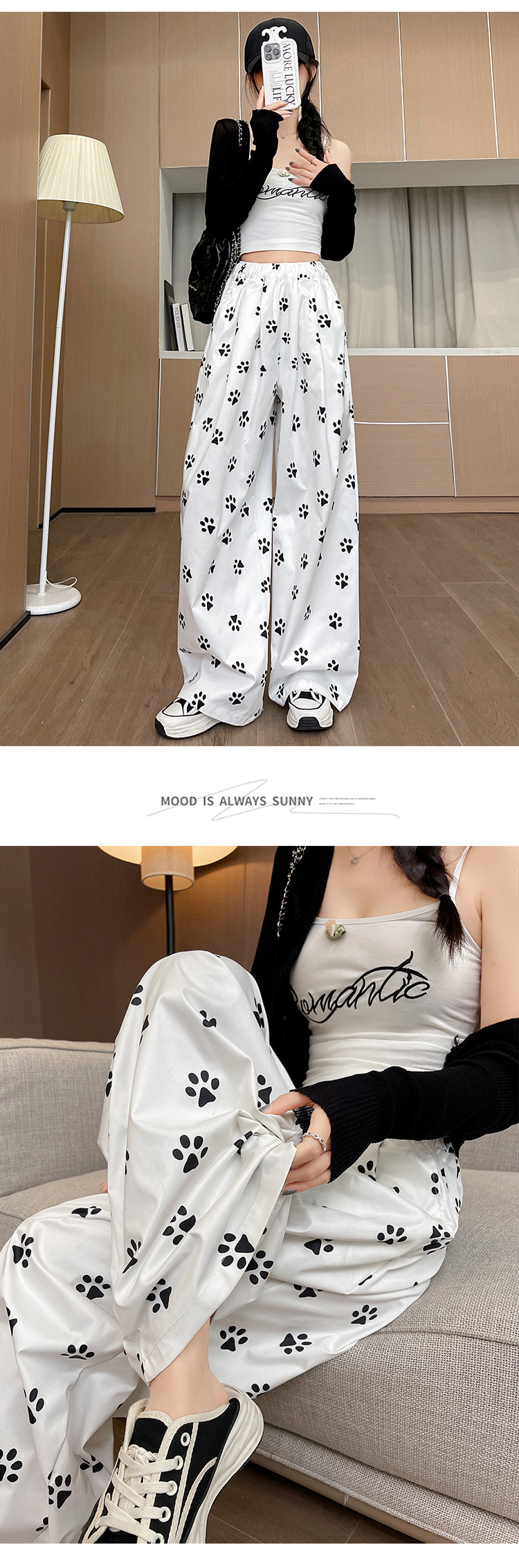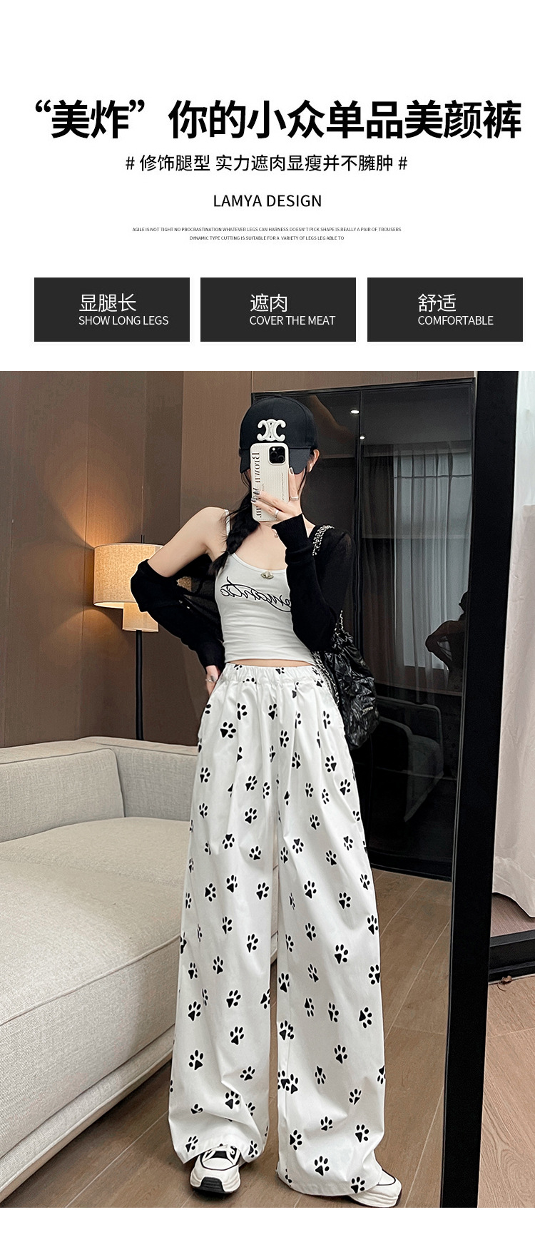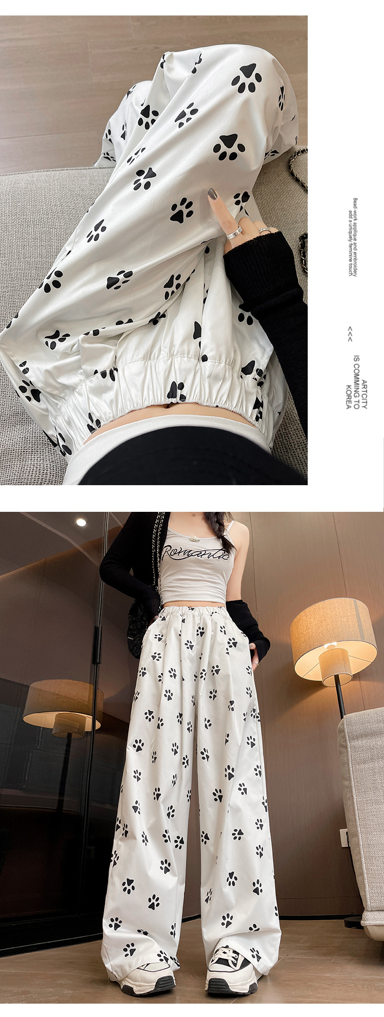 【新品】春日清新,宽松百搭;高腰设计,显瘦有型;可爱印花,个性靓丽。狗脚印山本裤,你的舒适之选!