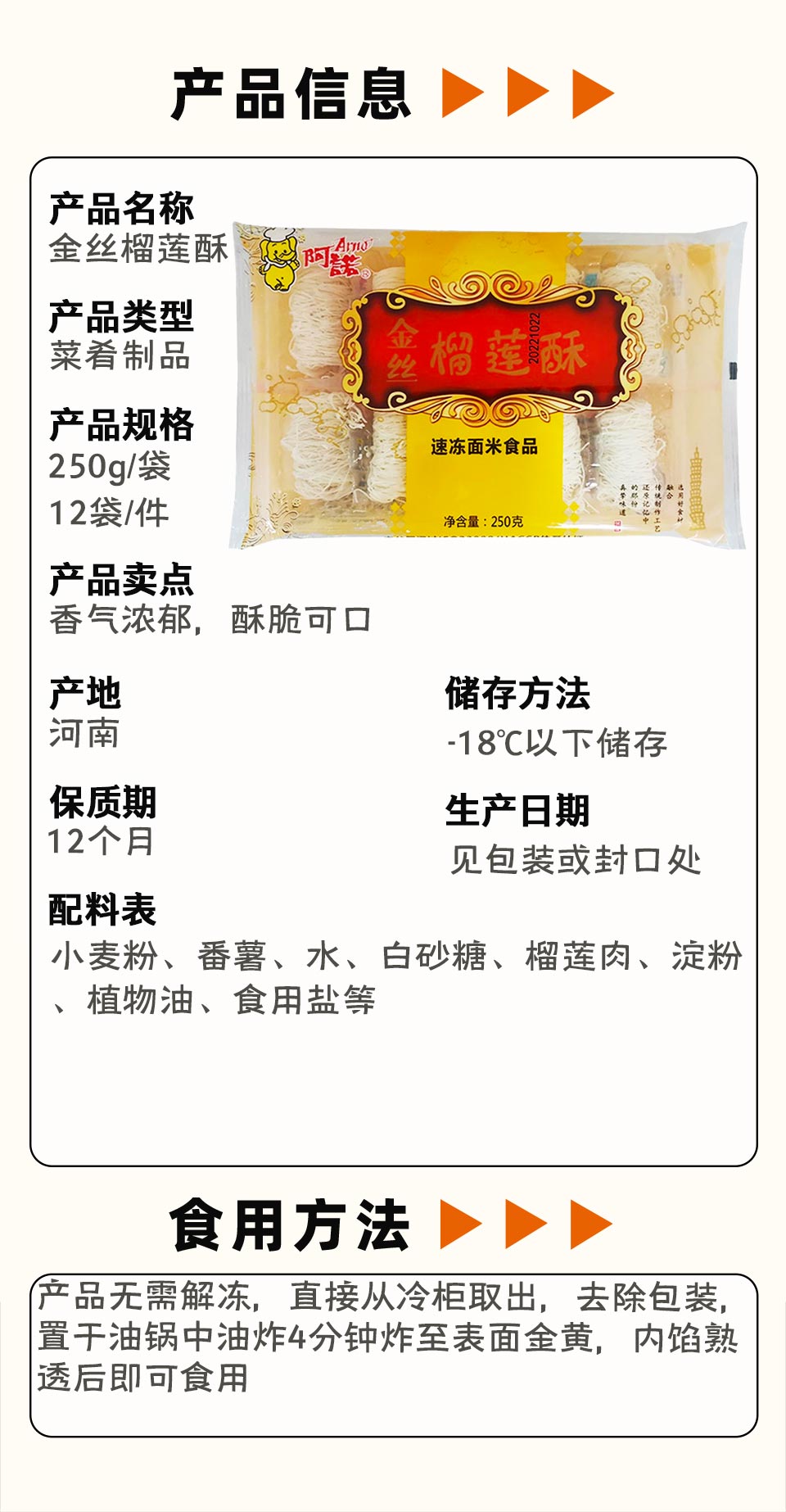25B阿诺金丝榴莲酥 250g/袋(10个)12袋/件