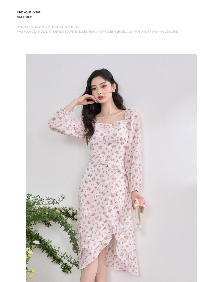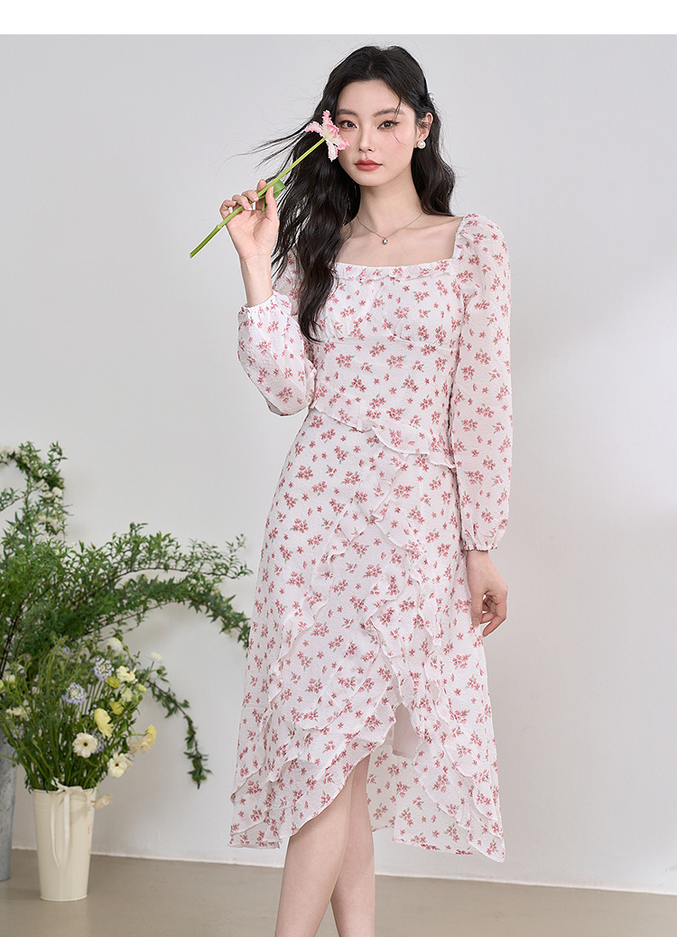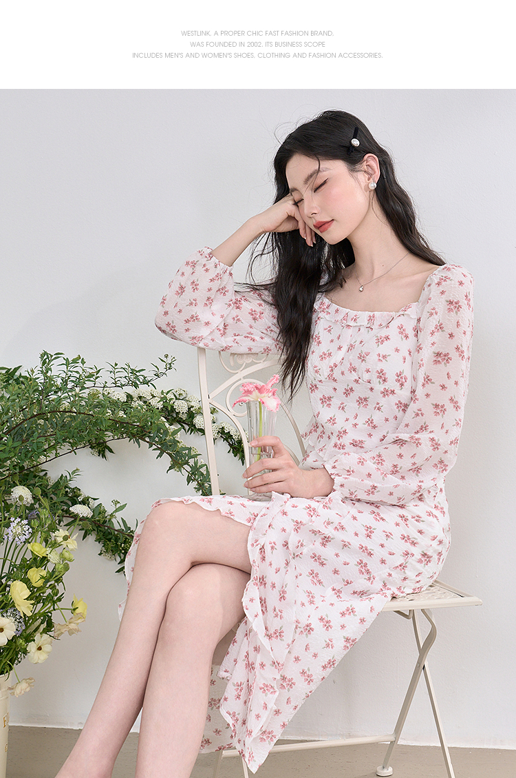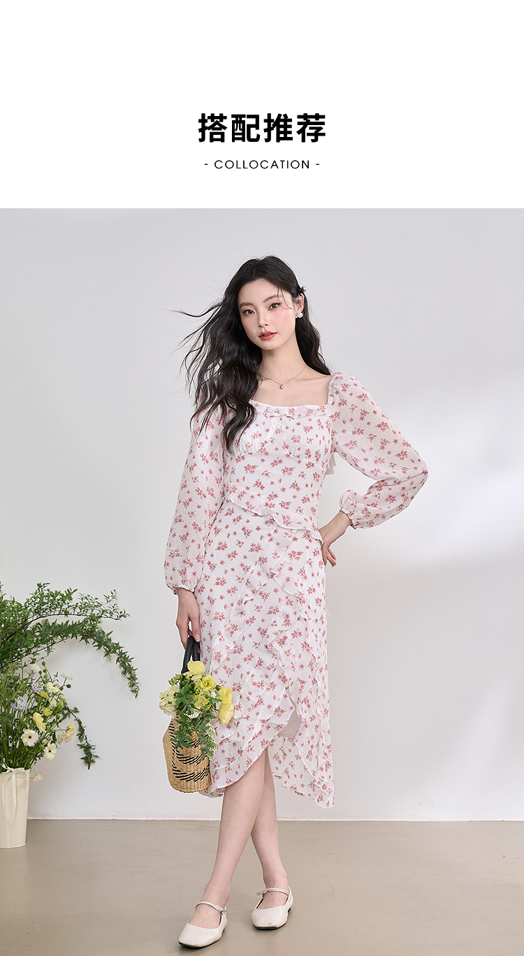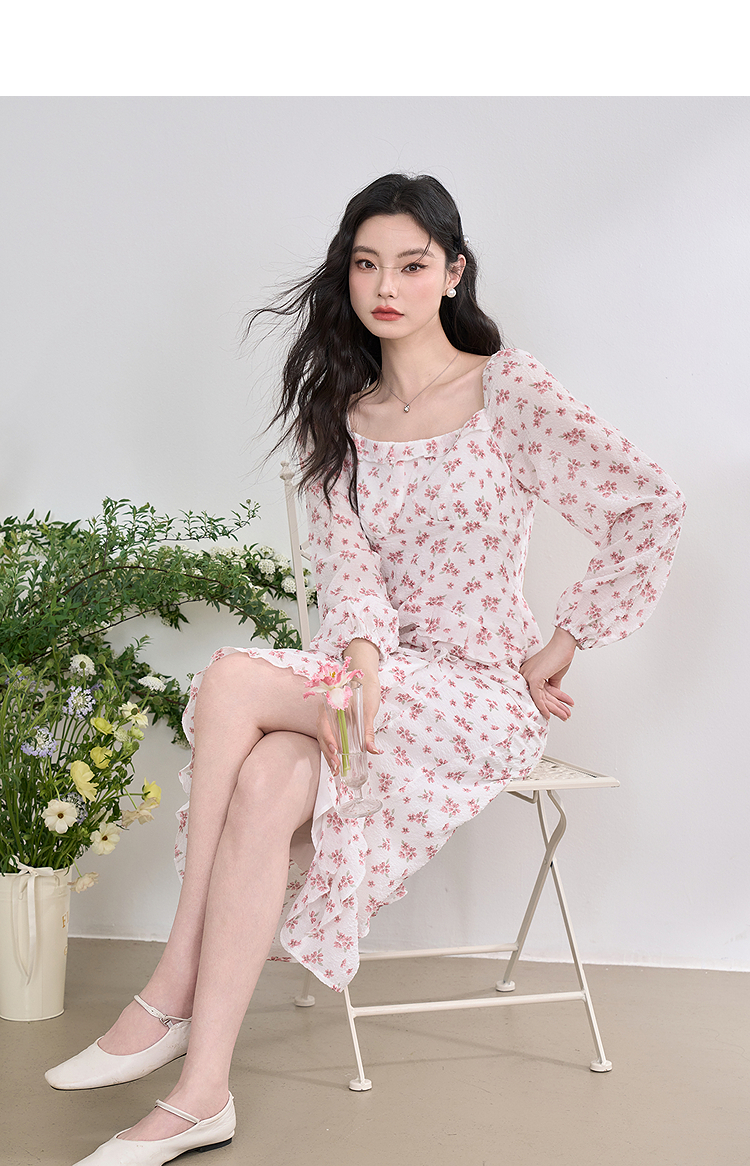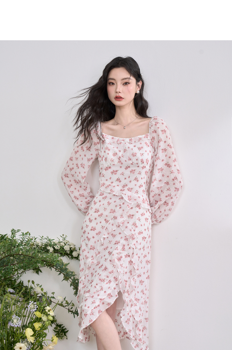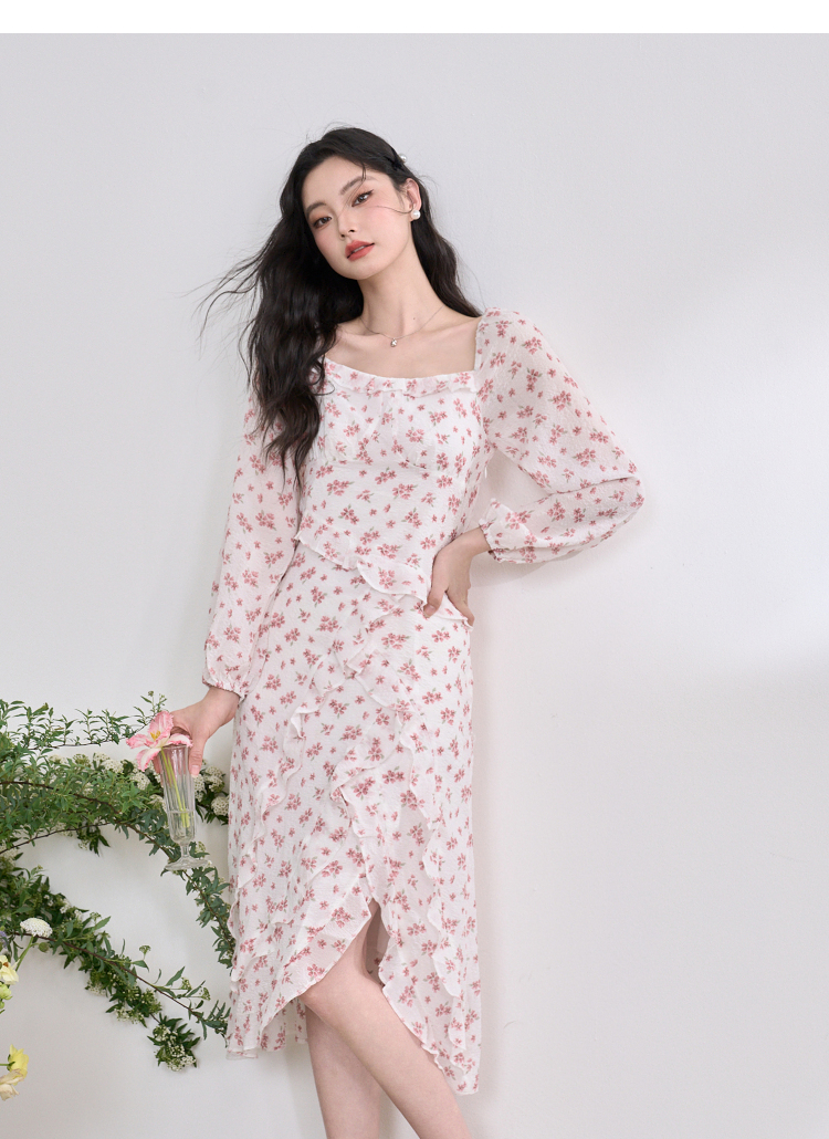 纯欲温柔法式连衣裙女2023春新款开叉荷叶边初恋裙子女春装V0630239