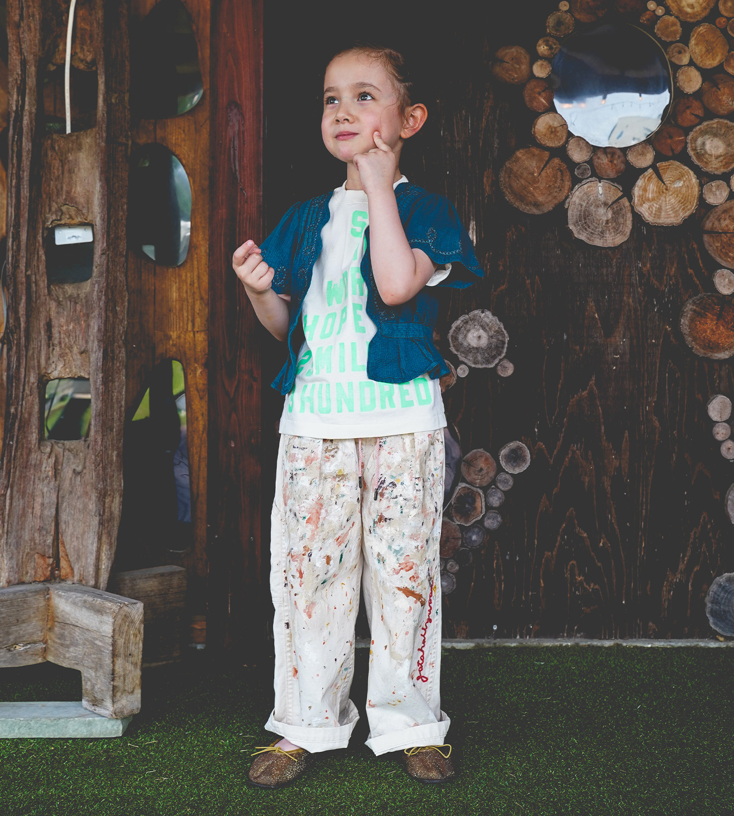 G2H日本童装 GO TO HOLLYWOOD 26春夏复古泼墨工装长裤