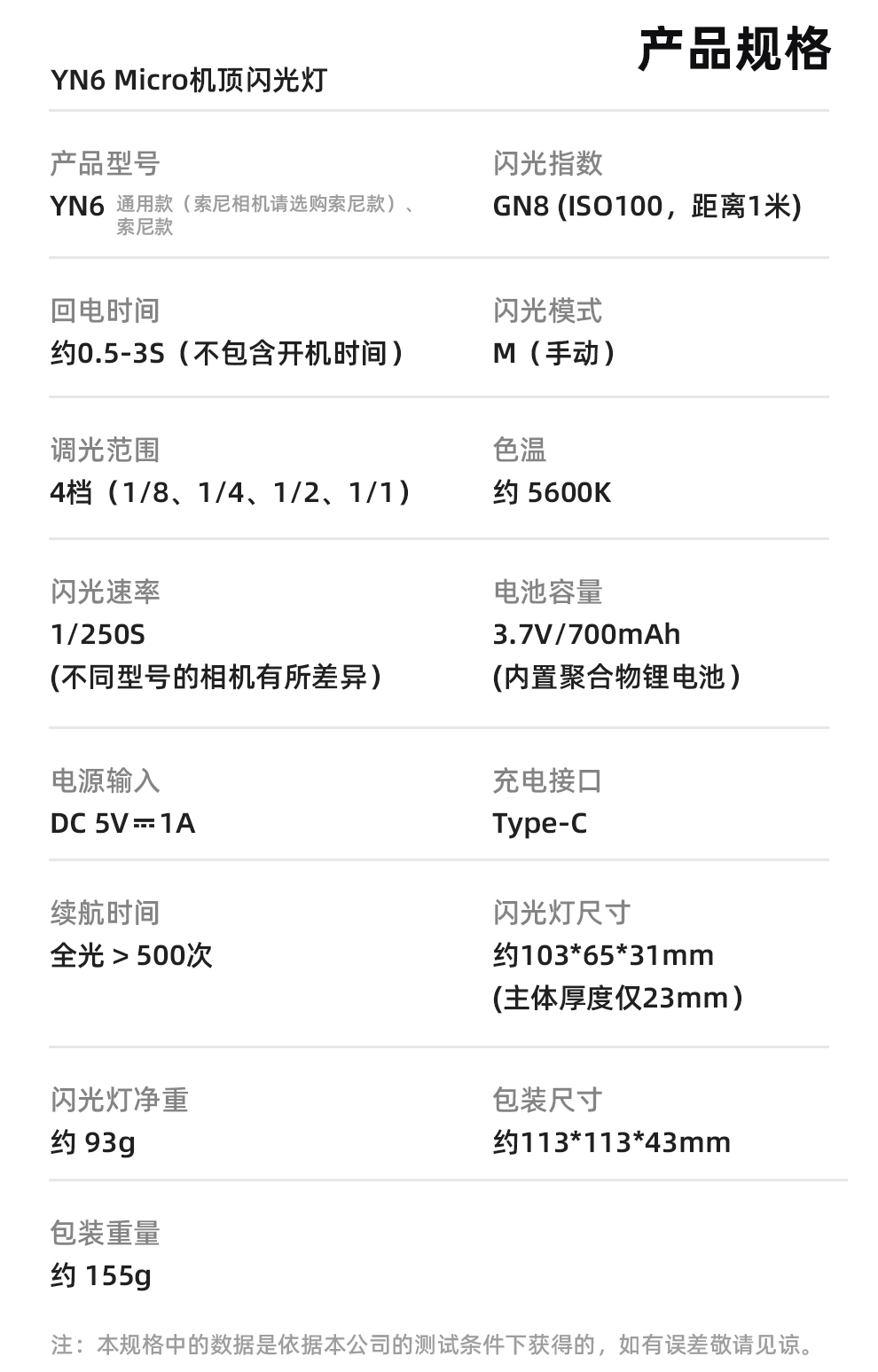 永诺YN6迷你机顶闪光灯 内置电池 通用款/索尼专用款