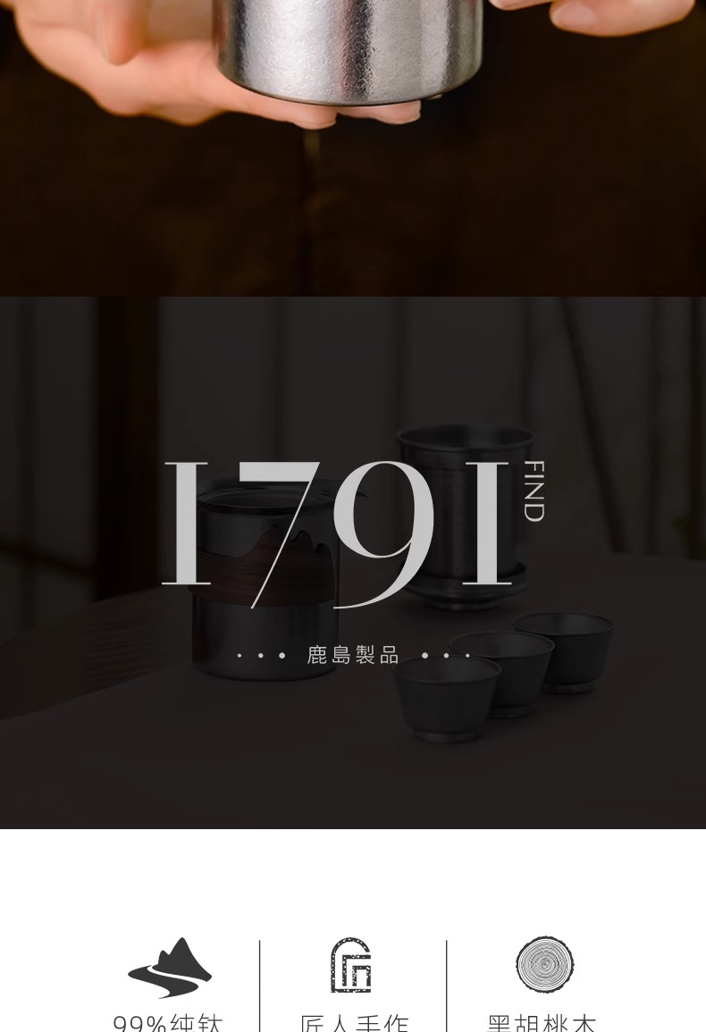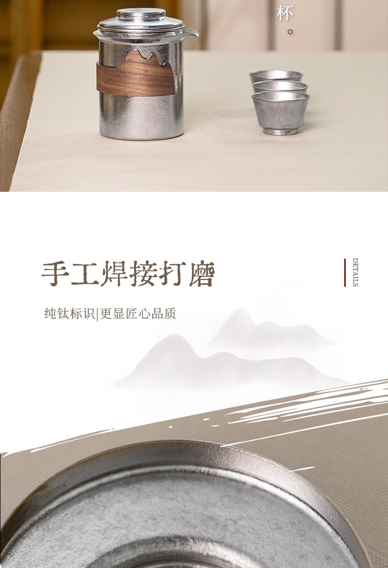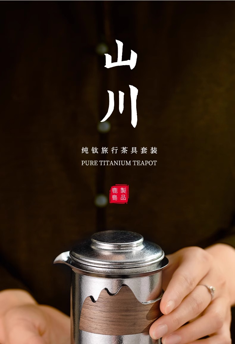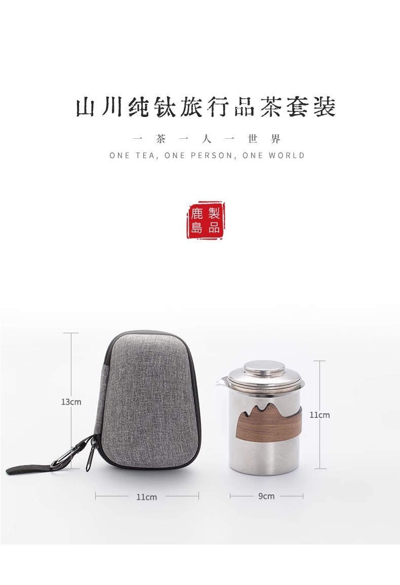 【样品特惠7折,仅1套,无货退款】鹿岛高档纯钛旅行户外茶具快客杯一壶三杯套装户外便携包鹿岛山川纯钛单人泡茶套装