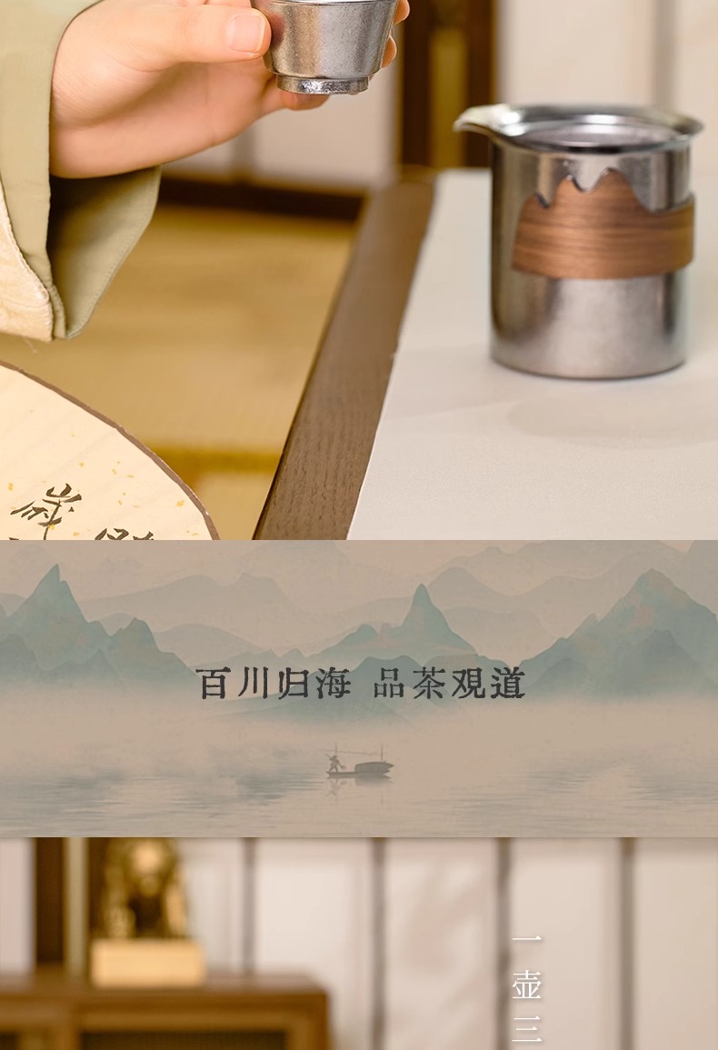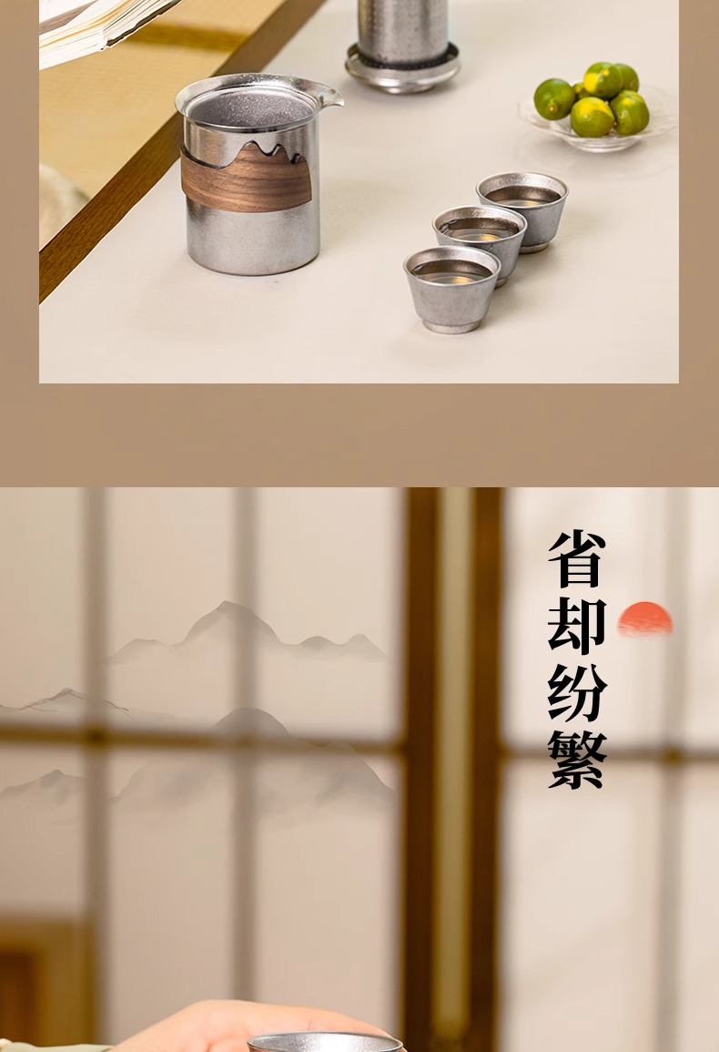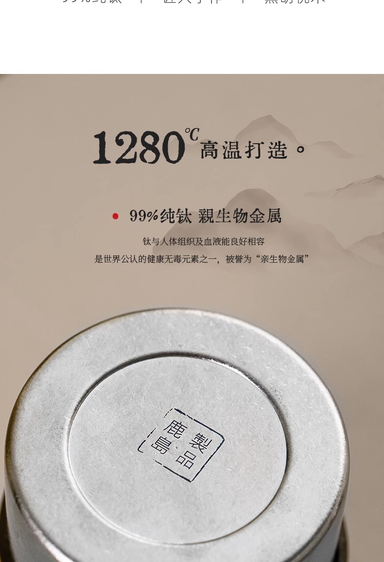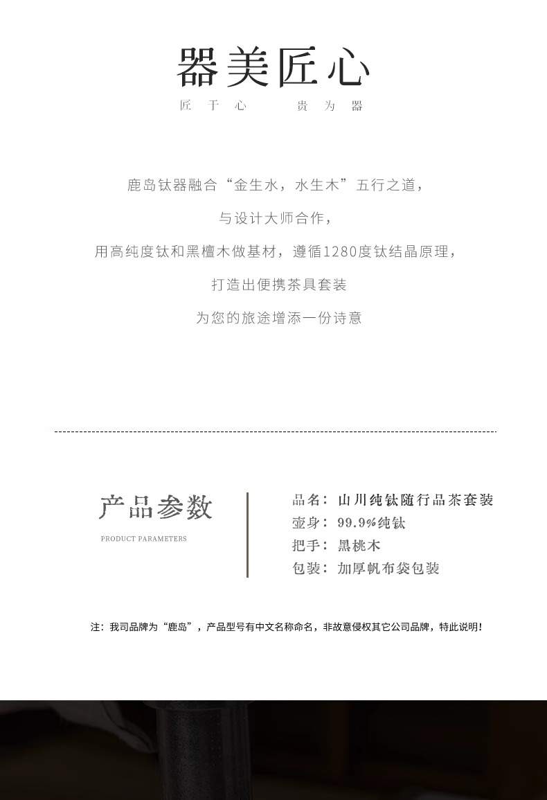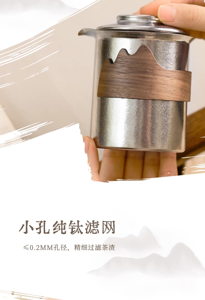 【样品特惠7折,仅1套,无货退款】鹿岛高档纯钛旅行户外茶具快客杯一壶三杯套装户外便携包鹿岛山川纯钛单人泡茶套装