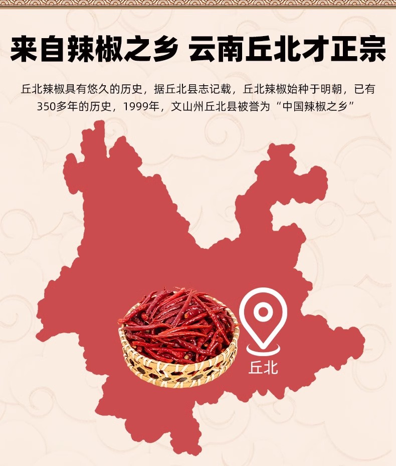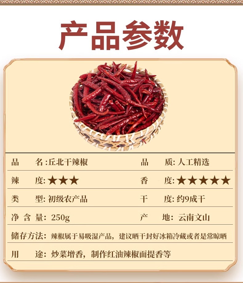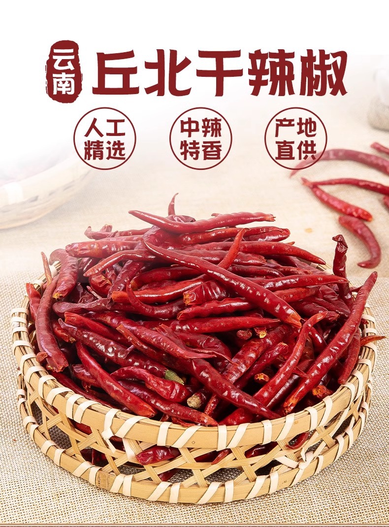 【云南文山产地直采】丘北干辣椒500g中辣特香型火锅炒菜专用调料