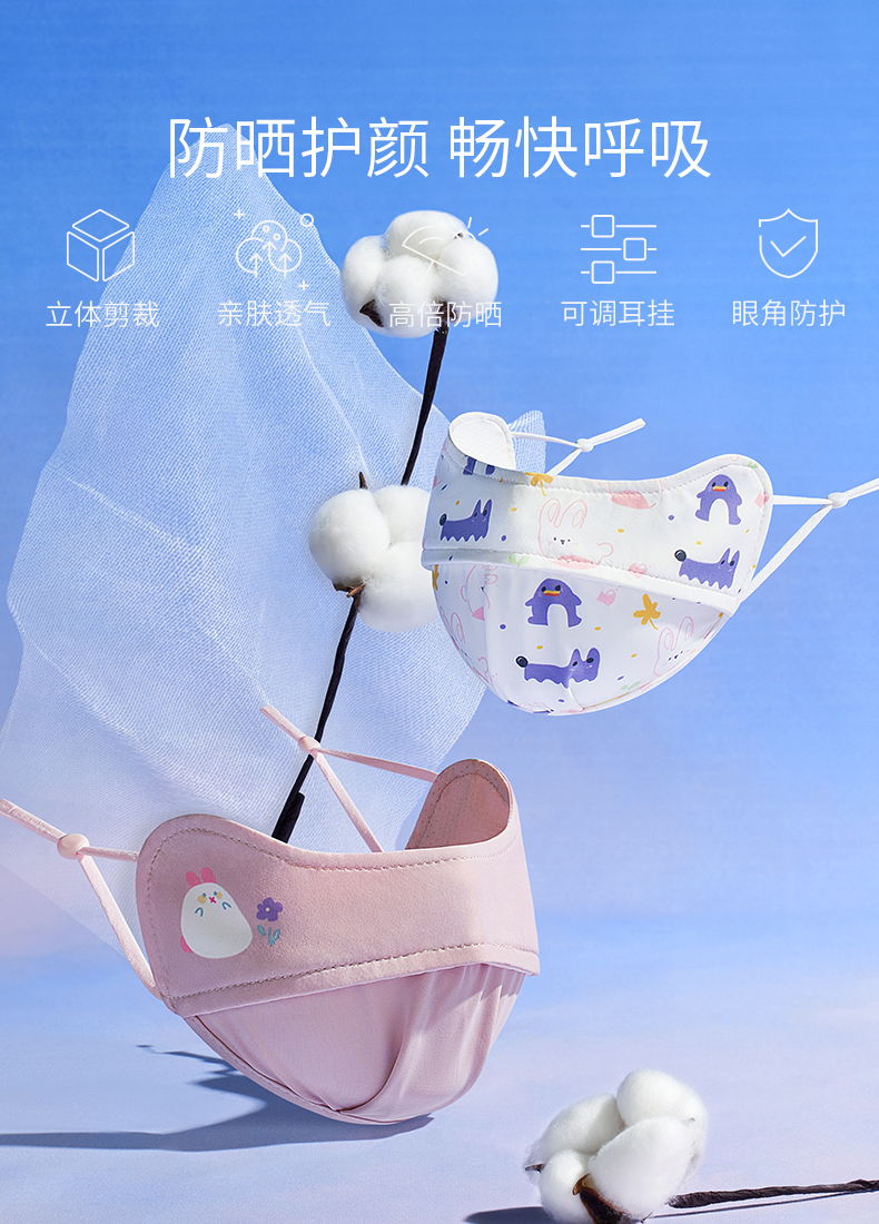 科巢夏季透气儿童防晒口罩防紫外线遮全脸冰丝遮阳脸罩面罩薄款护眼角