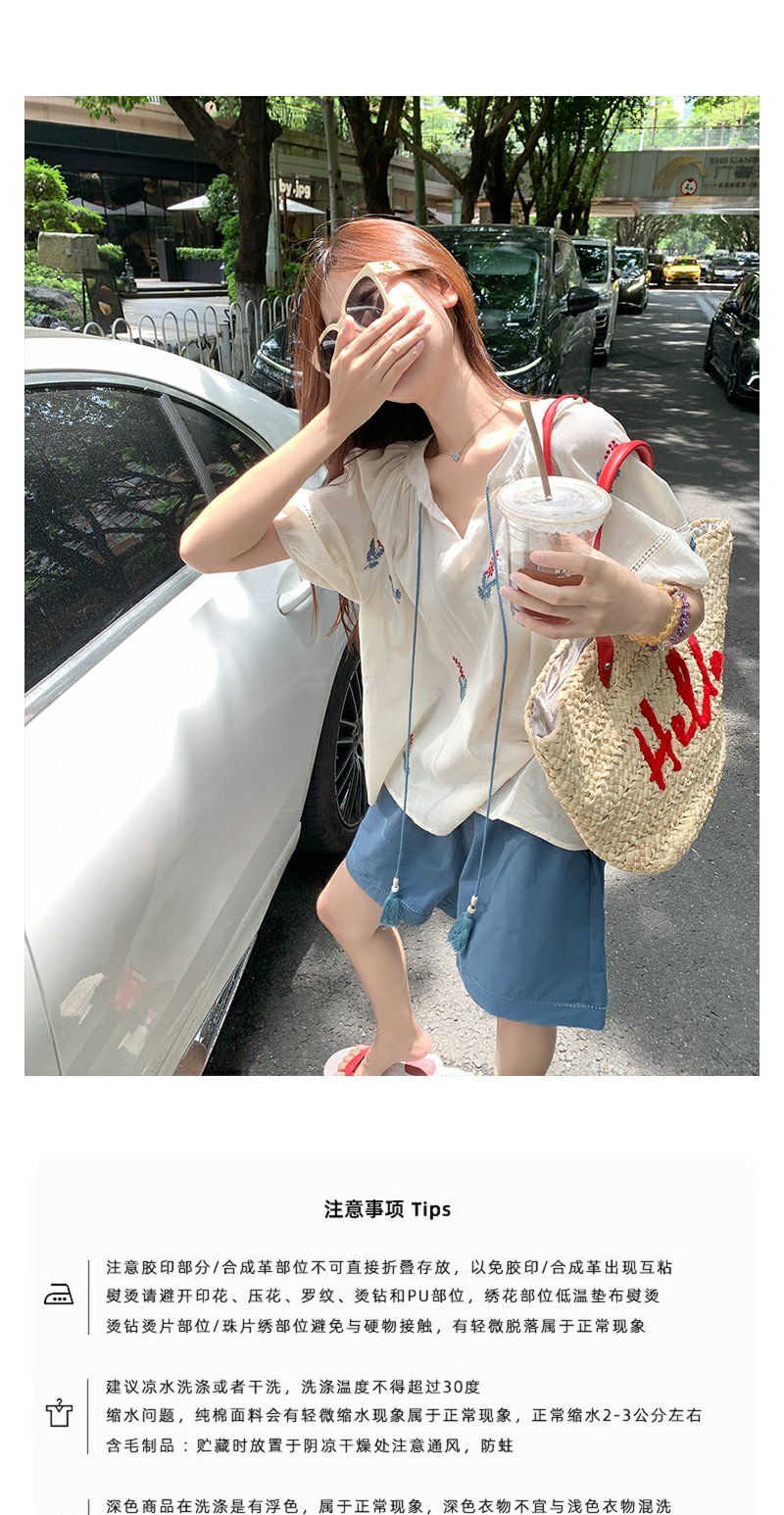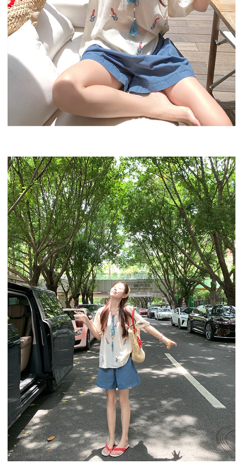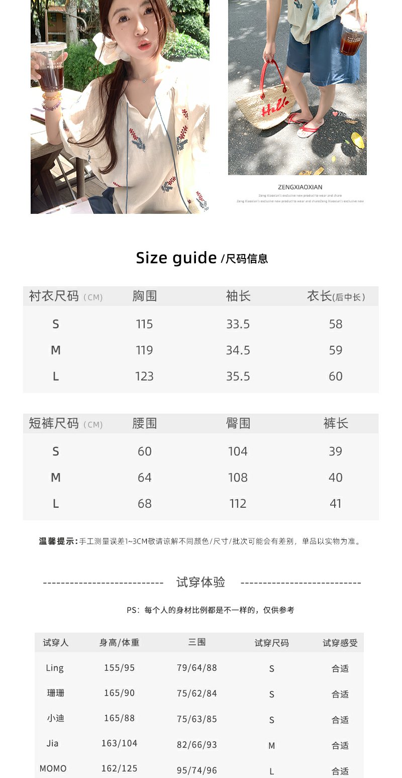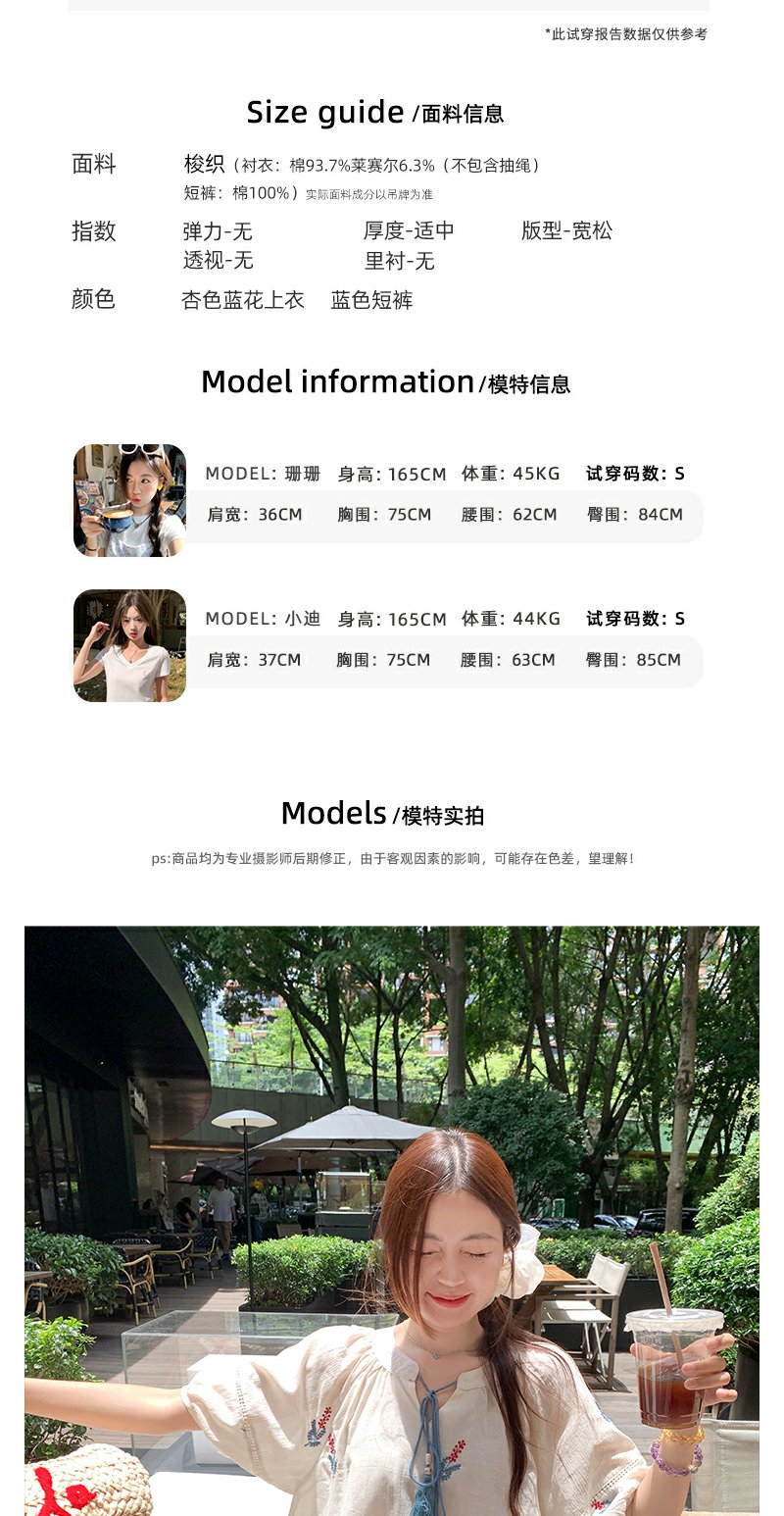 <曾小咸推荐>套装刺绣短袖衬衫蓝色休闲短裤