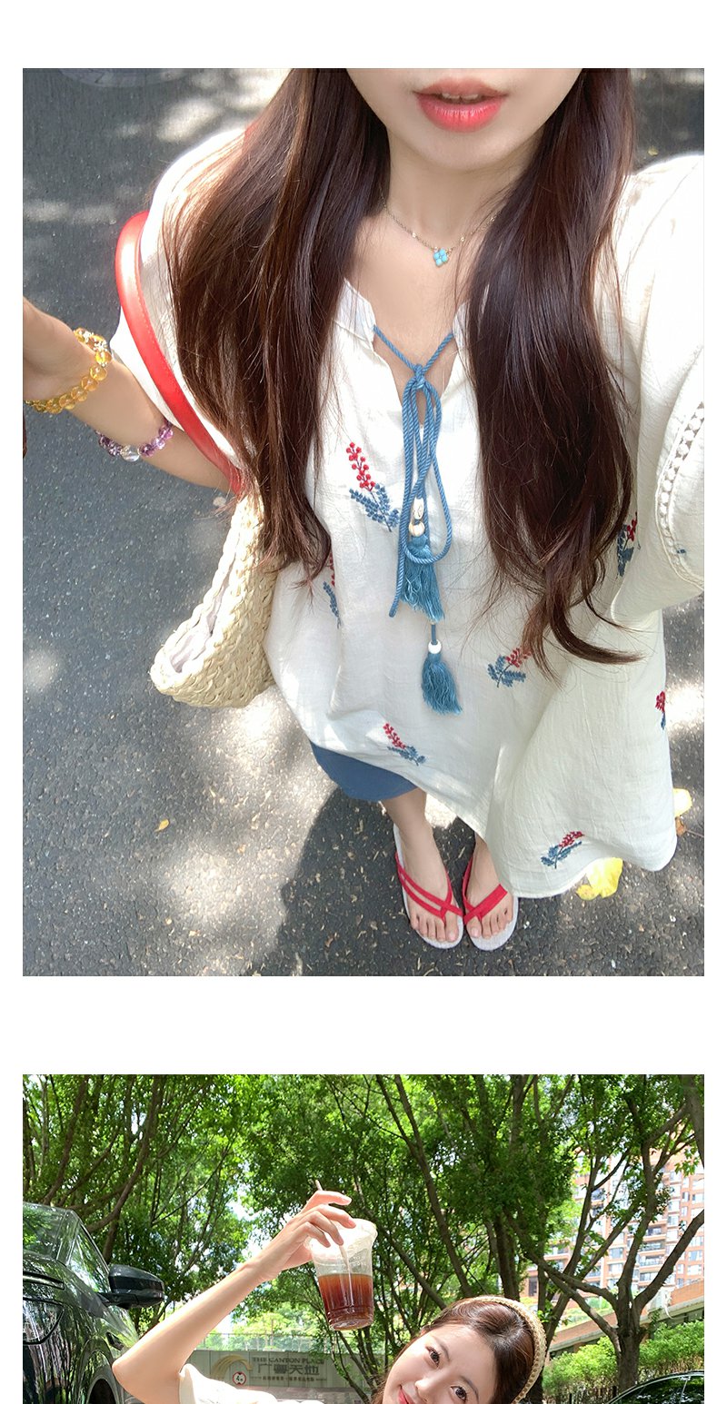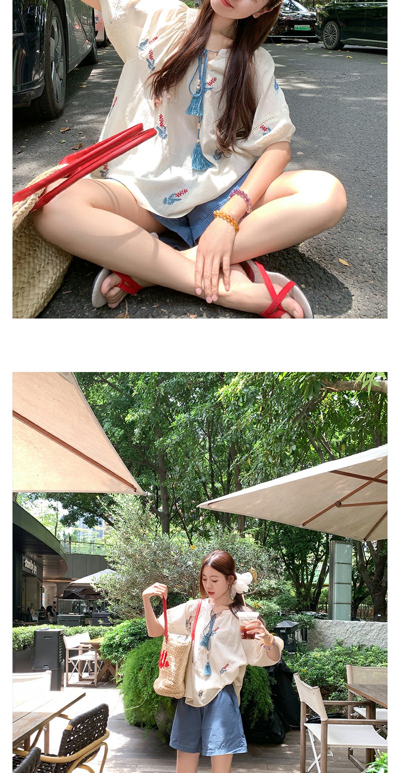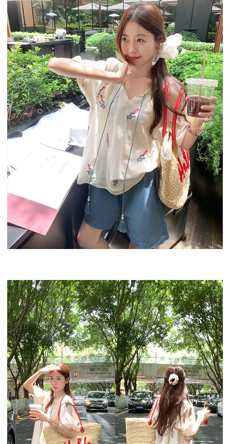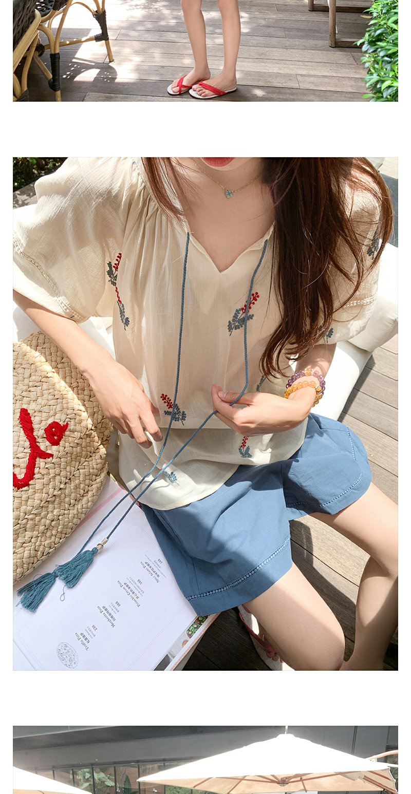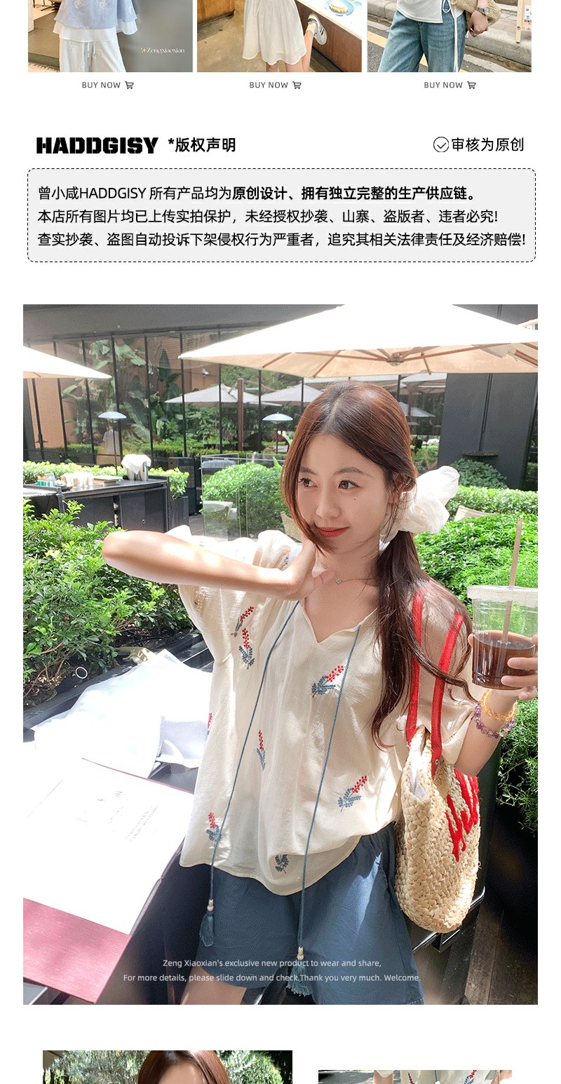 <曾小咸推荐>套装刺绣短袖衬衫蓝色休闲短裤