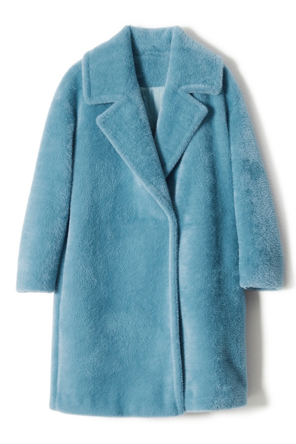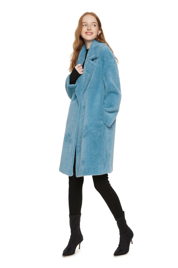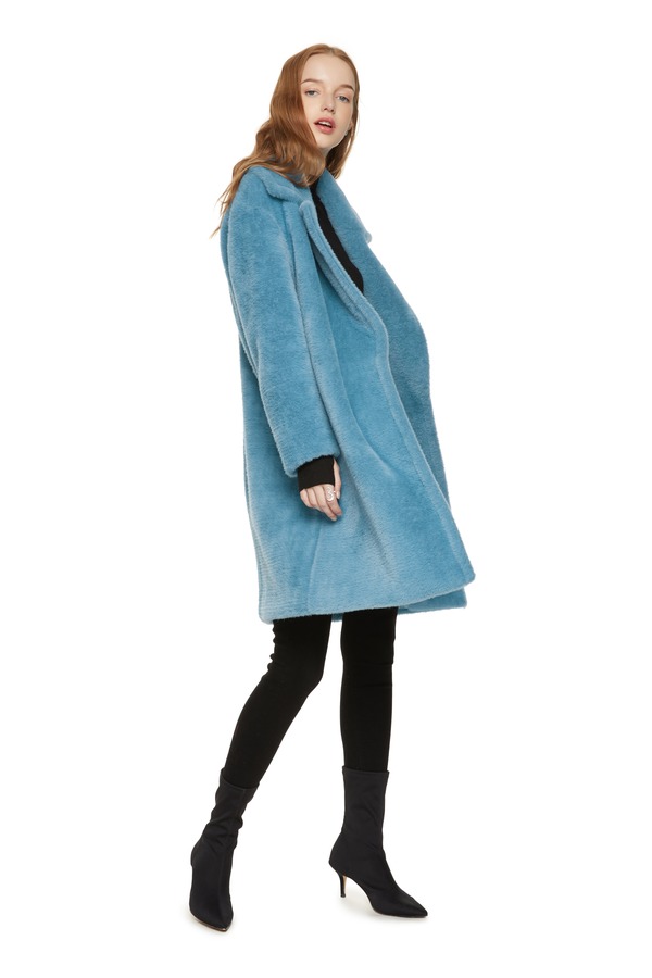 LNNNS 蓝色翻领短毛大衣 8063