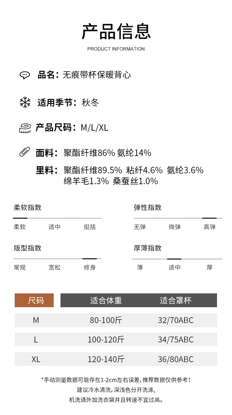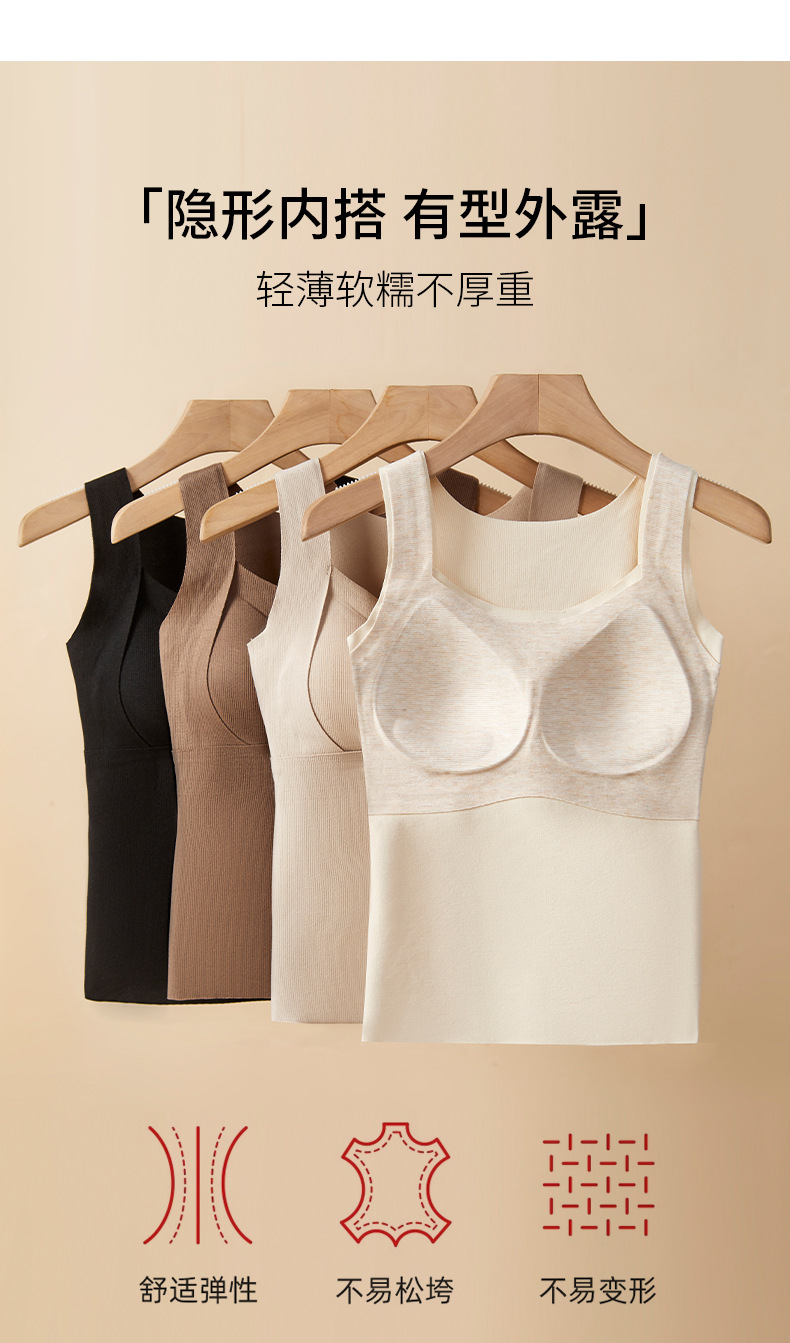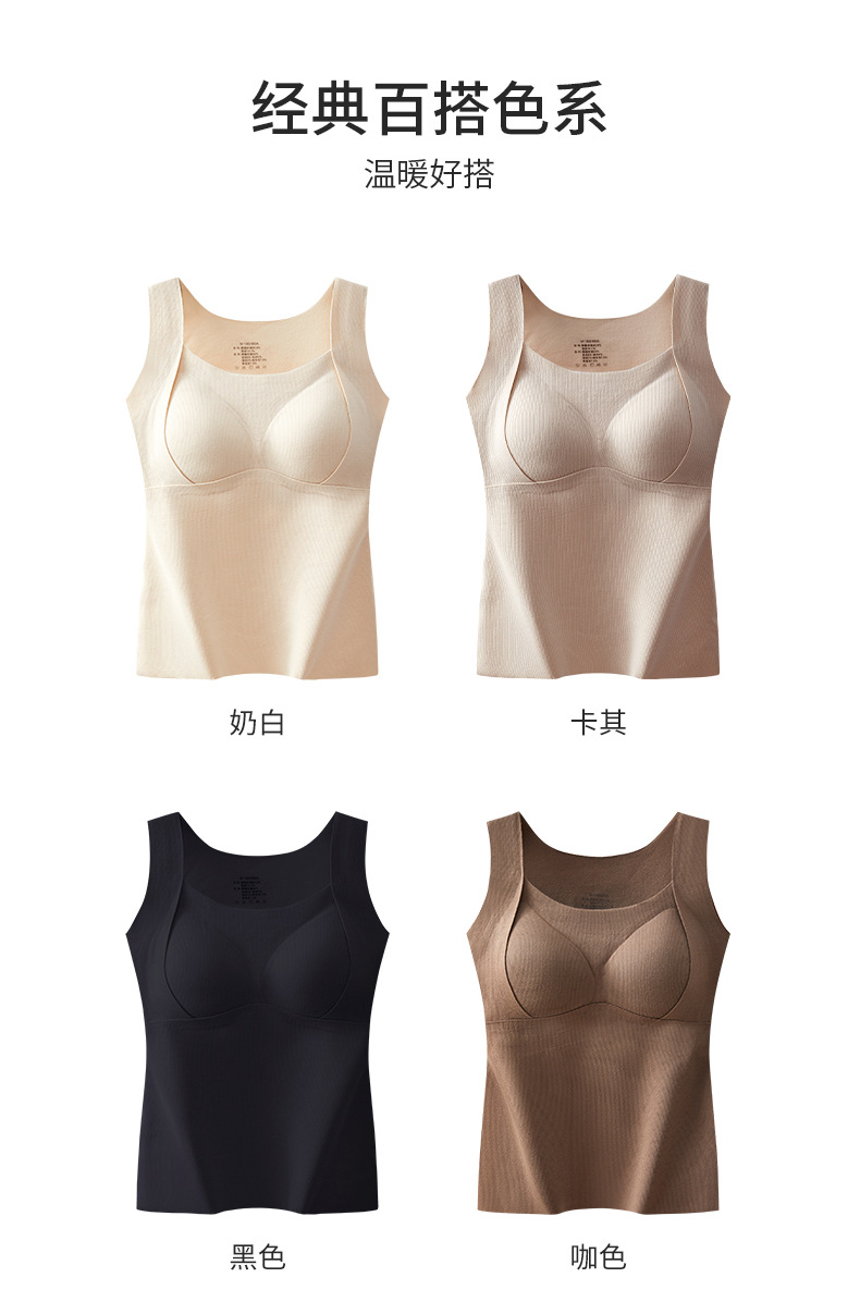 秋冬【带杯保暖背心!拍两件巨划算!】羊绒自发热保暖背心 带胸垫免穿文胸 秋冬加厚女士一体打底内衣上衣
