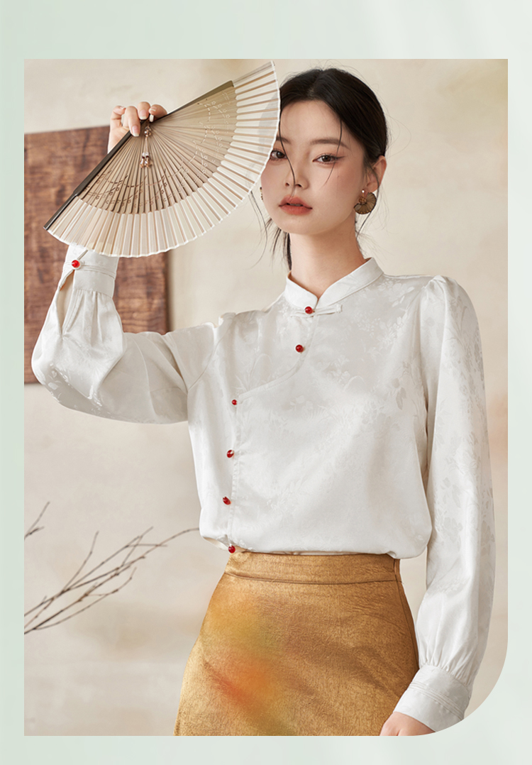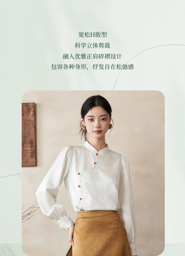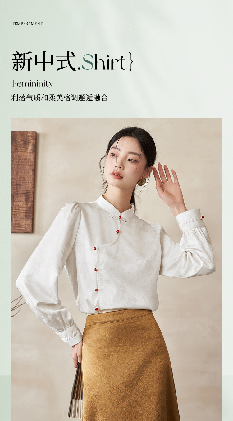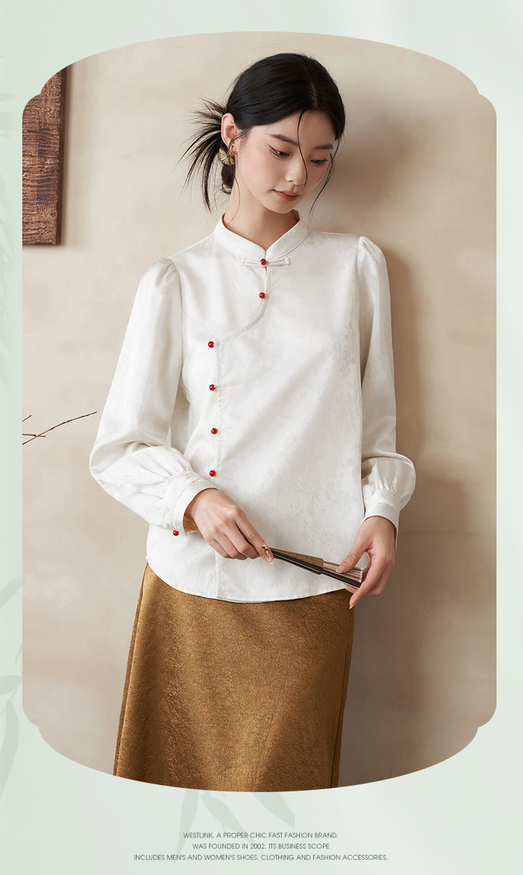西遇新中式立领长袖衬衫新款国风斜门襟吊珠盘扣内搭上衣10340127