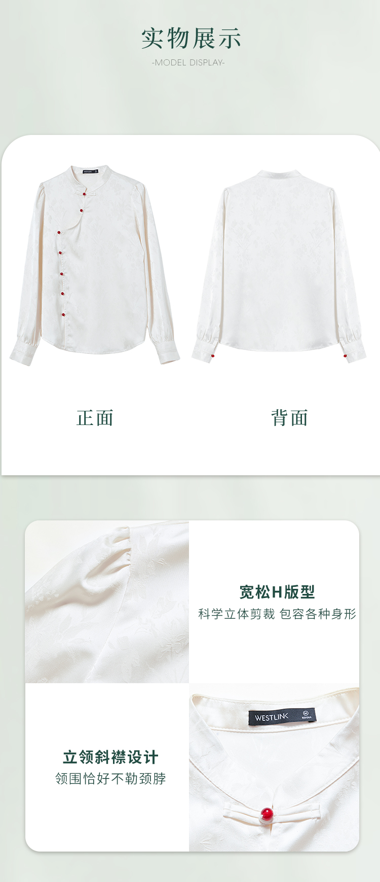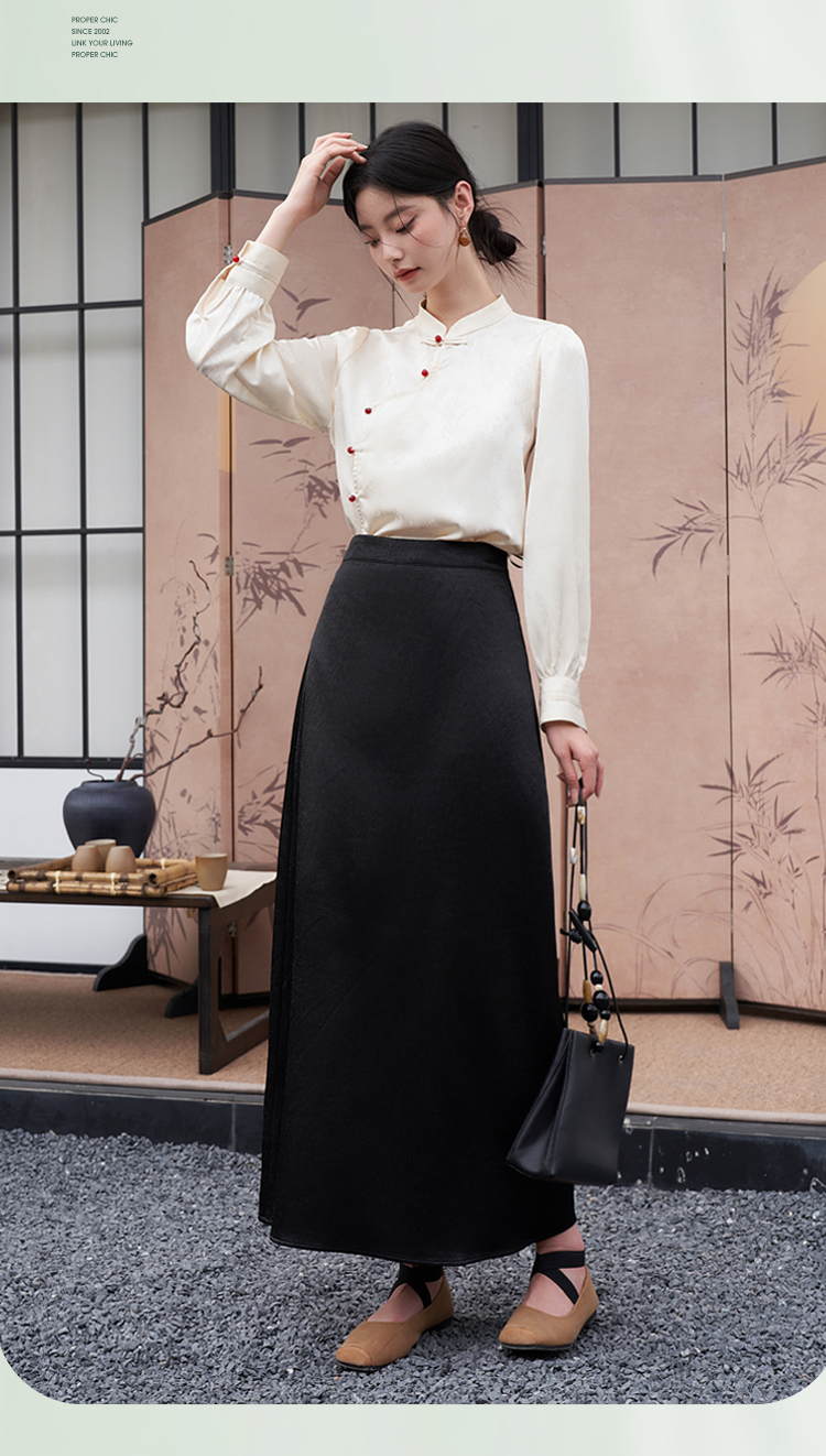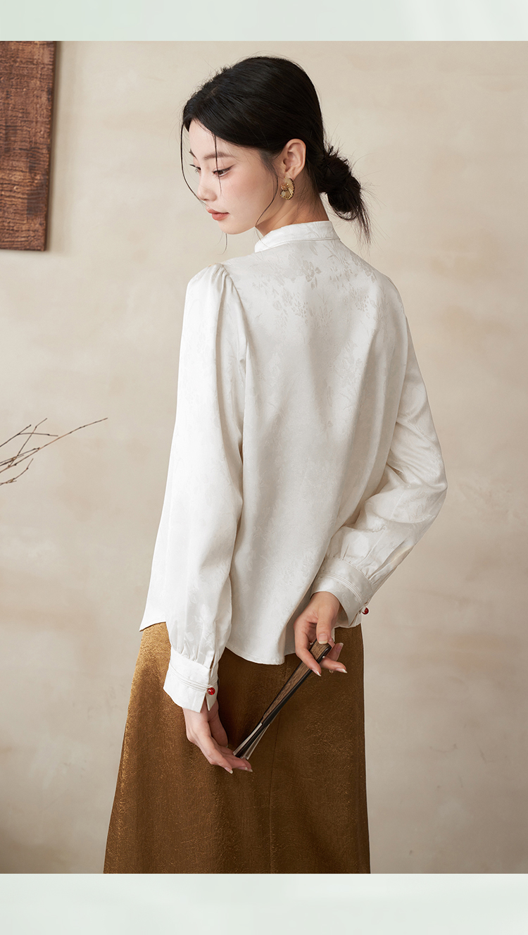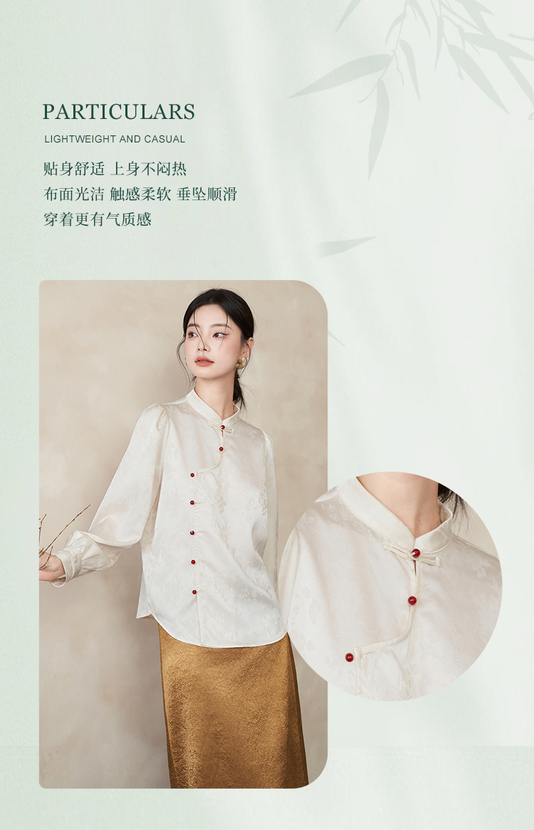 西遇新中式立领长袖衬衫新款国风斜门襟吊珠盘扣内搭上衣10340127