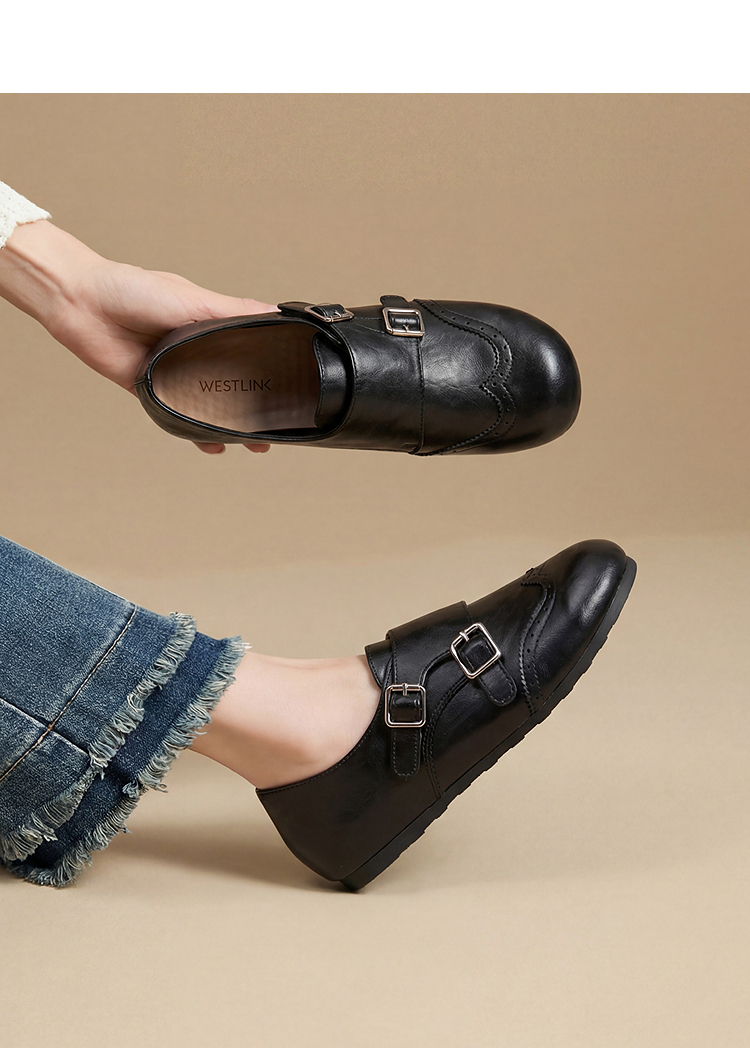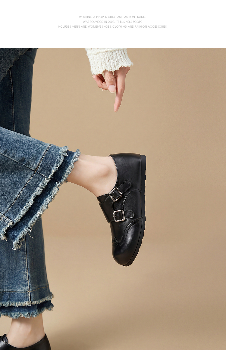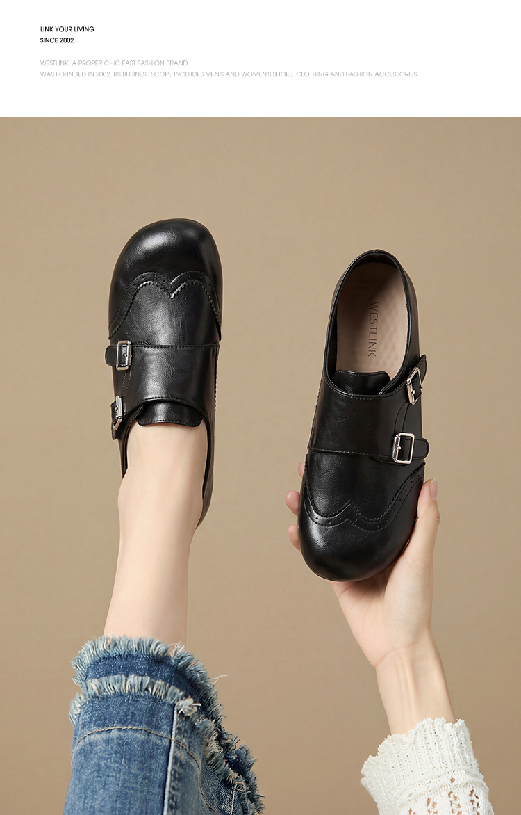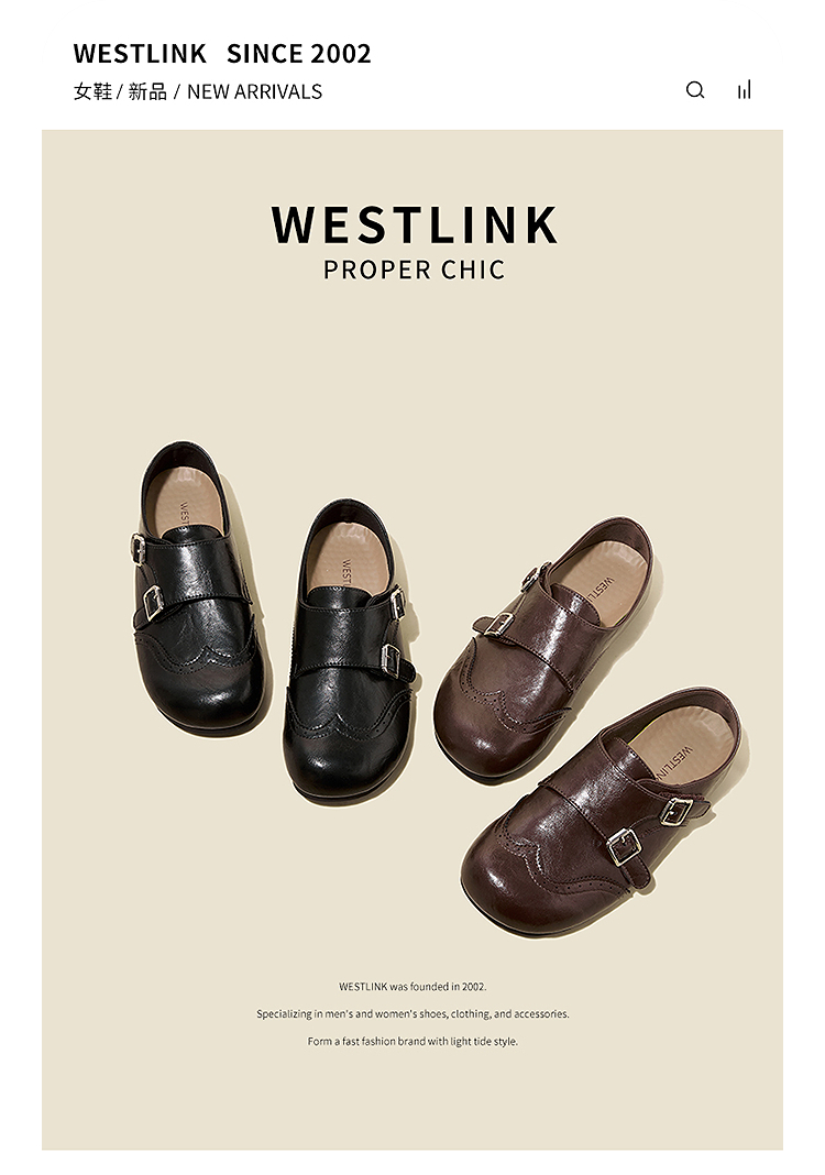 西遇乐福鞋女2026春季新款英伦风布洛克小皮鞋复古软底一脚蹬单鞋V0166237