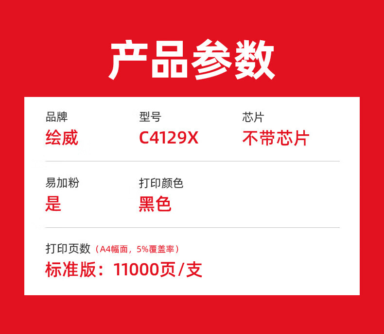 绘威C4129X 29X易加粉硒鼓 适用惠普HP 5000 5100DTN 5100se 5100le佳能EP-62 1610 1810方正A5000墨盒hp29x