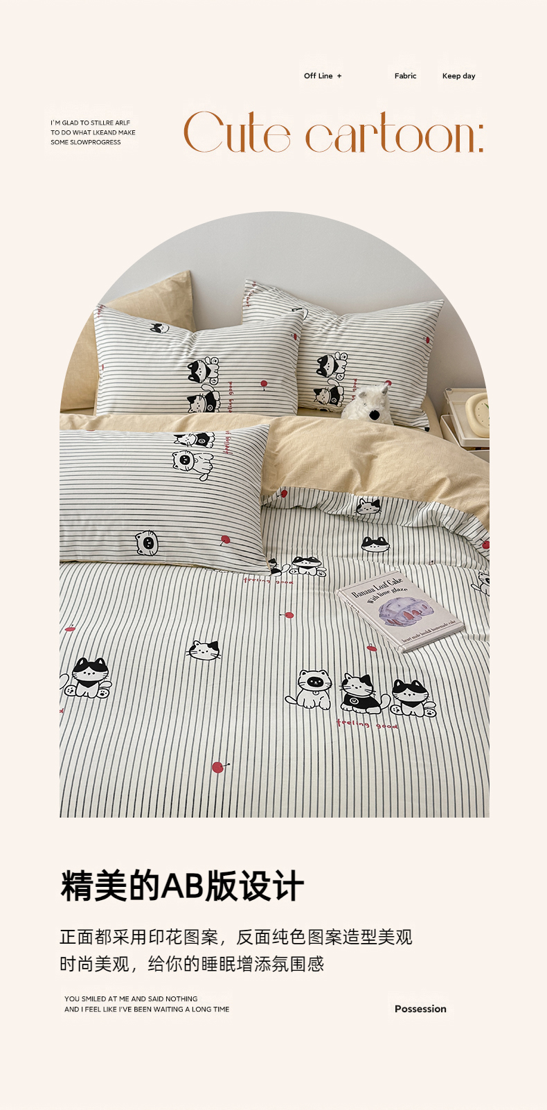 自然醒居家全棉ins风床上四件套北欧纯棉100简约床品男床单人被套床笠宿舍三件套NH150