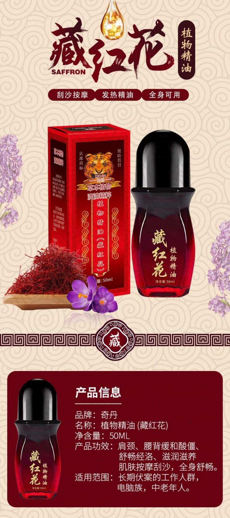 藏红花精油草本精华背部酸麻肩颈酸痛腰腿舒筋活骨发热精油艾灸
