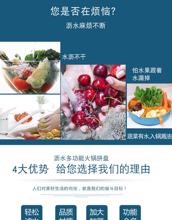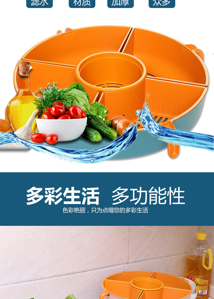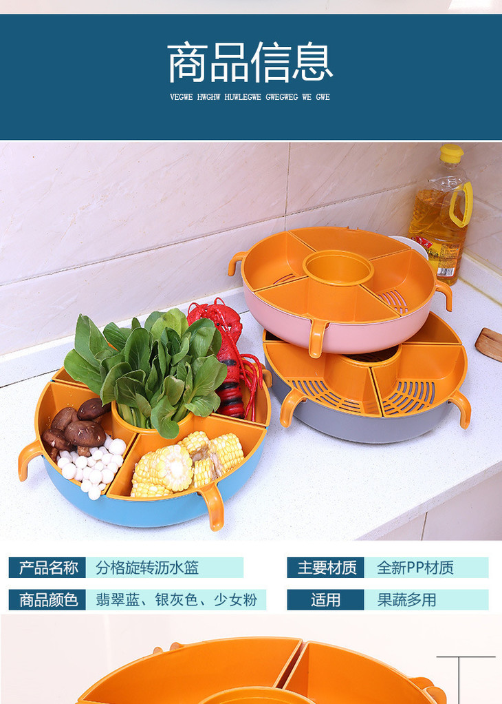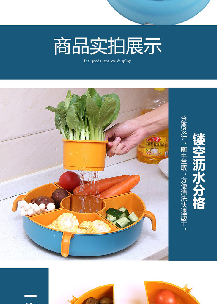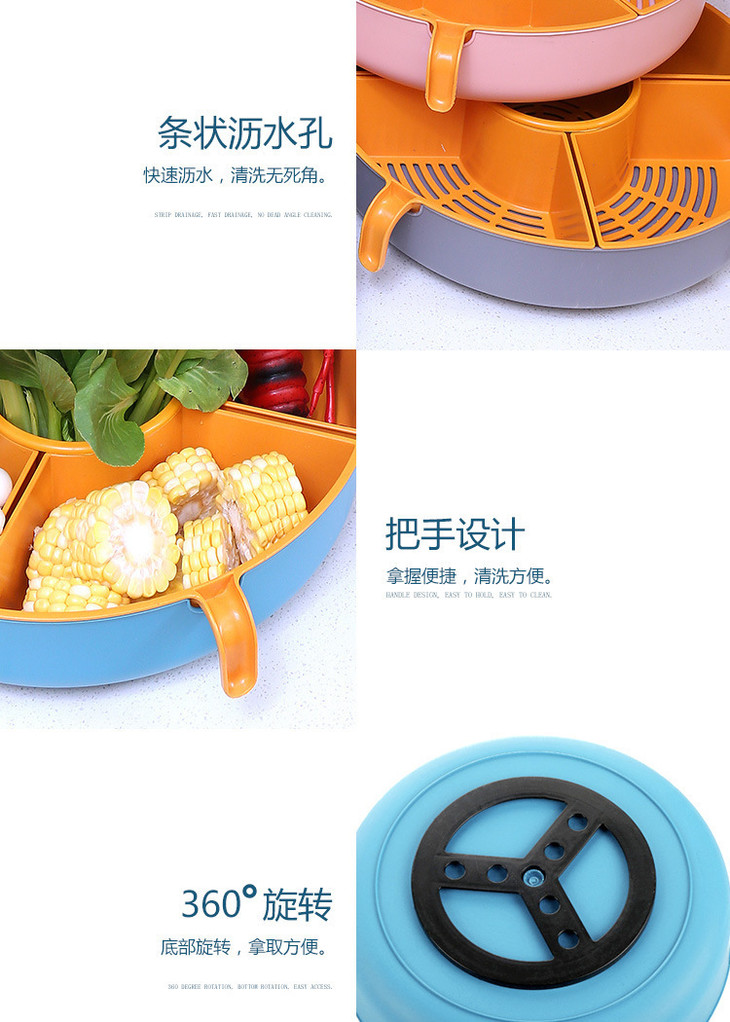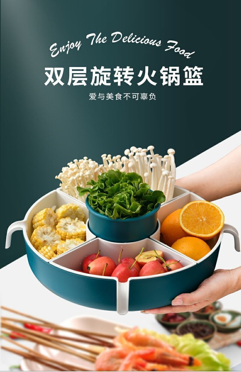 【多功能旋转沥水篮,旋转火锅篮】果肉盘分离 一格一物不串味,家用厨房火锅拼盘多格水果盘洗蔬菜篮