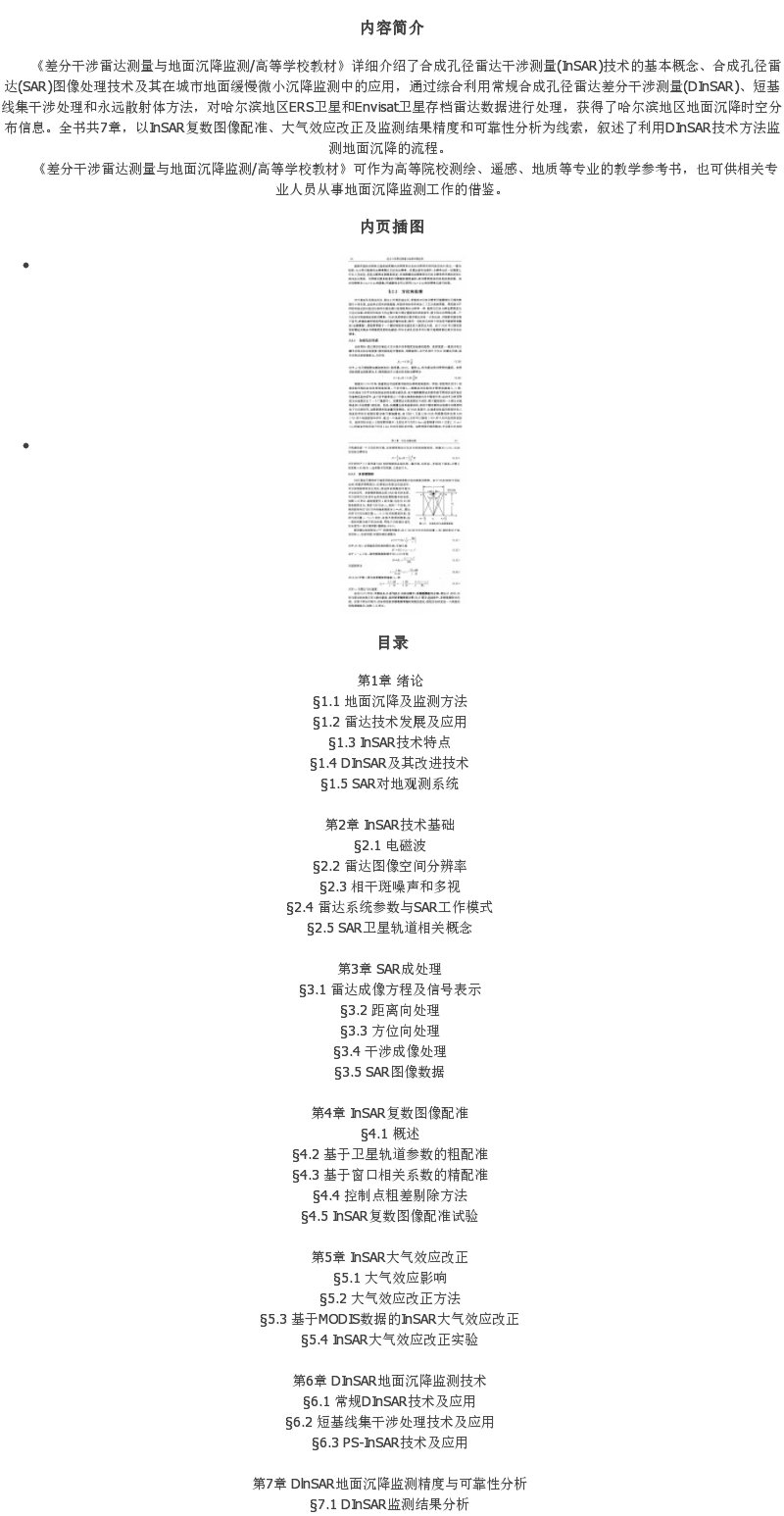 《差分干涉雷达测量与地面沉降监测/高等学校教材》(侯建国,初禹)
