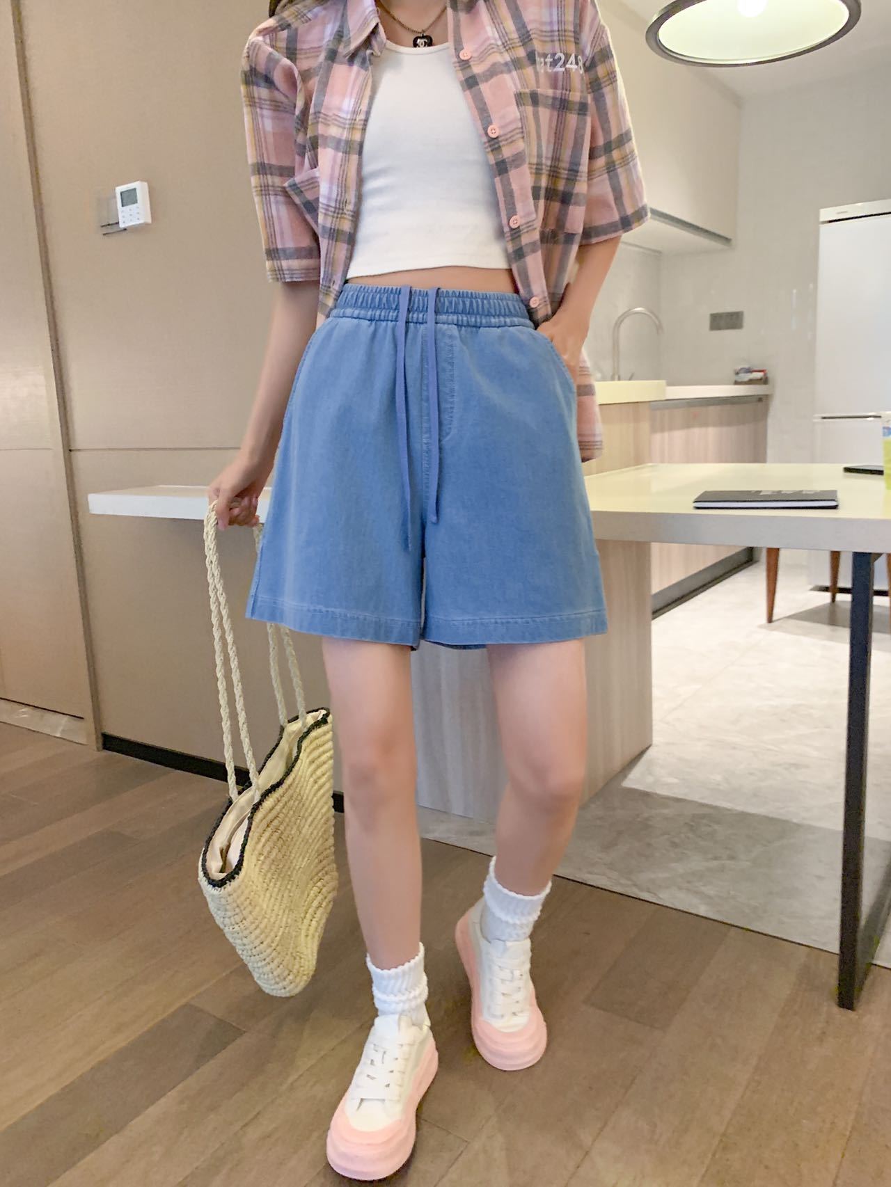 专属 U家同款牛仔短裤 99元两条【遮肉显瘦 自然随性】摩登复古的纯色水洗牛仔短裤 高腰显瘦阔腿 短裤 松腰女生甜酷 纯色短裤 货号:303