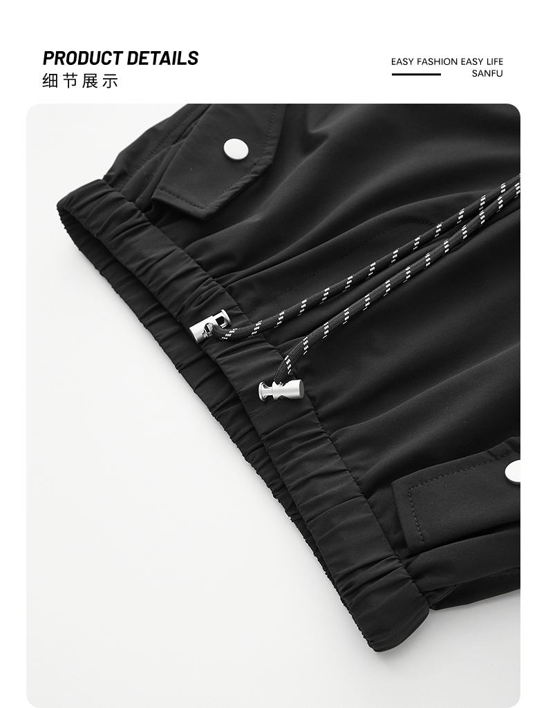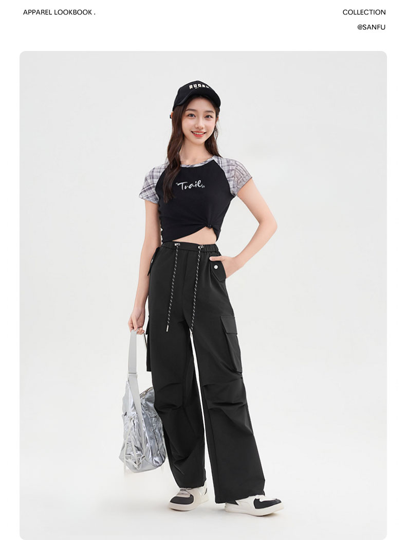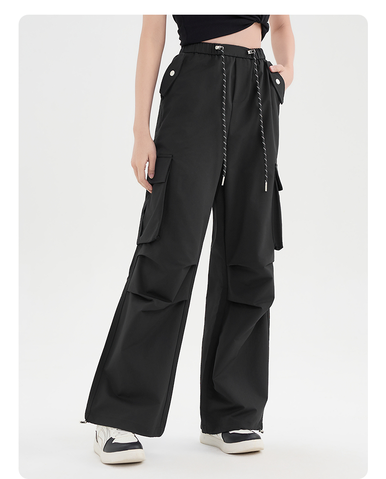 半身缘女裤 春夏简约户外抽绳直筒抽绳两穿工装裤DS502