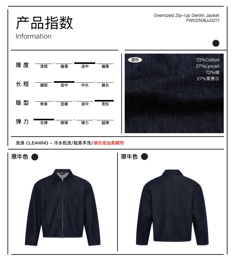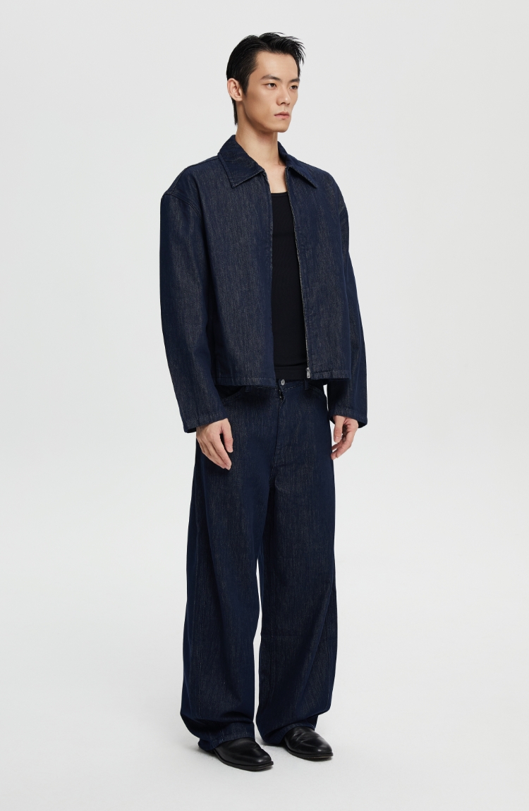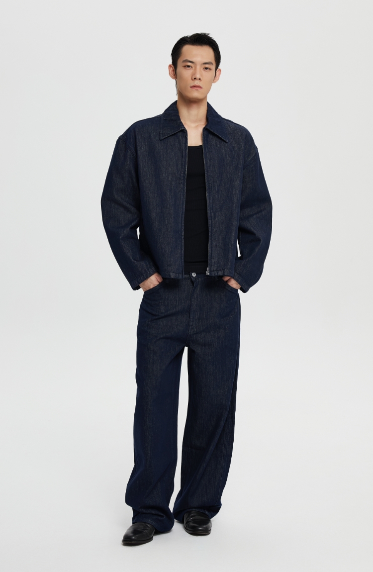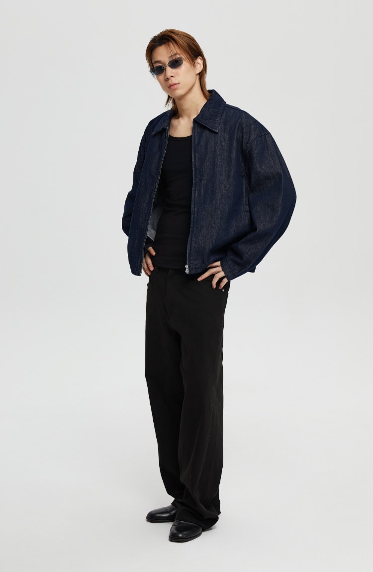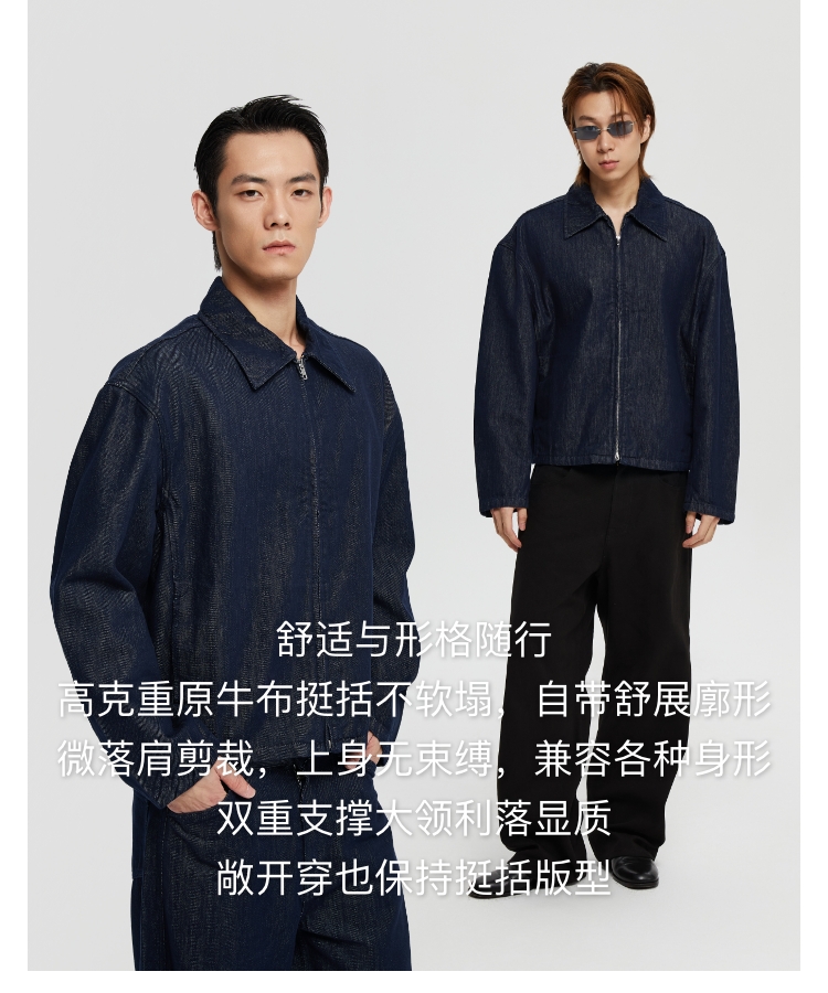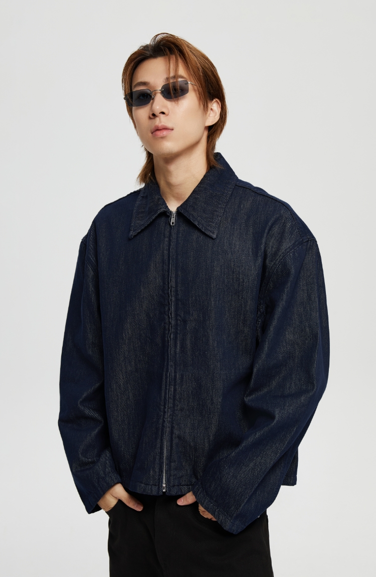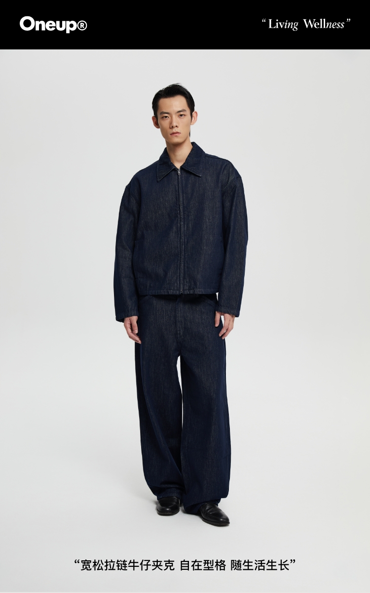 oneup宽松拉链牛仔夹克