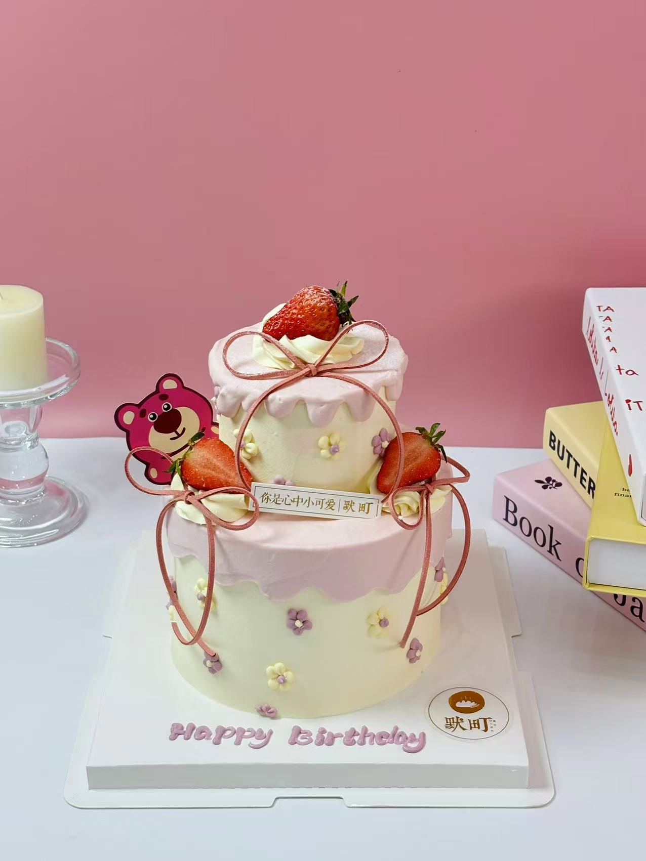 草莓熊可爱双层蝴蝶结小蛋糕
