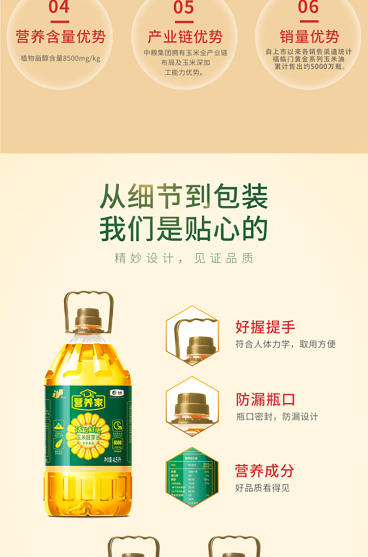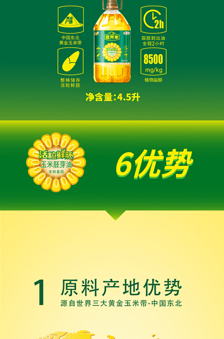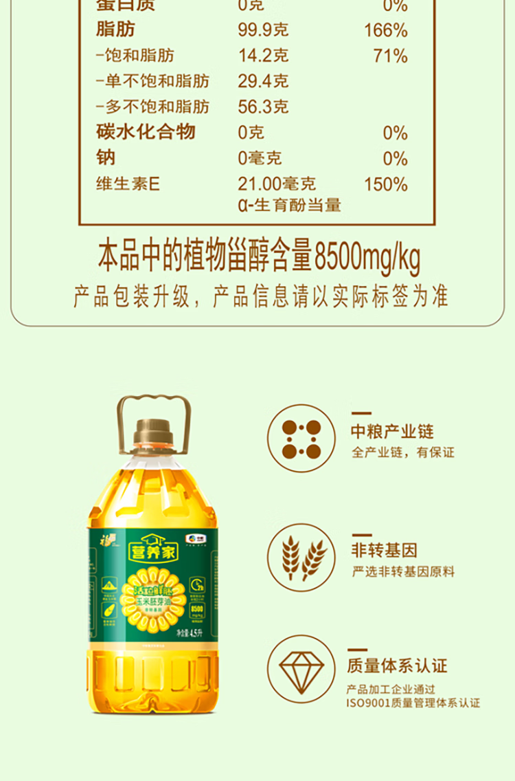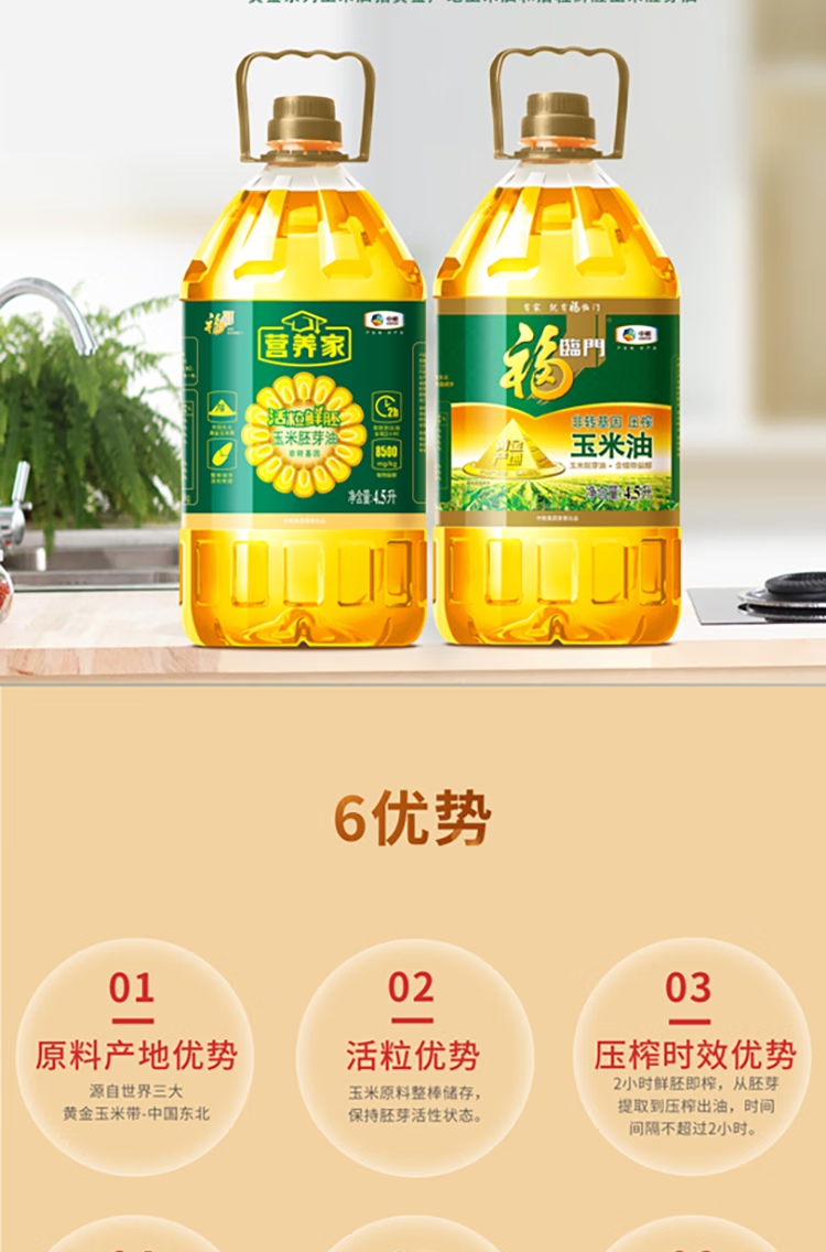 福临门营养家活粒鲜胚玉米胚芽油4.5L