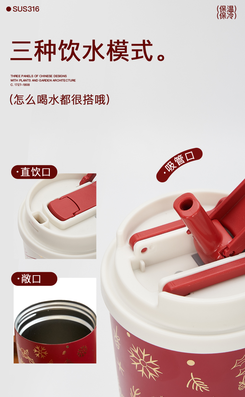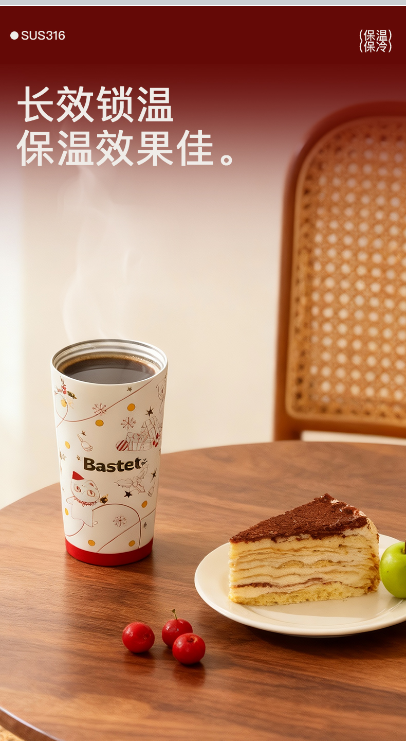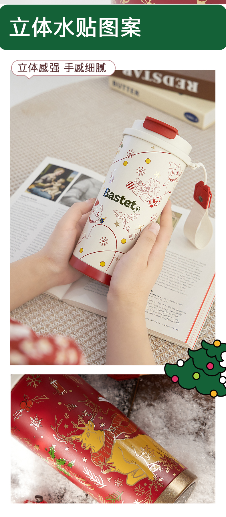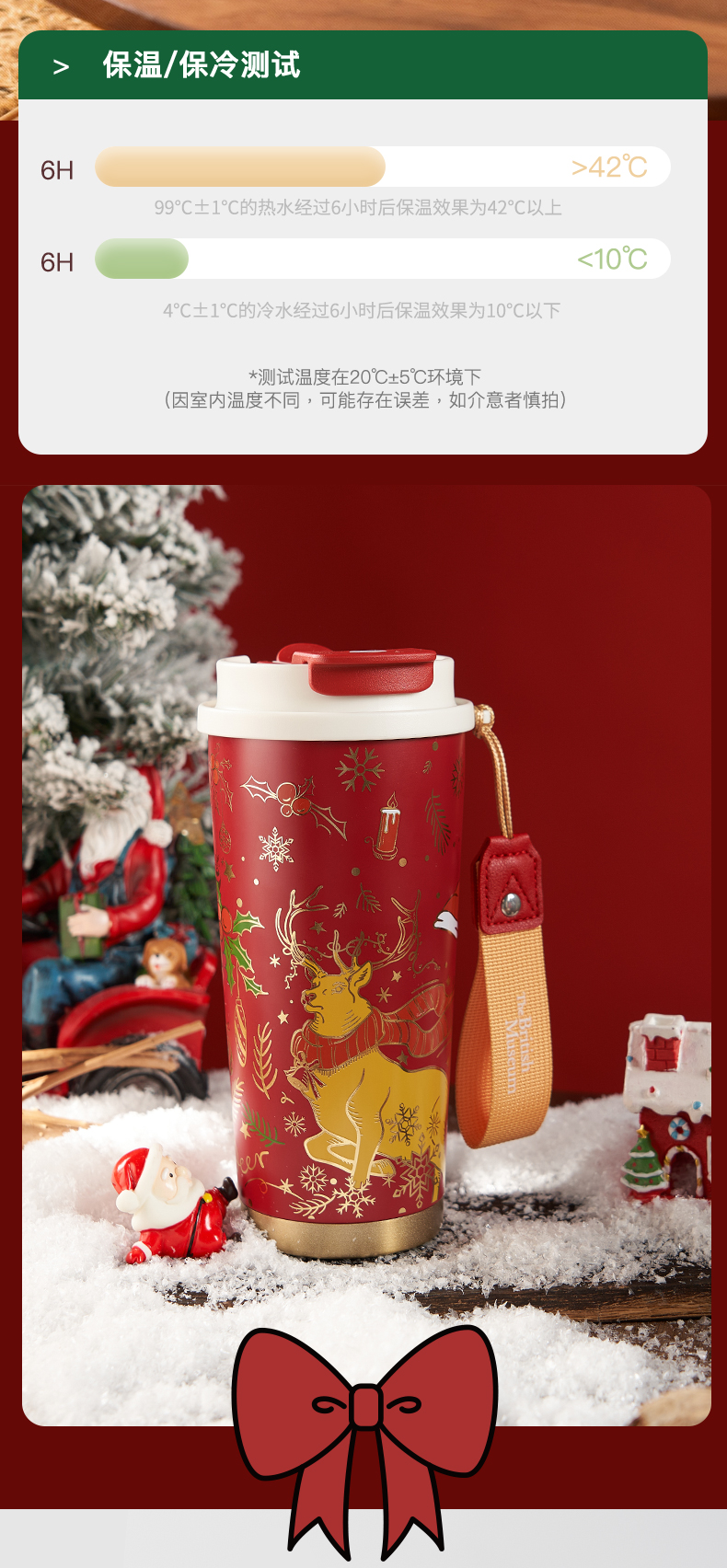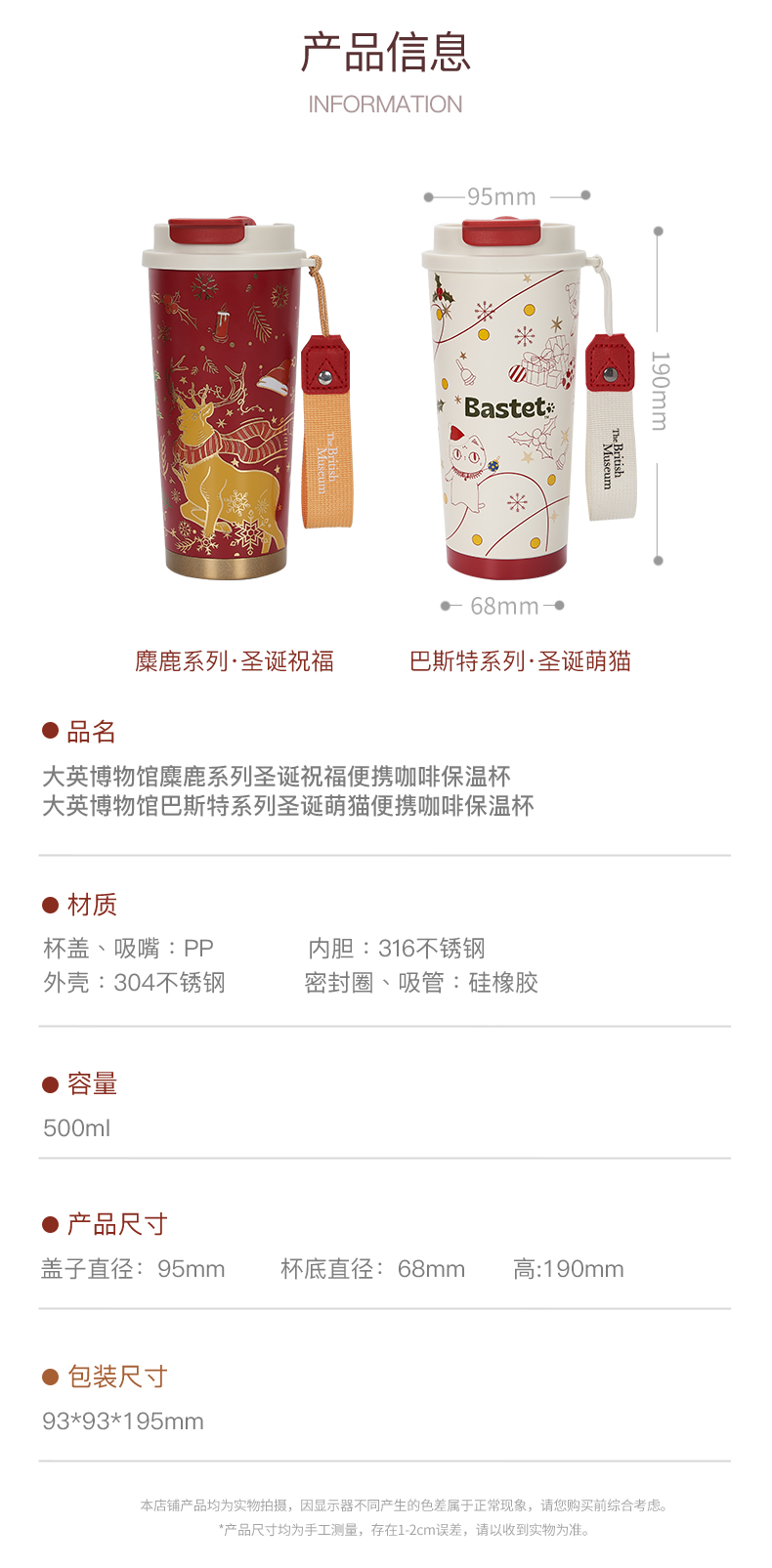 大英博物馆 麋鹿系列 盖亚·巴斯特系列 500ml 圣诞祝福 便携咖啡保温杯