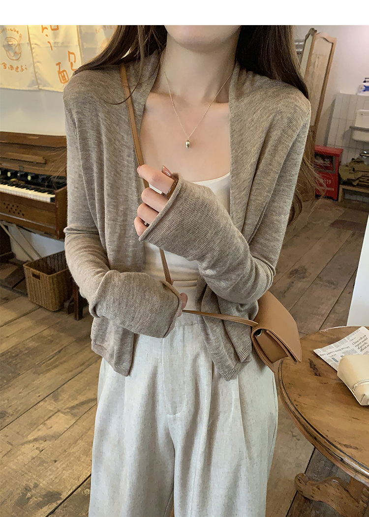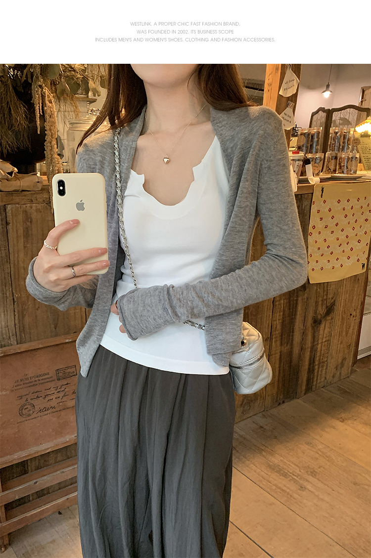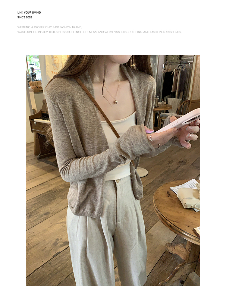 西遇薄款短外套女秋季新款韩里韩气透气针织空调开衫外搭披肩SS051213