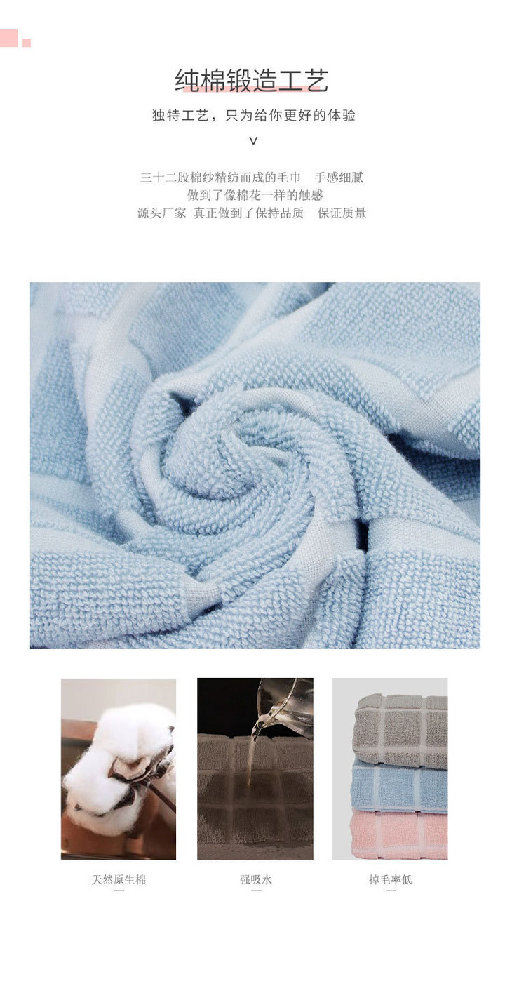 「两条装!纯棉毛巾」居家布艺洗脸不掉毛柔软吸水加厚成人男女学生洗澡面巾