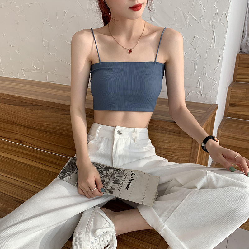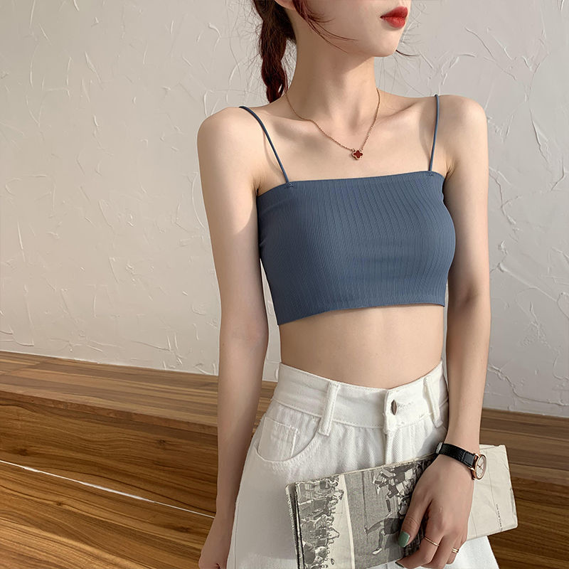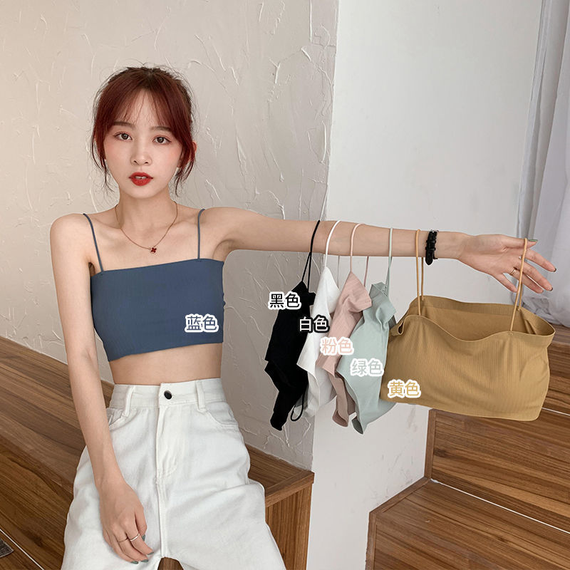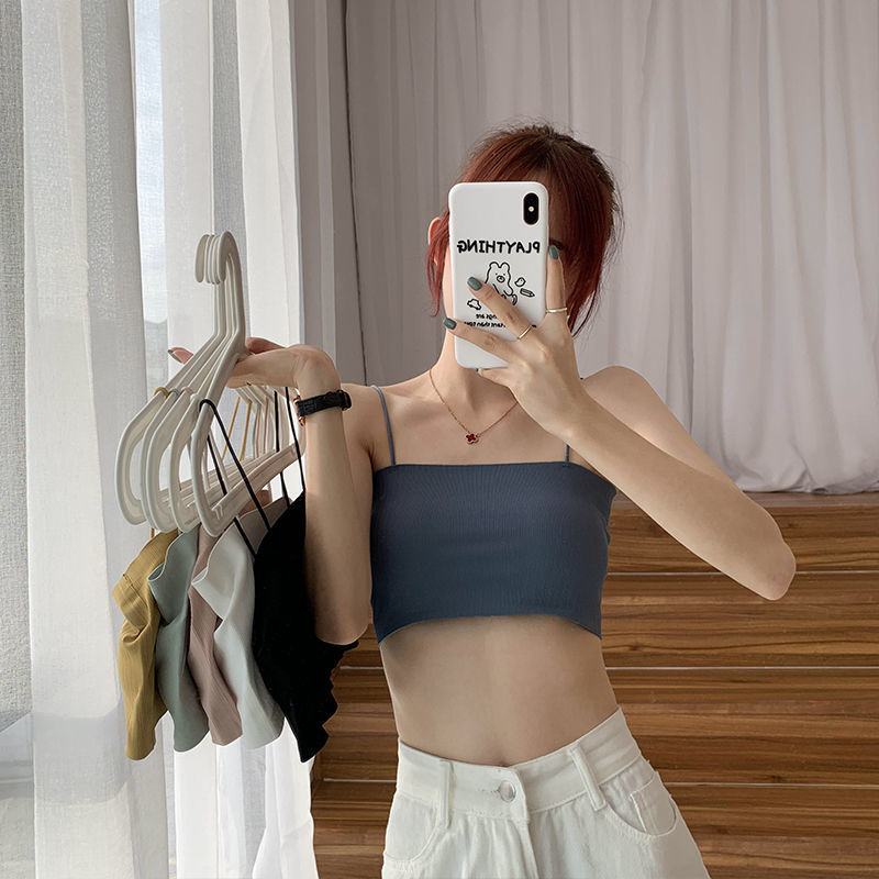 内衣女学生韩版初中生螺纹冰丝裹胸抹胸防走光吊带打底背心少女