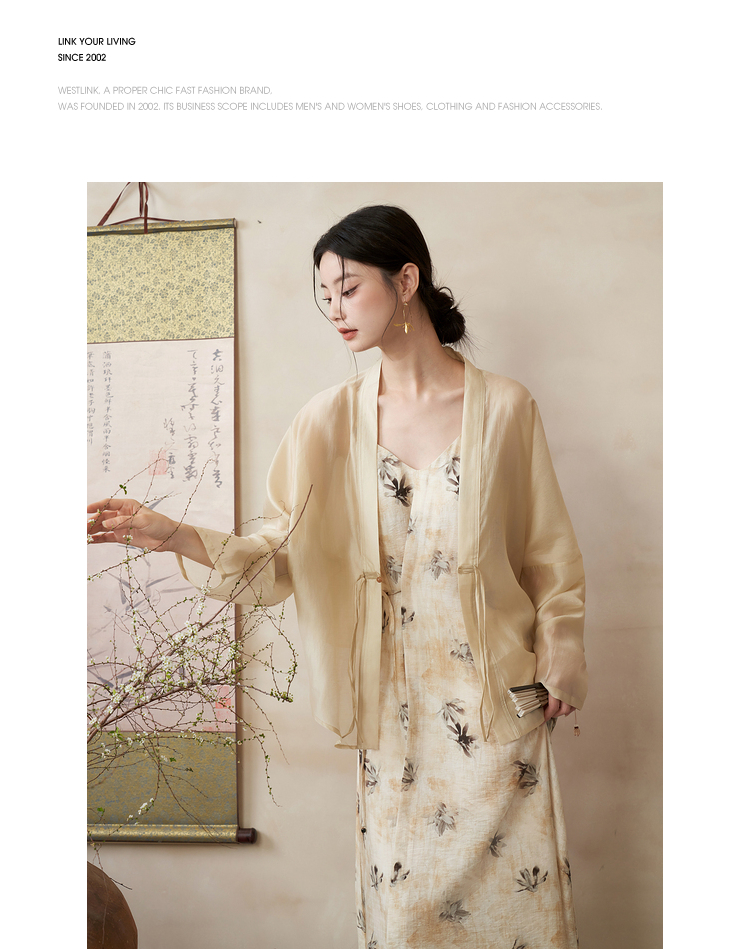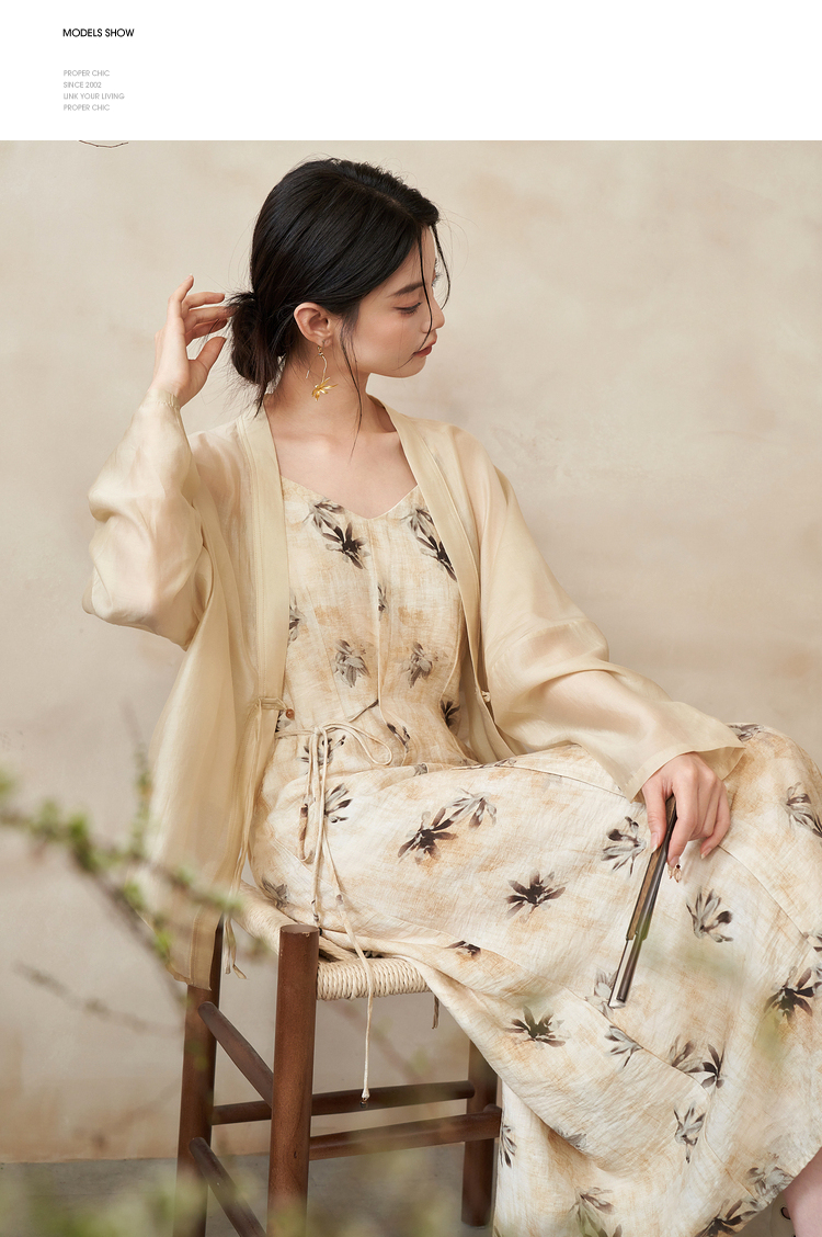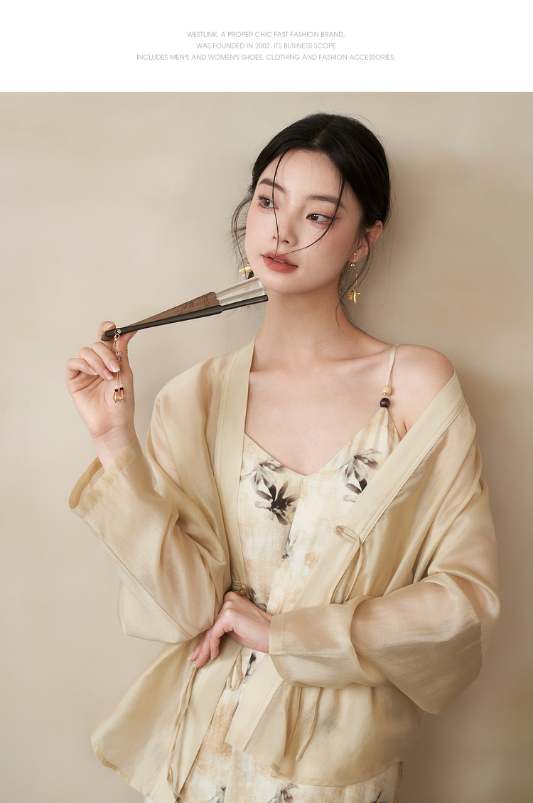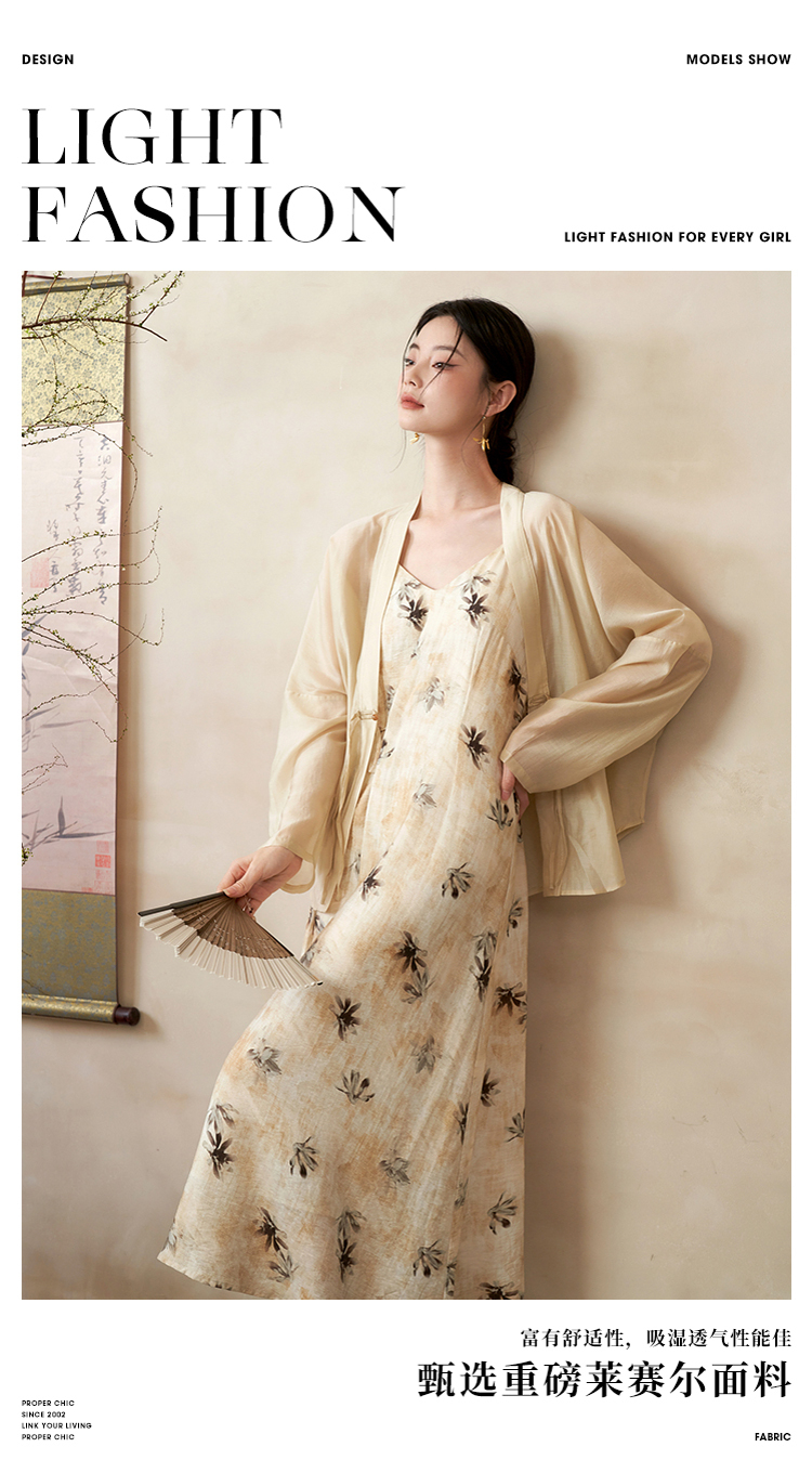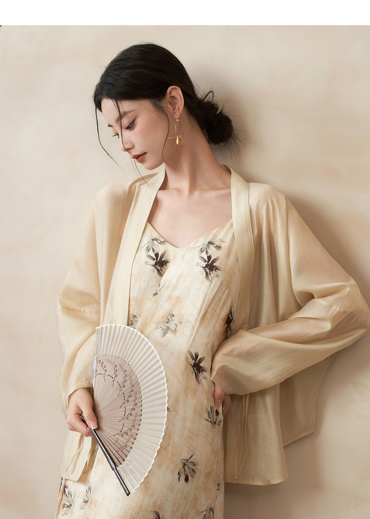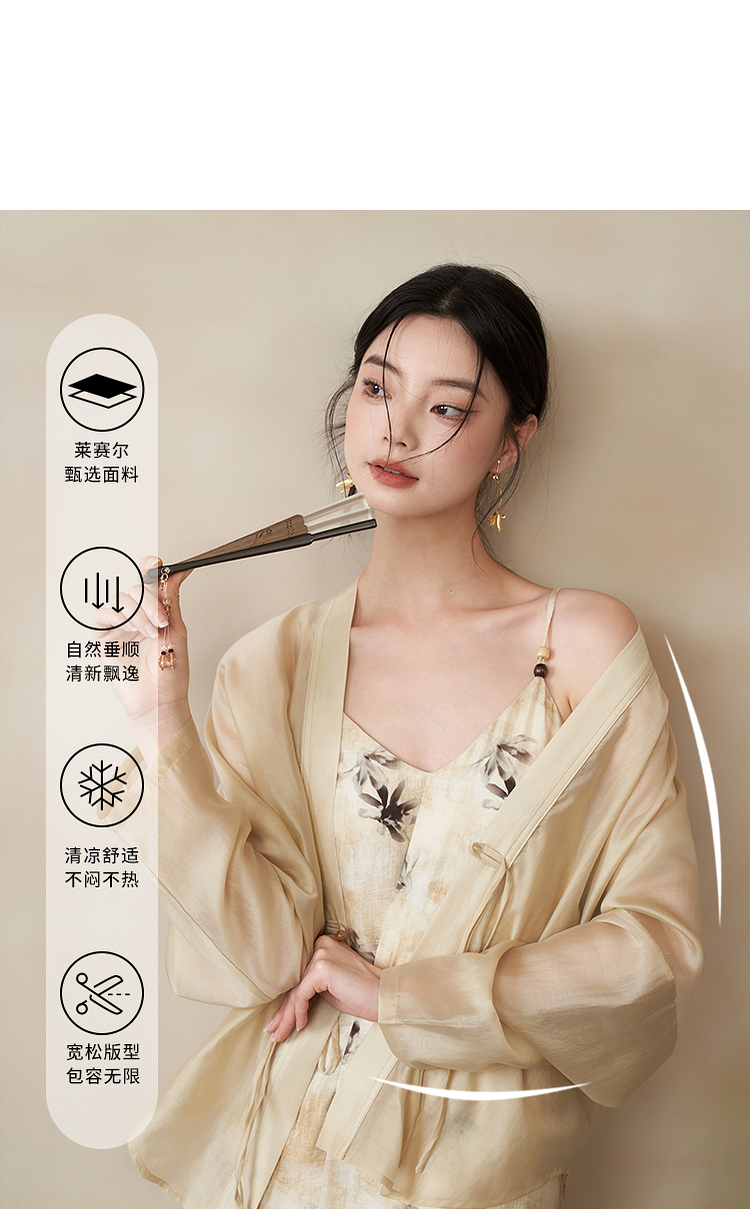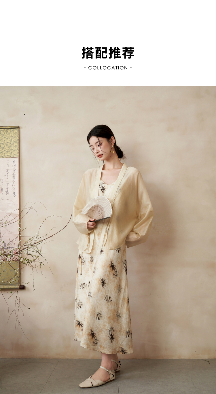 新中式国风连衣裙套装女晕染吊带裙搭防晒外搭套装V1541333