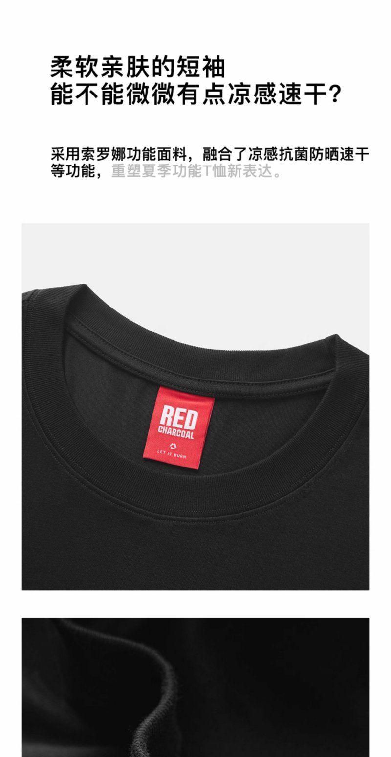 REDCHARCOAL红炭凉感速干人物印花短袖T恤男夏季新款宽松男士半袖