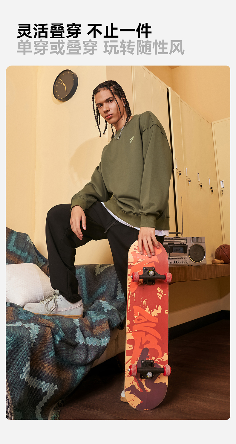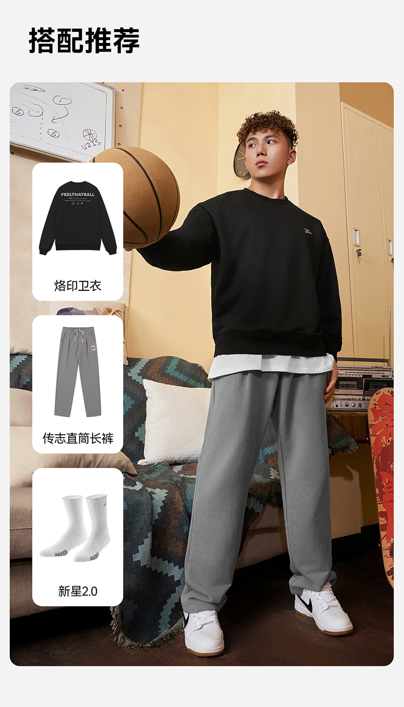 有志者UZIS 美式休闲运动卫衣男篮球跑步秋季复古圆领套头衫[烙印