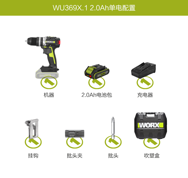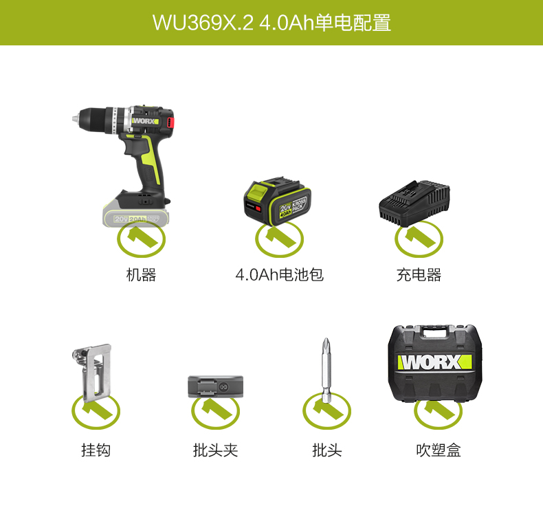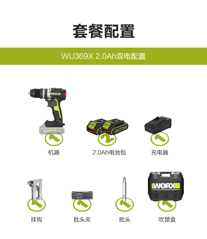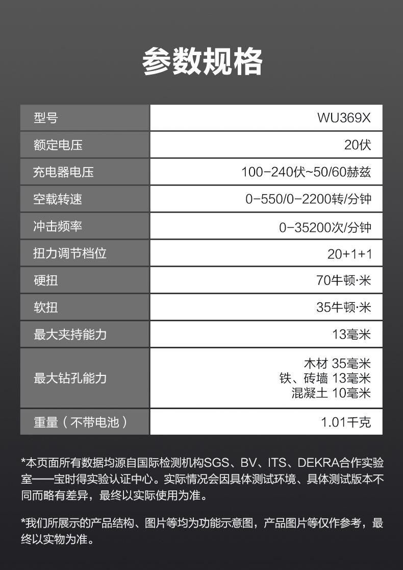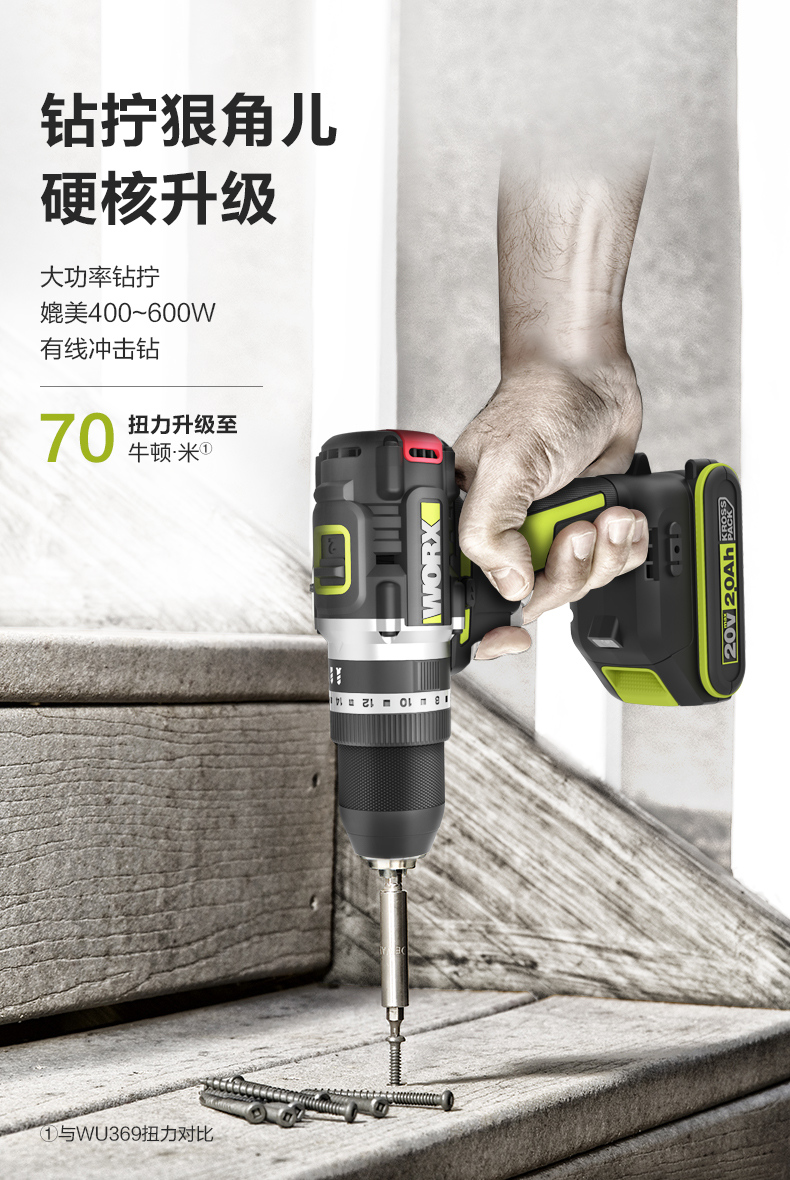 【疯狂星期四】威克士20V 13mm 70N.m无刷冲击钻裸机WU369X.9
