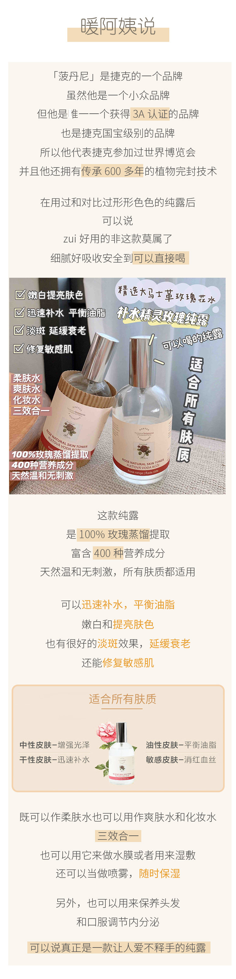 【强效补水 嫩白提亮 淡ban延衰老】玫瑰纯露喷雾 100ml 捷克菠丹妮