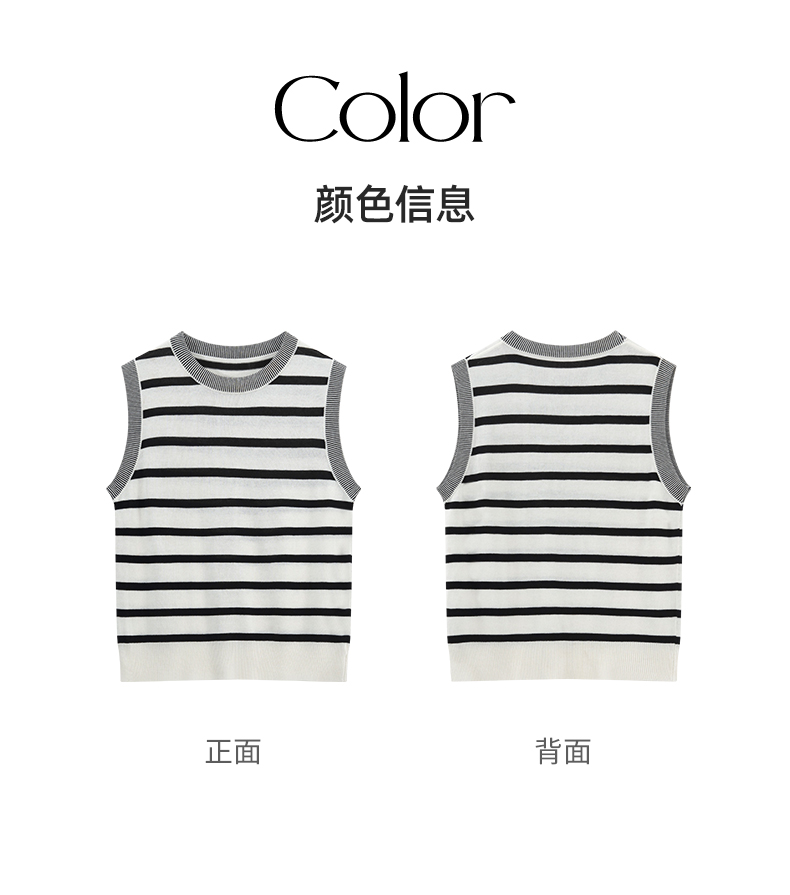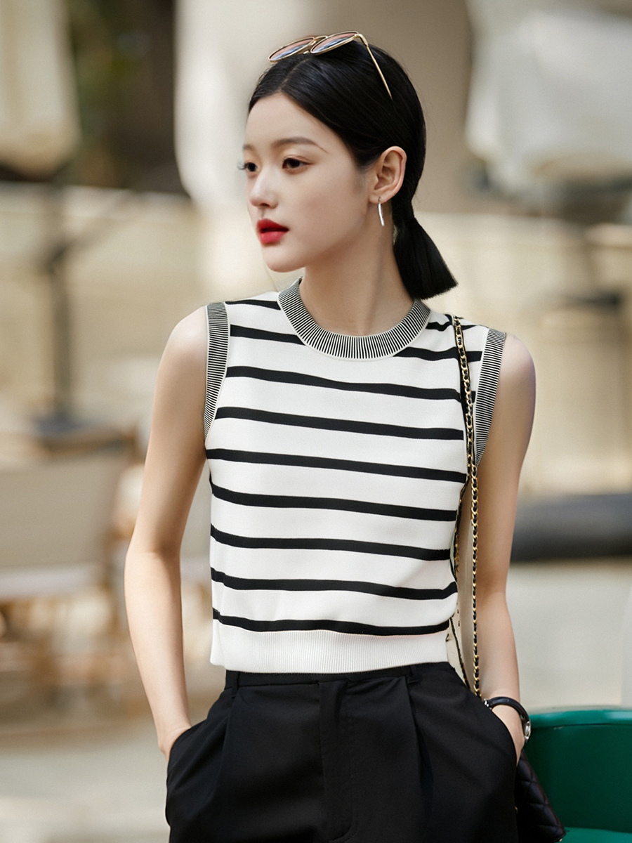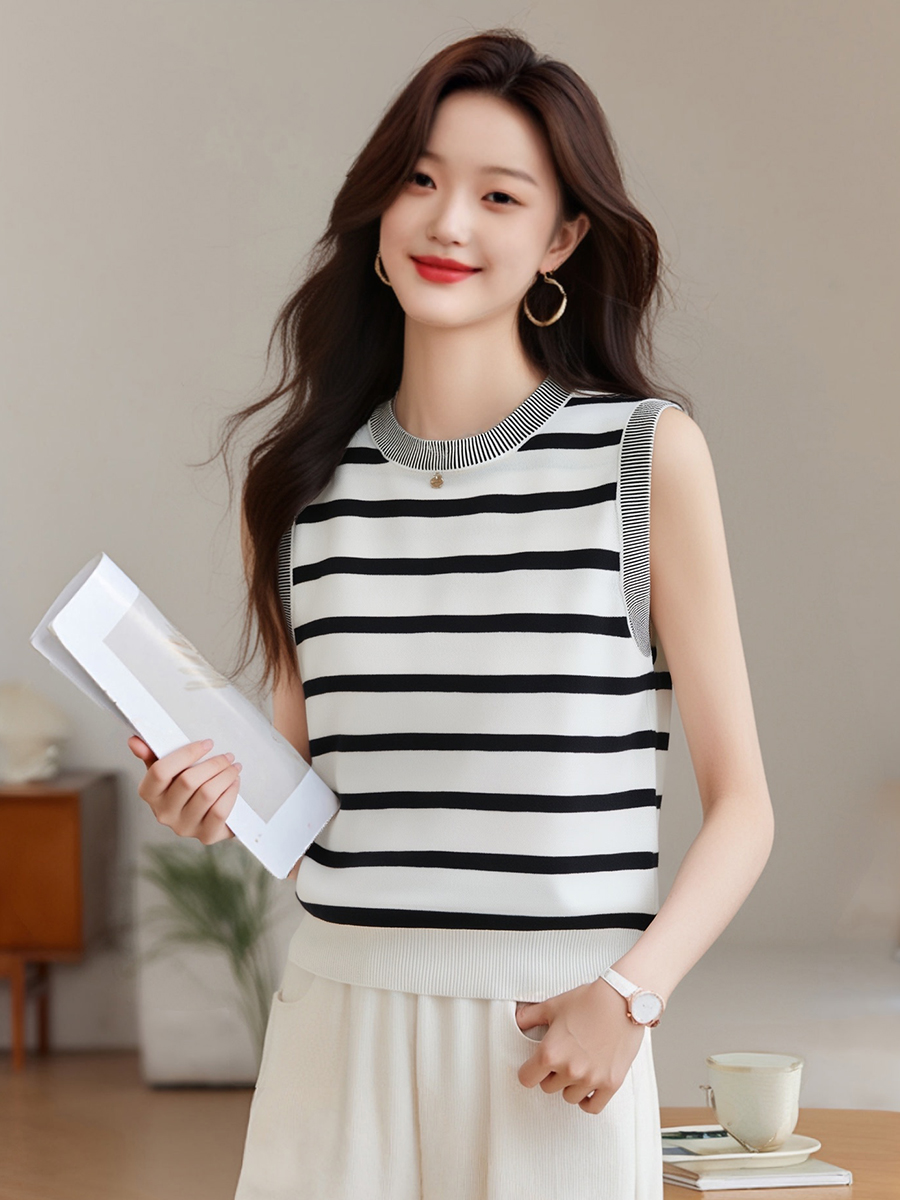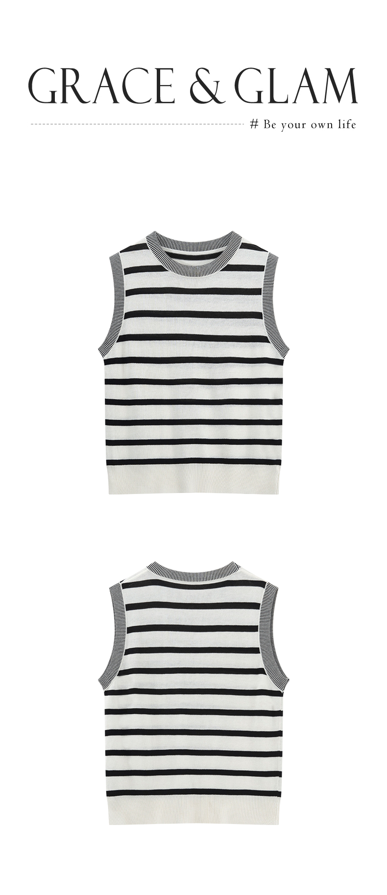 Grace&Glam 法式莱赛尔亚麻条纹针织无袖衫