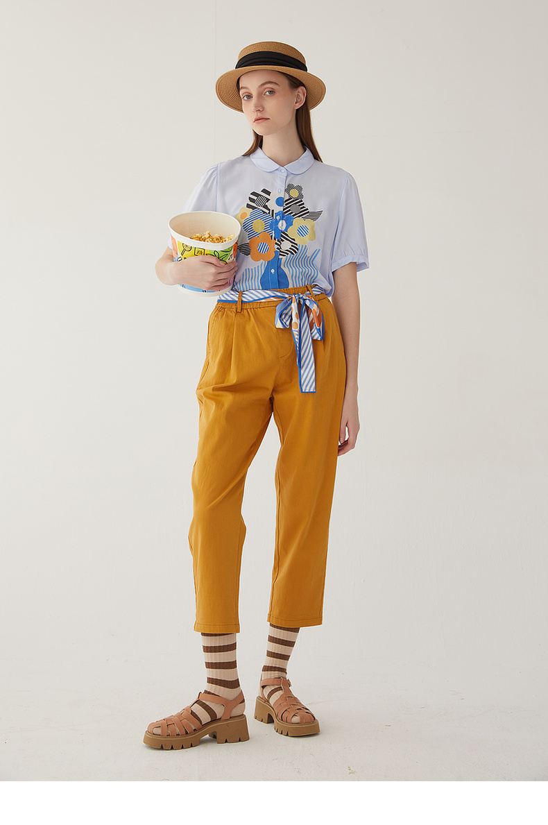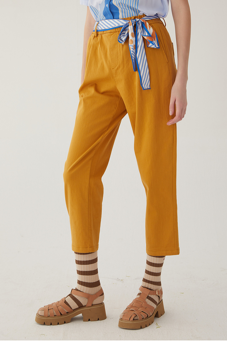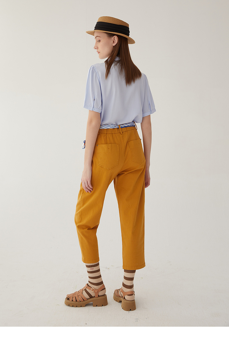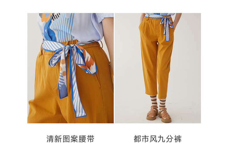 谜底直筒九分裤女2024夏季新款通勤风纯色休闲裤配腰带246MK7018